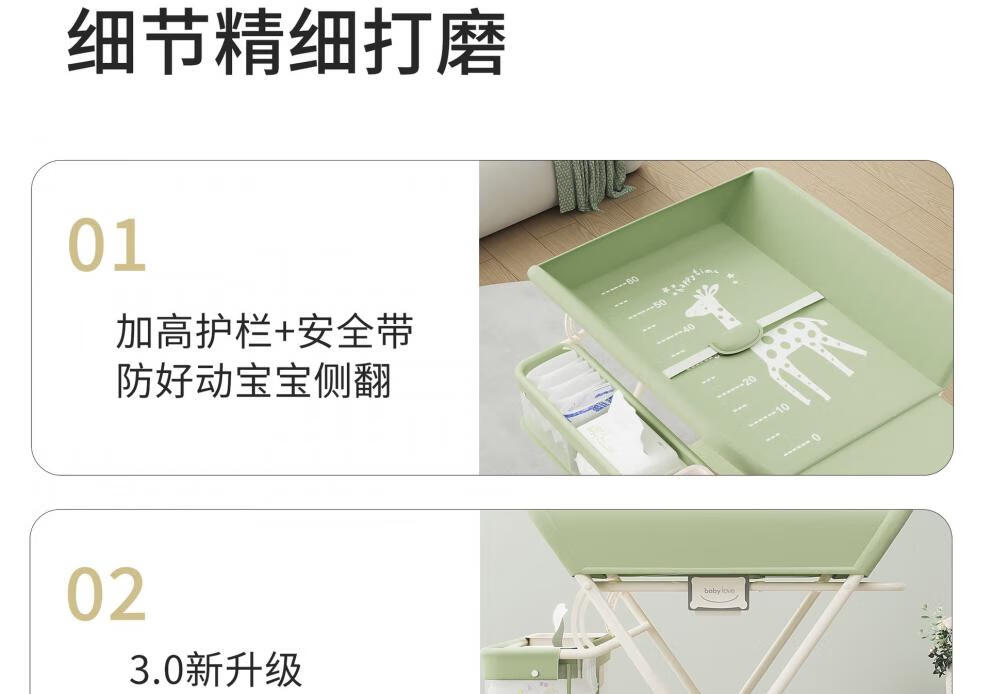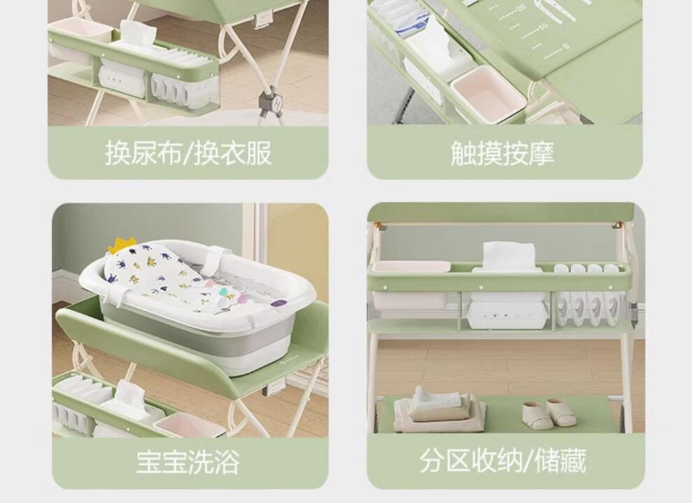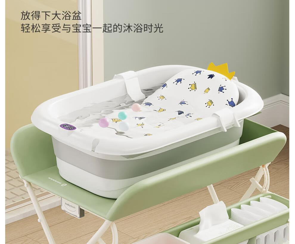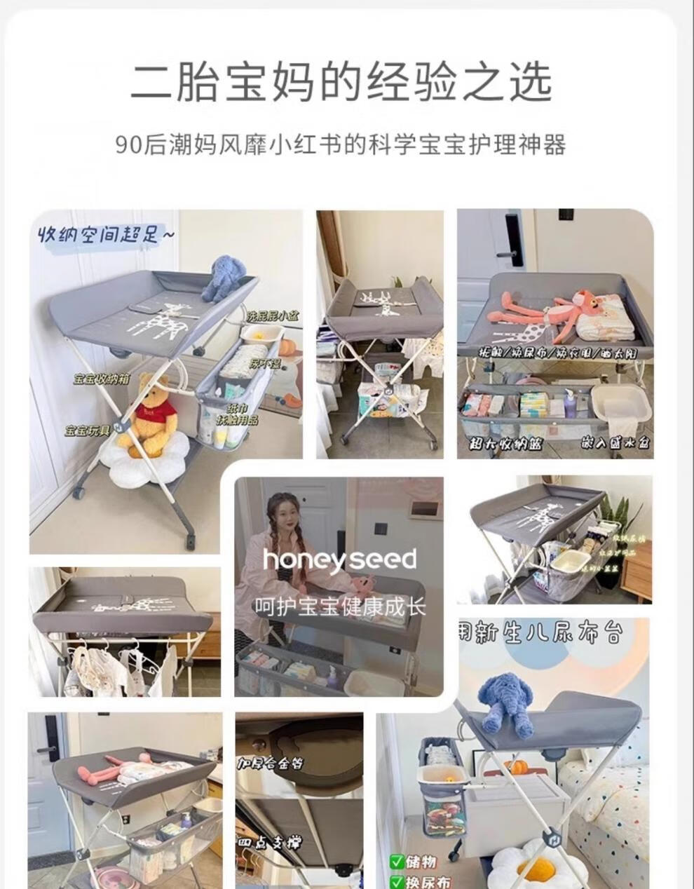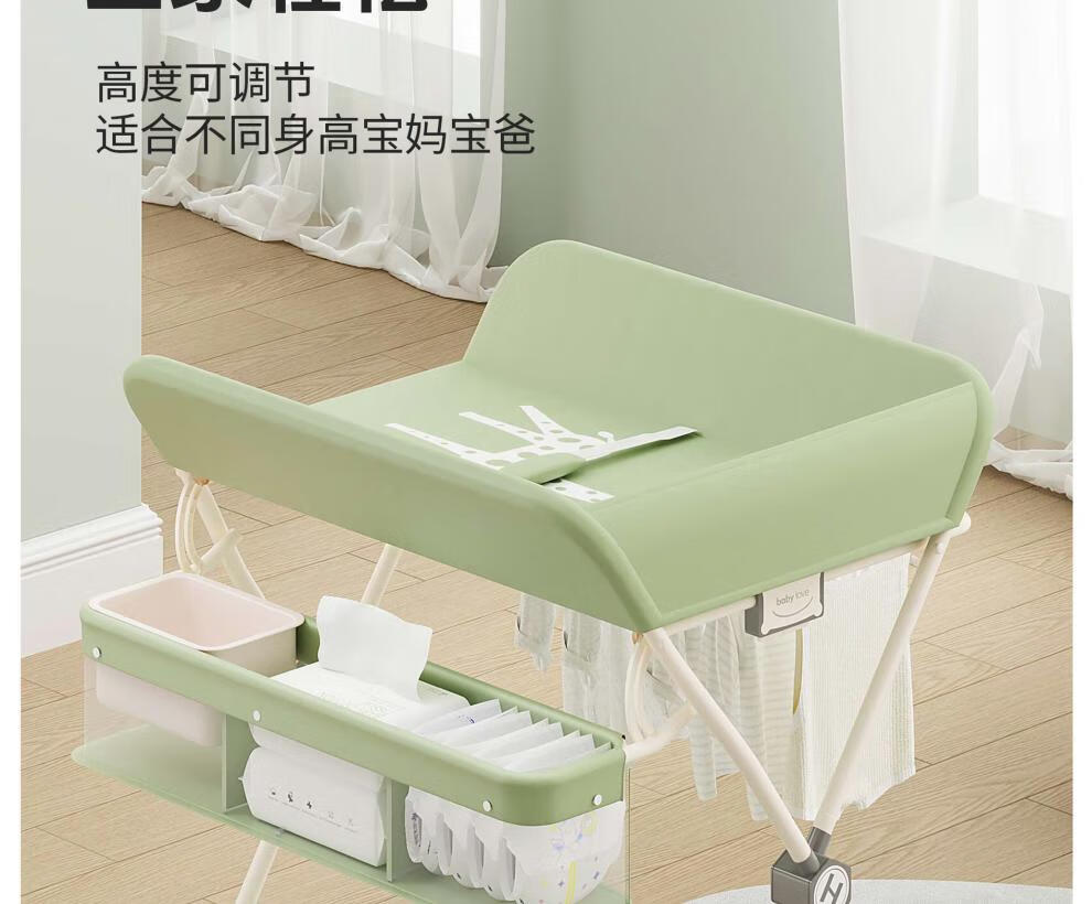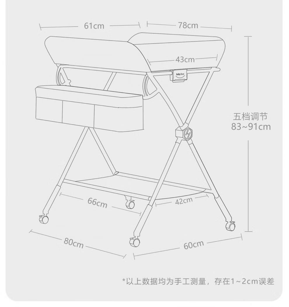 Honeyseed diaper table mother and baby flagship baby care table multi-functional foldable bath baby love gray version - love style +5A level + waterproof surface 1