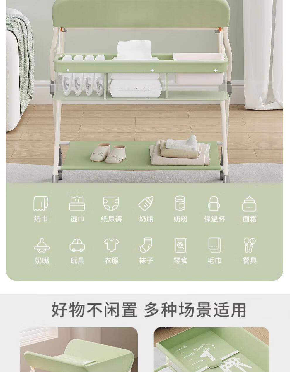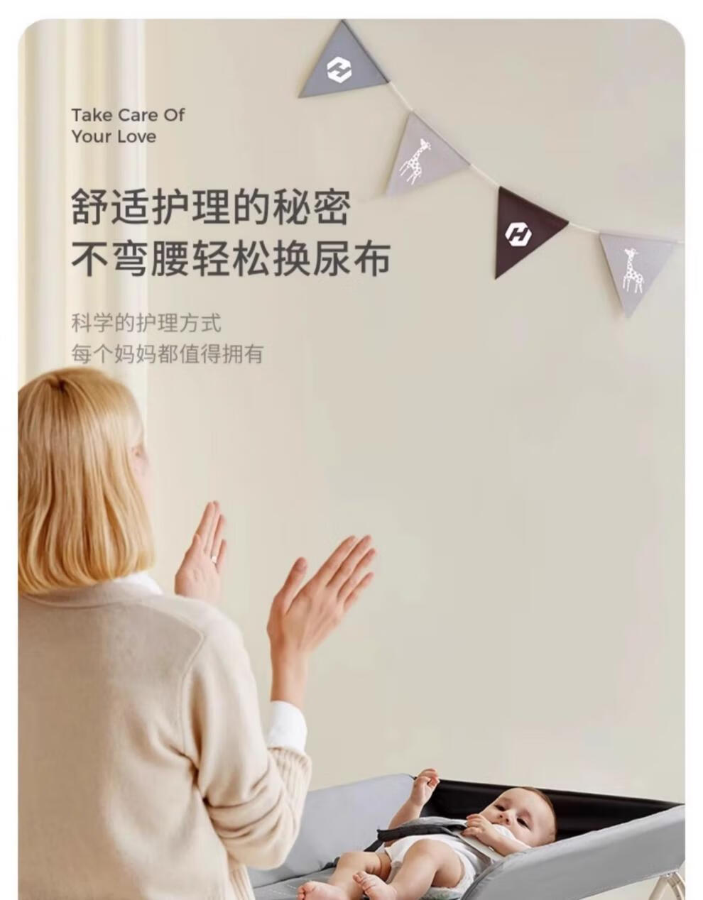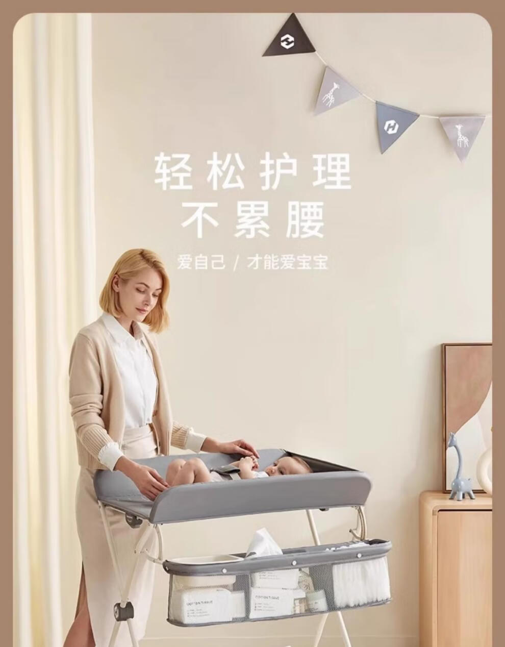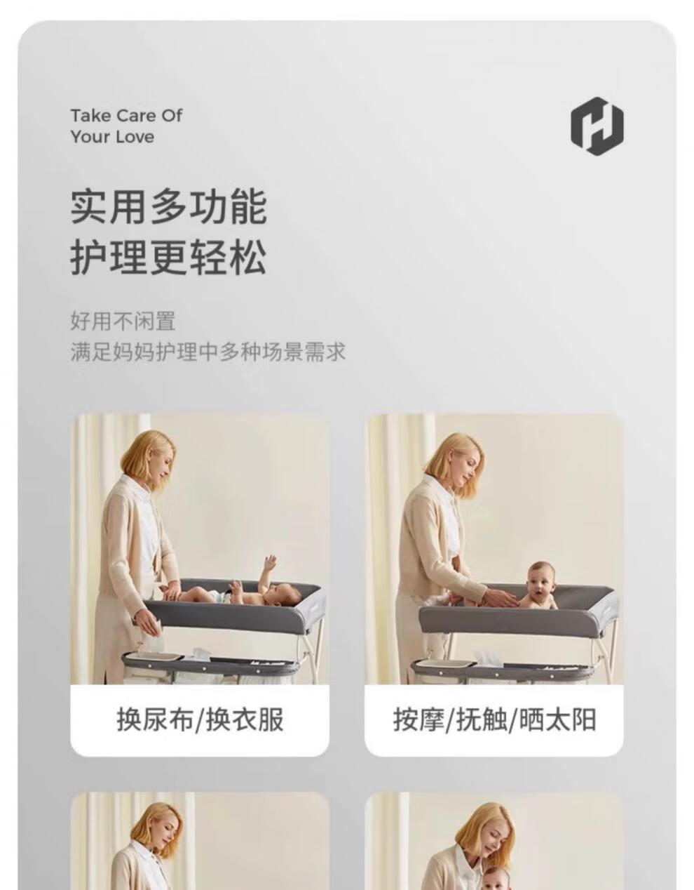 Honeyseed diaper table mother and baby flagship baby care table multi-functional foldable bath baby love gray version - love style +5A level + waterproof surface 1
