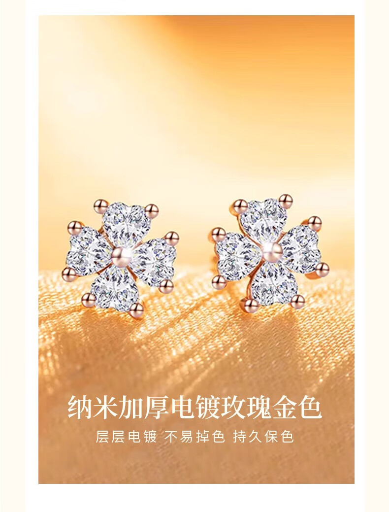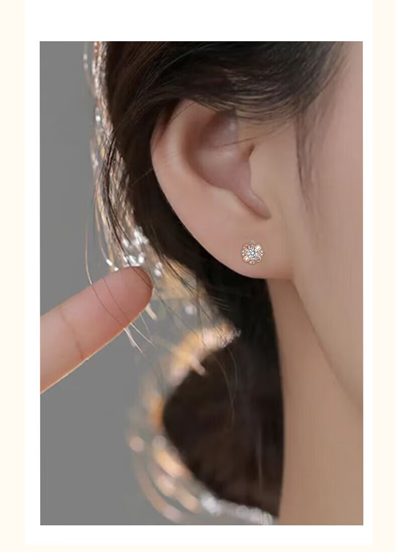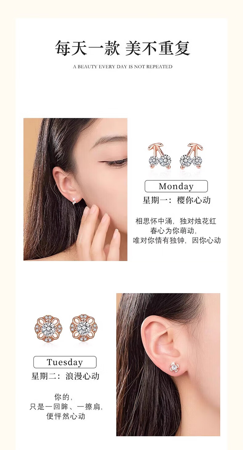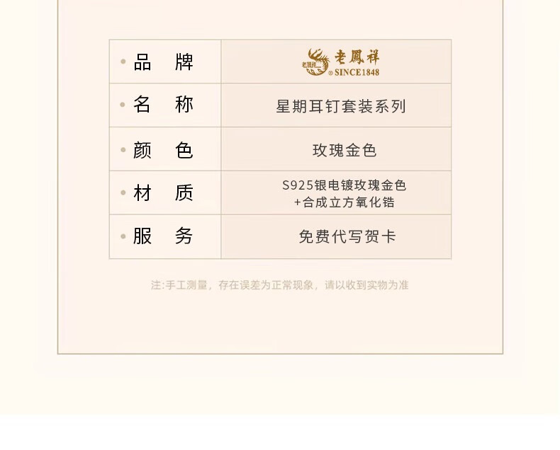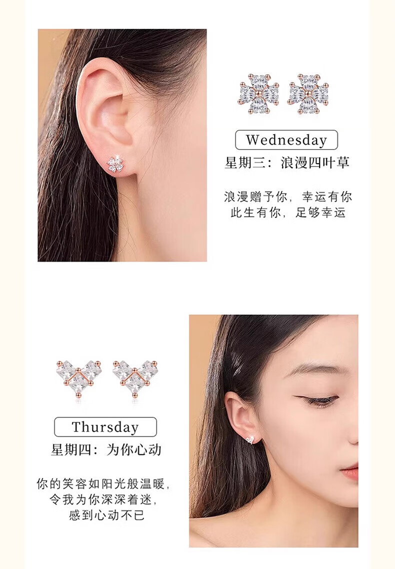 Lao Fengxiang Zhou Earrings Women's Weekly Set Gift Box Sterling Silver Needle Earrings Earrings Practical Birthday Gift for Girlfriends Rose Gold Zhou Lovers Earrings Set - Yagura Hair Same Day/Next Day Delivery
