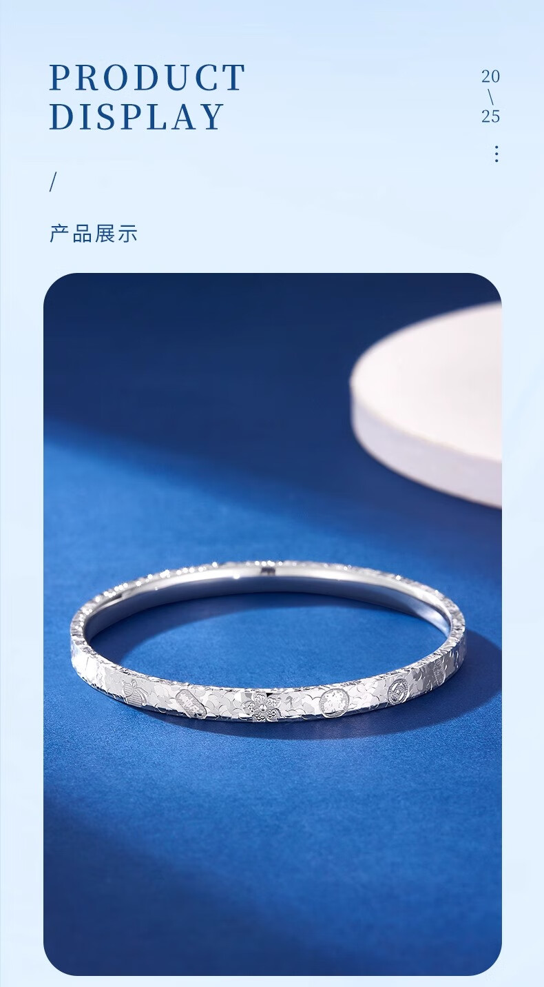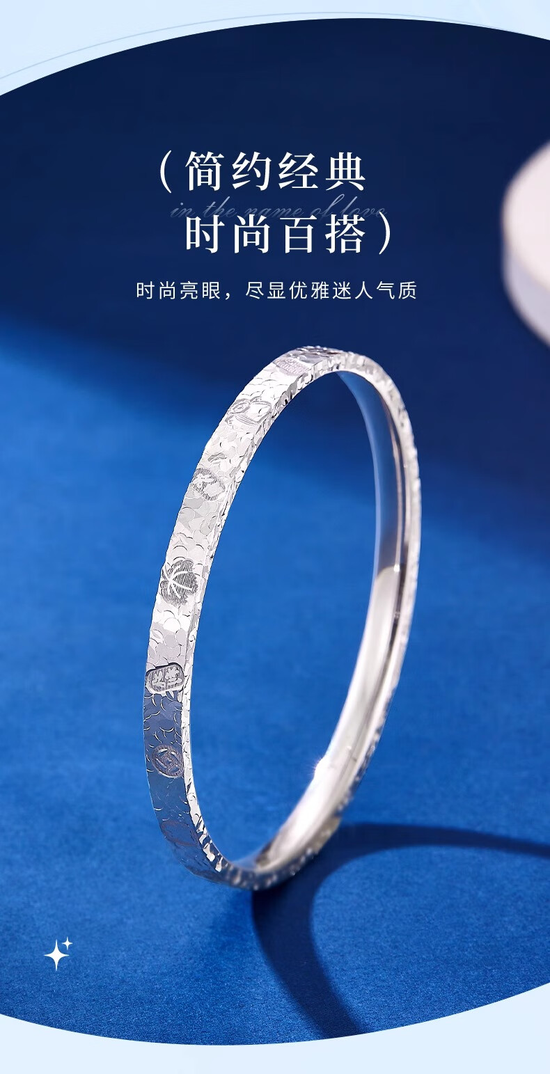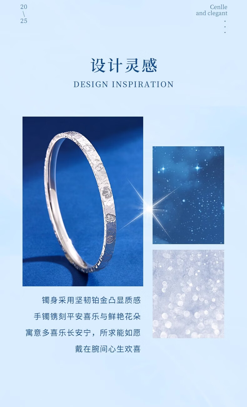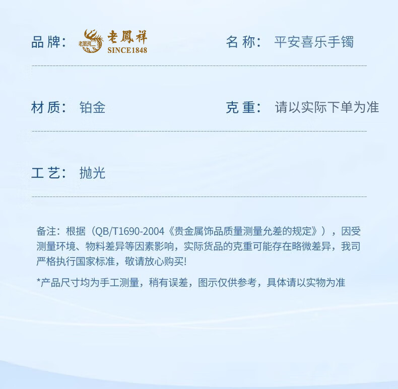 Lao Fengxiang PT950 platinum peace and joy bracelet for women platinum high-end light luxury hand jewelry Mid-Autumn Festival birthday gift for girlfriend PT950 platinum peace and joy bracelet 60 circles about 17.3g