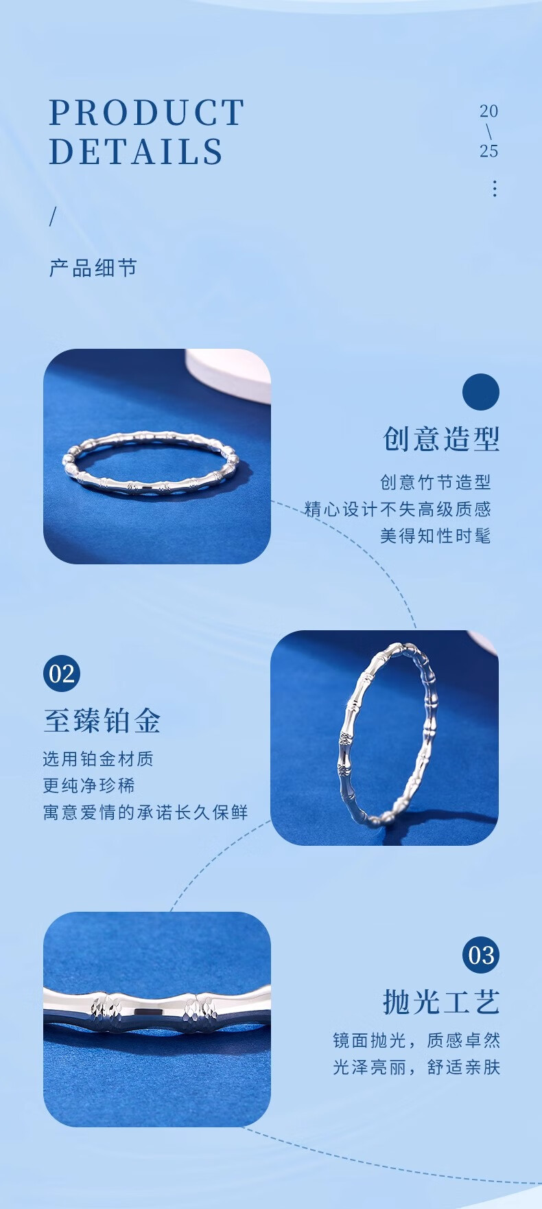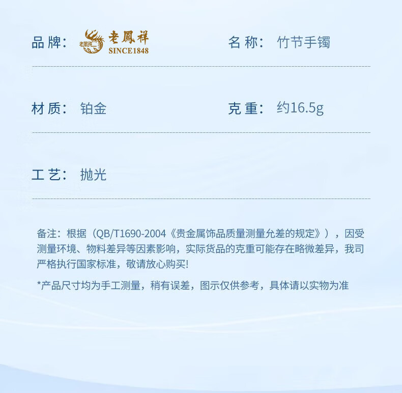 Lao Fengxiang PT950 platinum bamboo bracelet for women, new pure platinum bracelet, birthday and Mid-Autumn Festival gift for boyfriend and girlfriend PT950 platinum bamboo bracelet, about 16.5g
