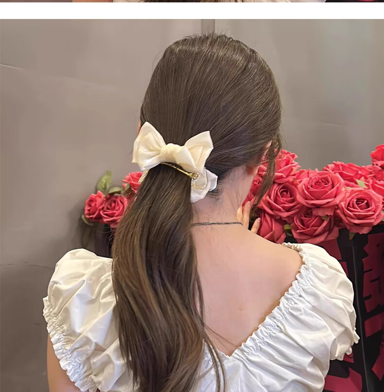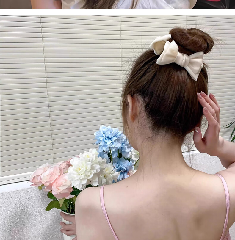 Two Worlds Happy Bow Tiara Ball Head Small Clip Girls High Ponytail Hair Clip Ball Head Fixing Artifact Hairpin Hair Accessory Beige Bow 1 Pack