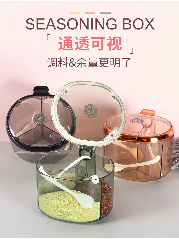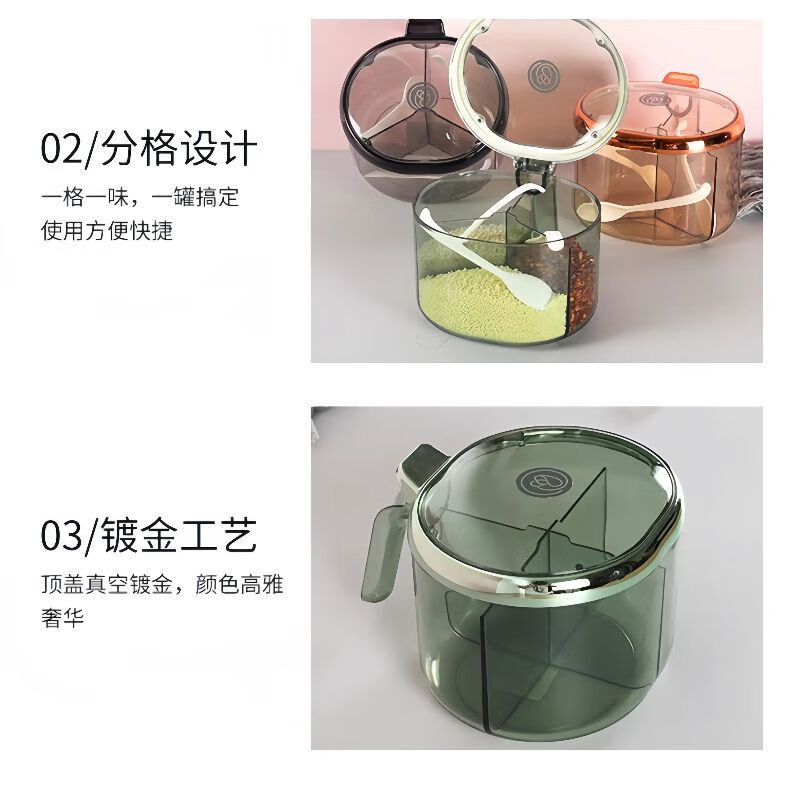 Ye Yu seasoning jar integrated multi-grid salt jar combination kitchen sugar MSG condiment seasoning bottle three-in-one seasoning box three compartments two compartments rose gold
