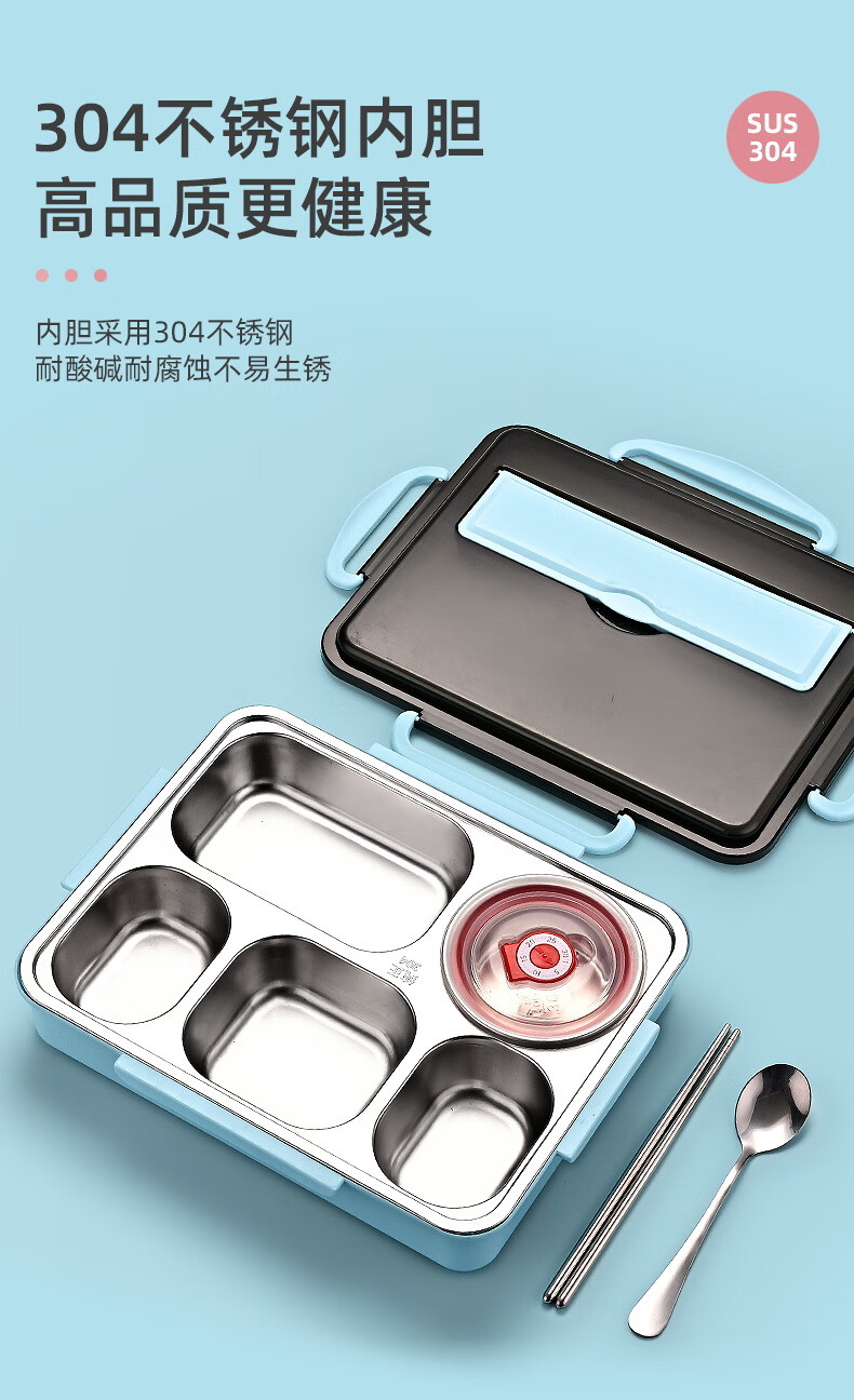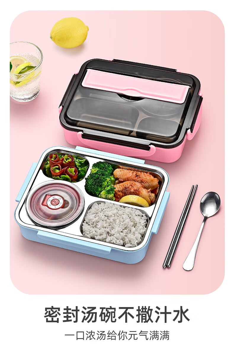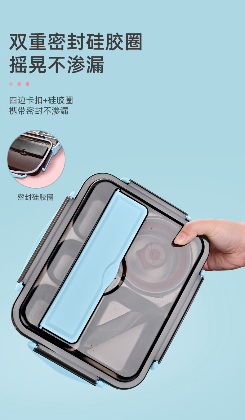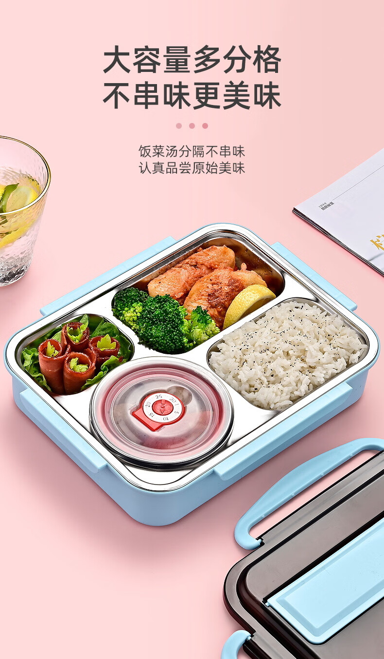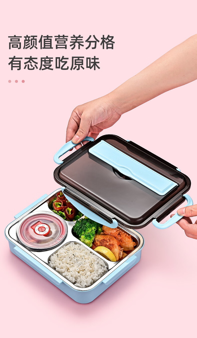 Ye Yu stainless steel lunch box lunch box insulated primary school children's canteen compartmented lunch box set for office workers upgraded to 304 Nordic blue small three compartments with tableware