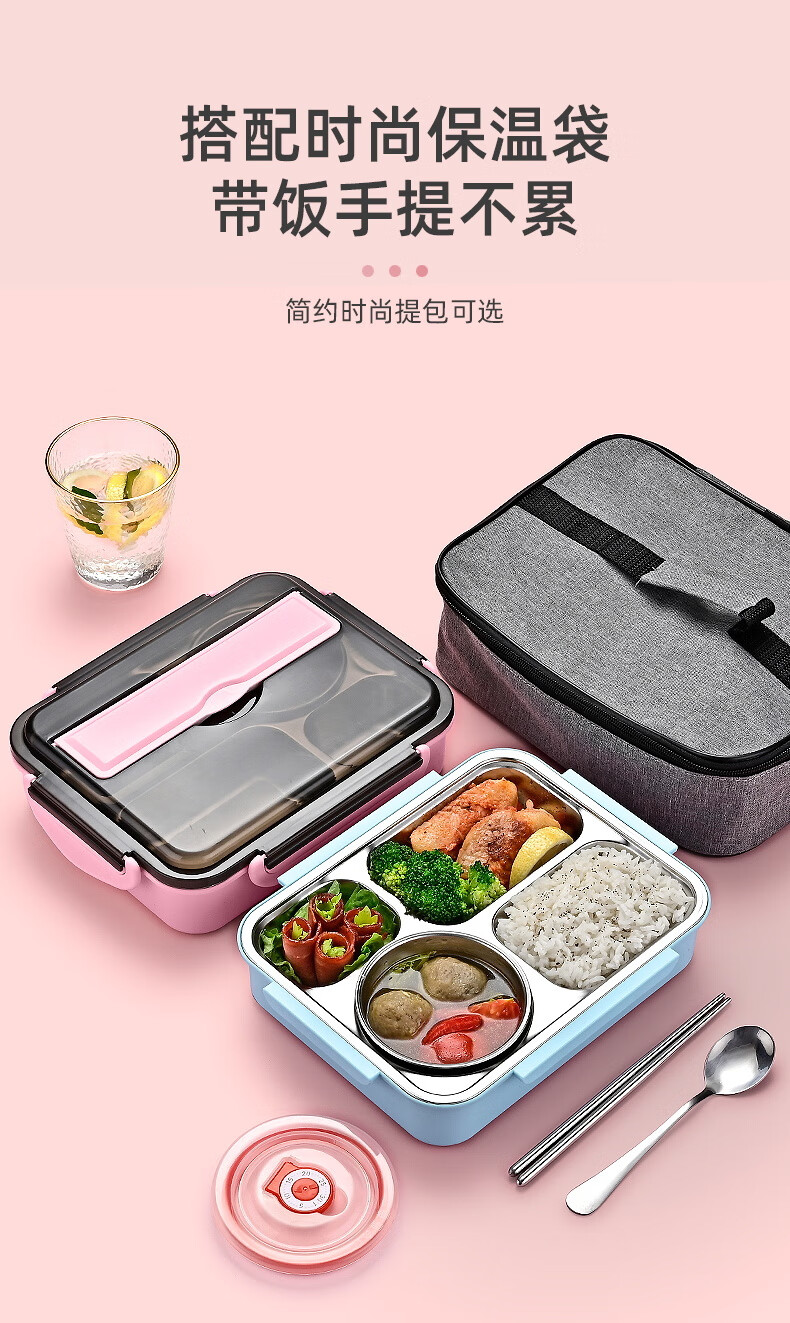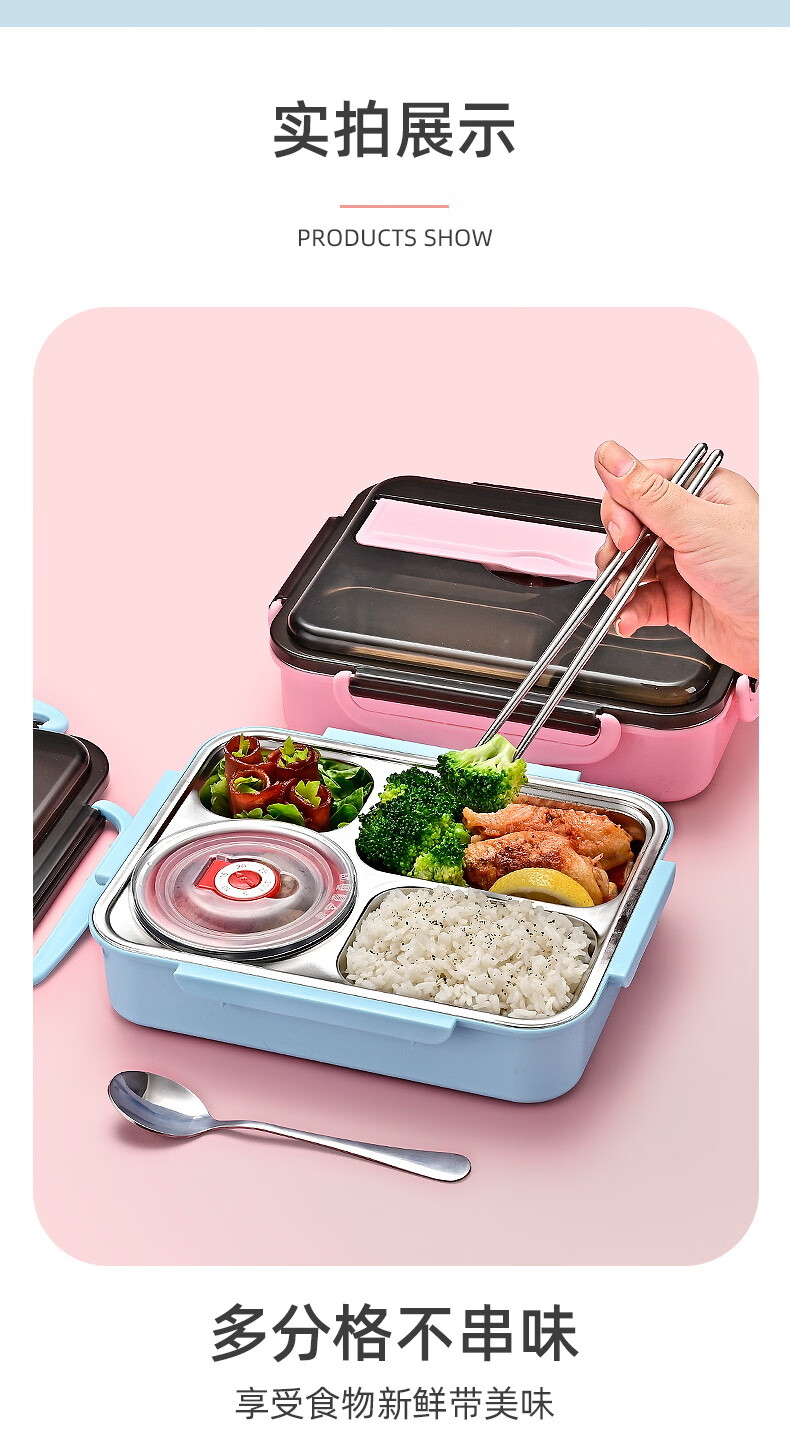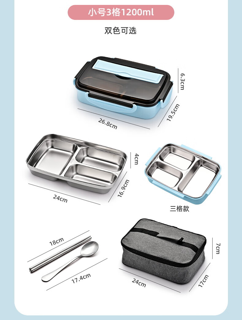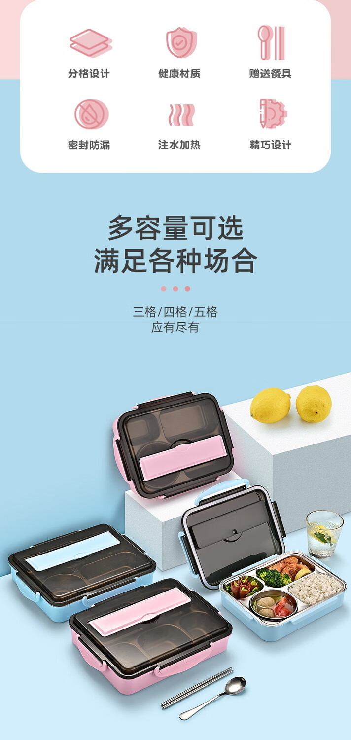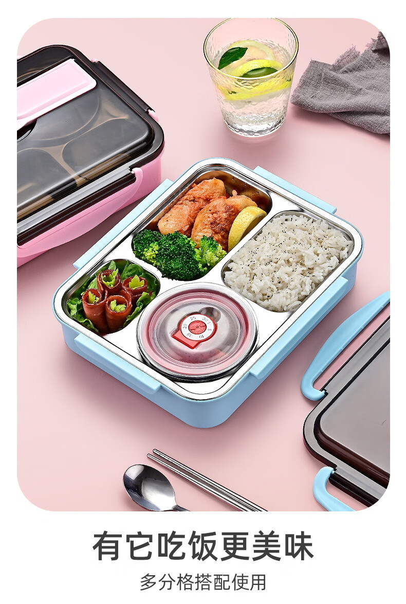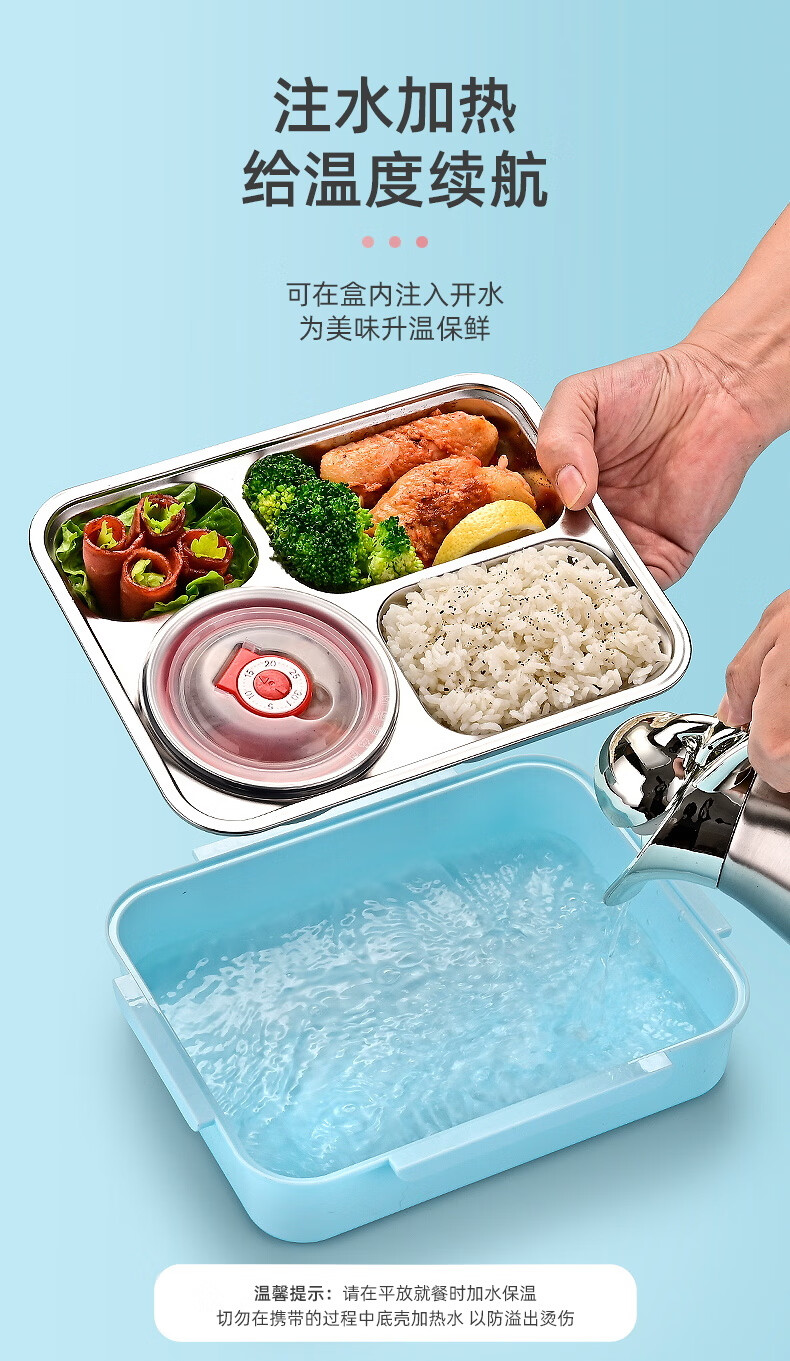 Ye Yu stainless steel lunch box lunch box insulated primary school children's canteen compartmented lunch box set for office workers upgraded to 304 Nordic blue small three compartments with tableware