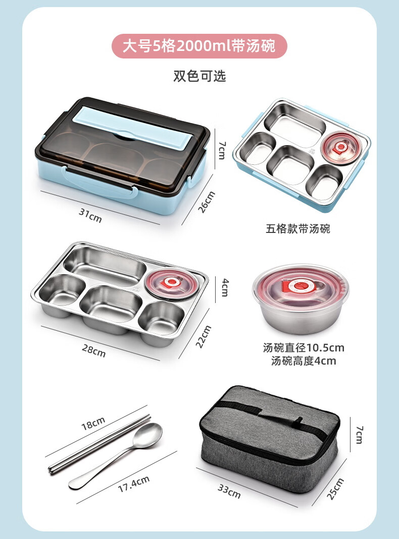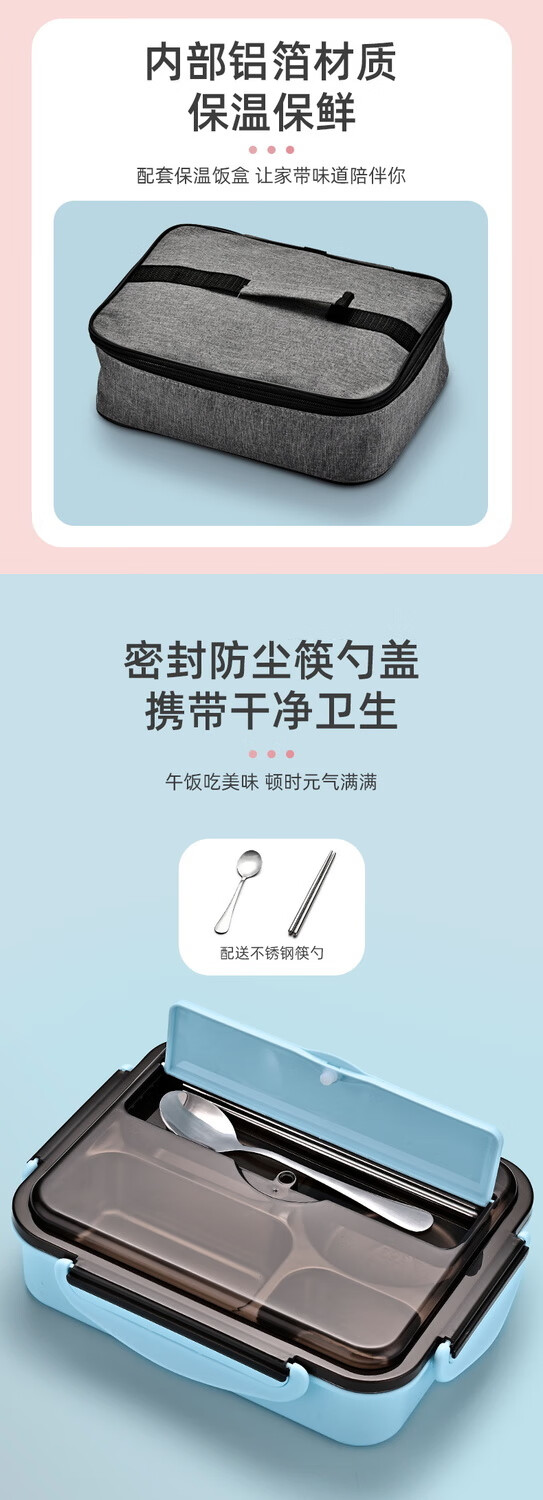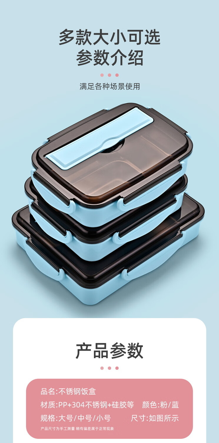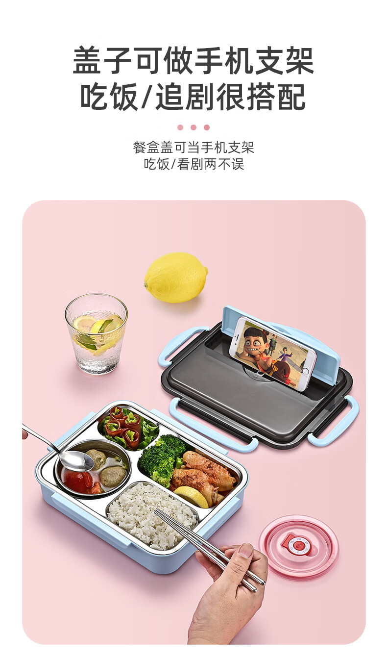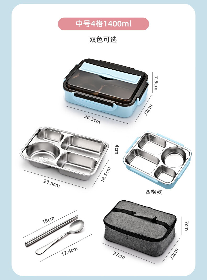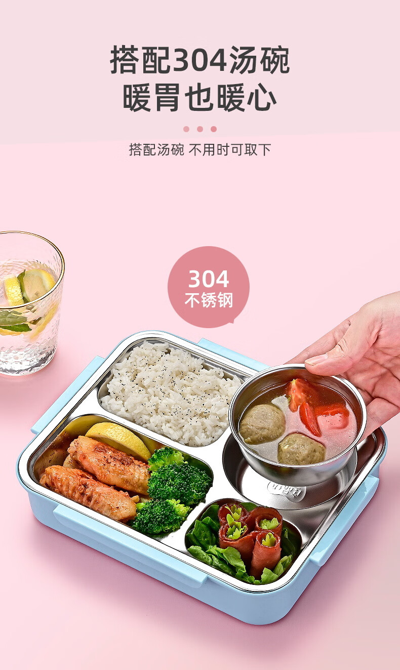 Ye Yu stainless steel lunch box lunch box insulated primary school children's canteen compartmented lunch box set for office workers upgraded to 304 Nordic blue small three compartments with tableware