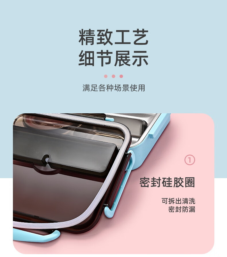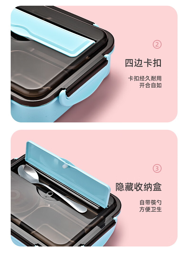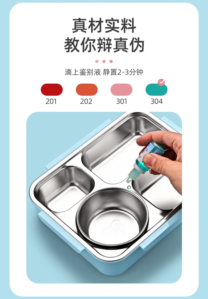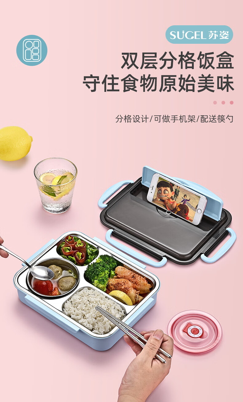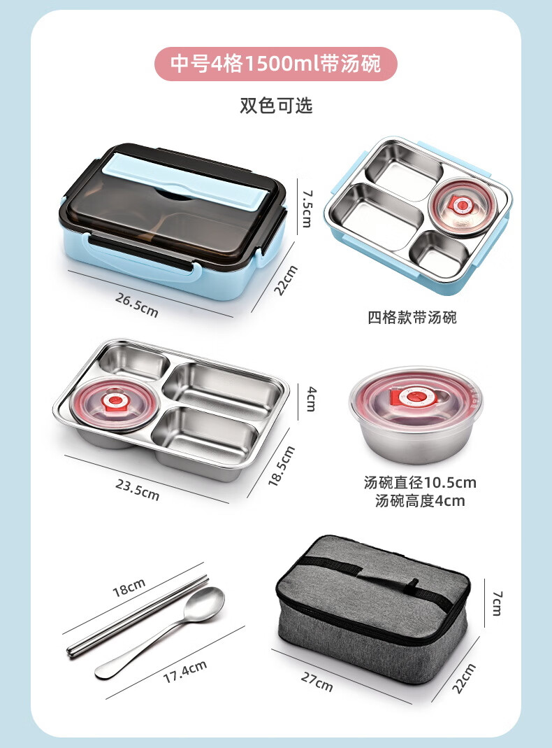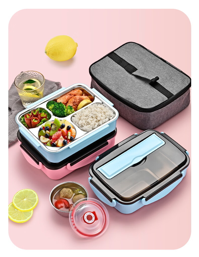 Ye Yu stainless steel lunch box lunch box insulated primary school children's canteen compartmented lunch box set for office workers upgraded to 304 Nordic blue small three compartments with tableware