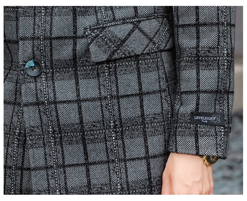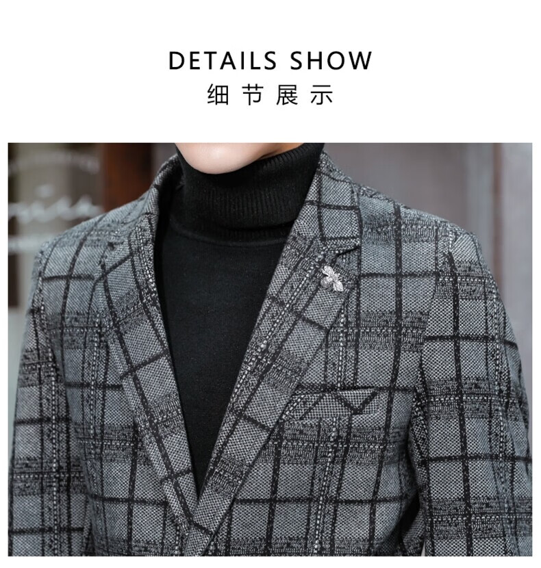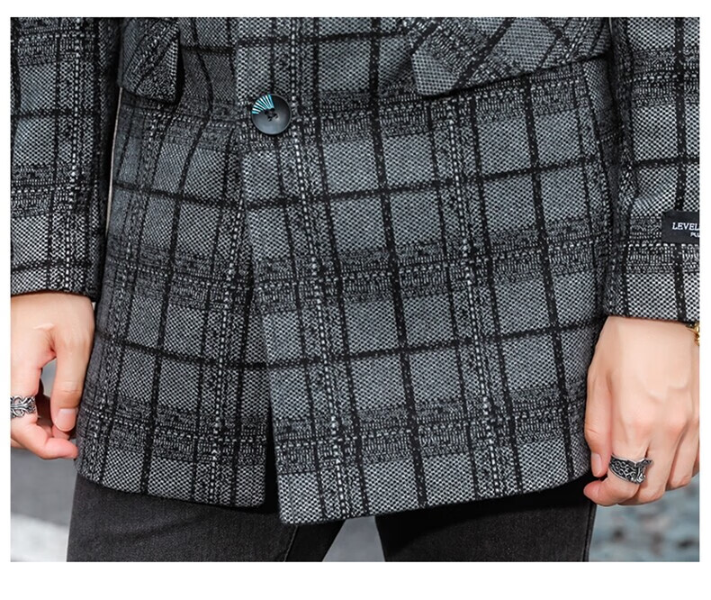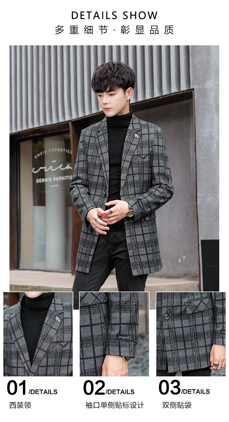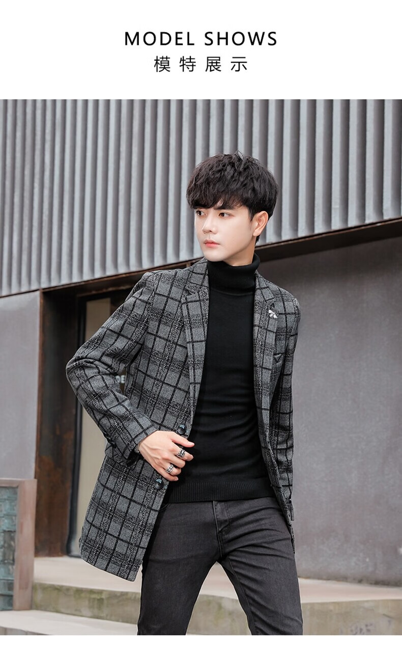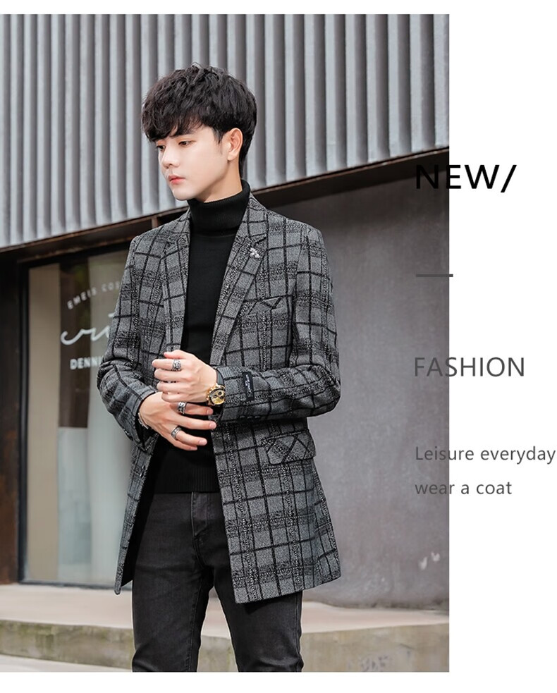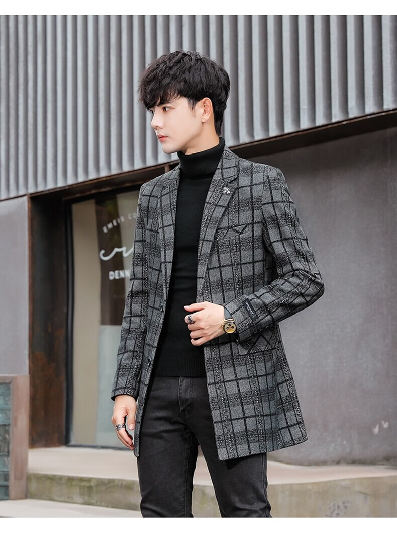Playboy (PLAYBOY) Men's Suit Mid-Length Windbreaker Jacket Spring and Autumn Slim Woolen Suit Top Youth Trendy Woolen Coat Dark Plaid 2XL