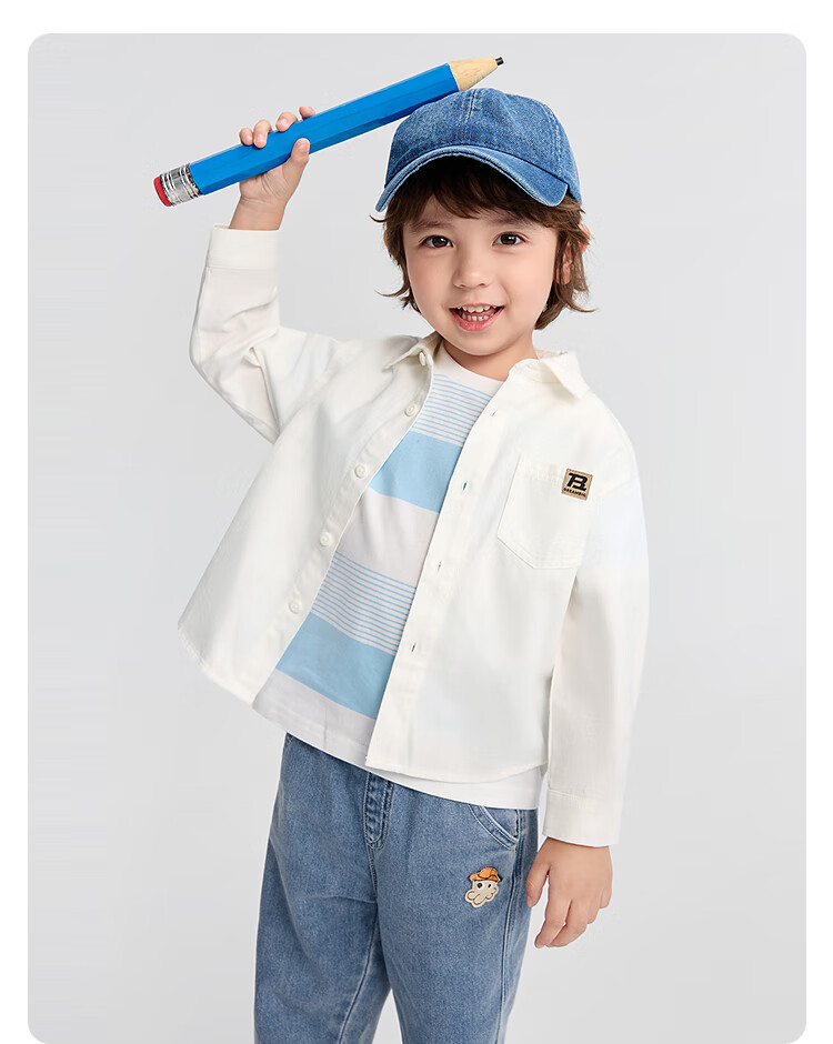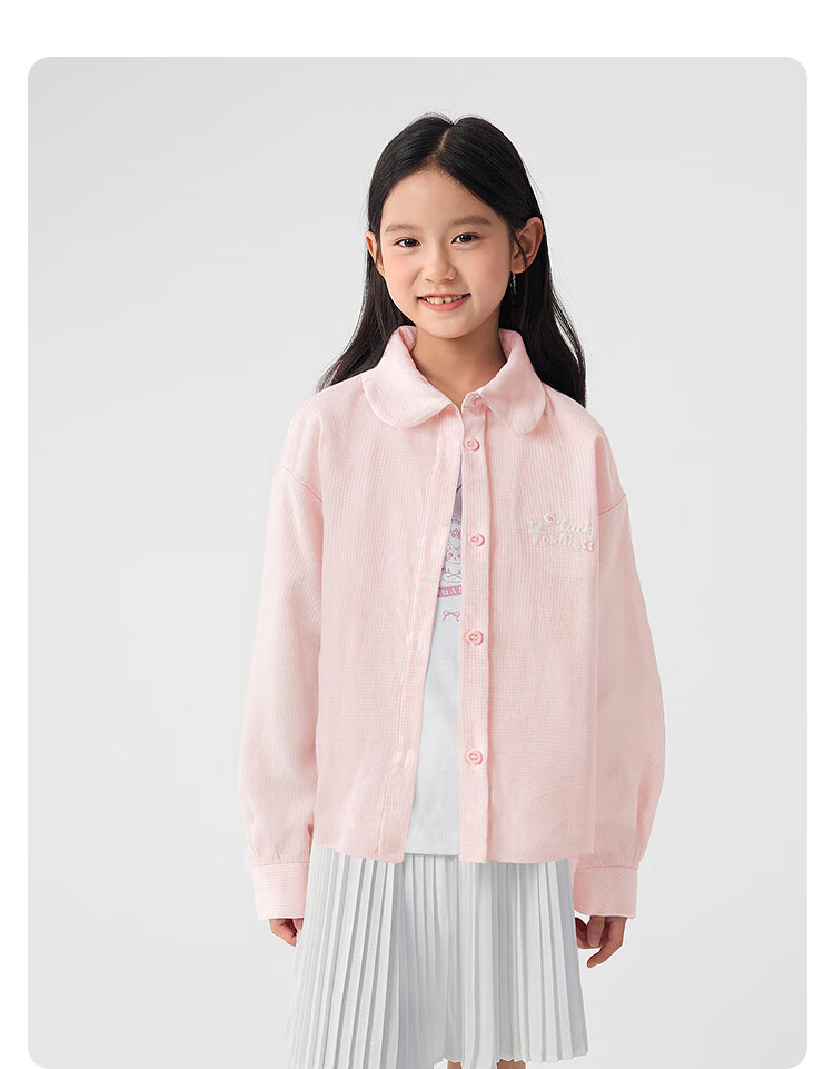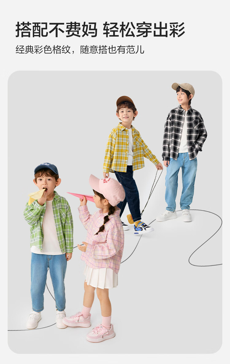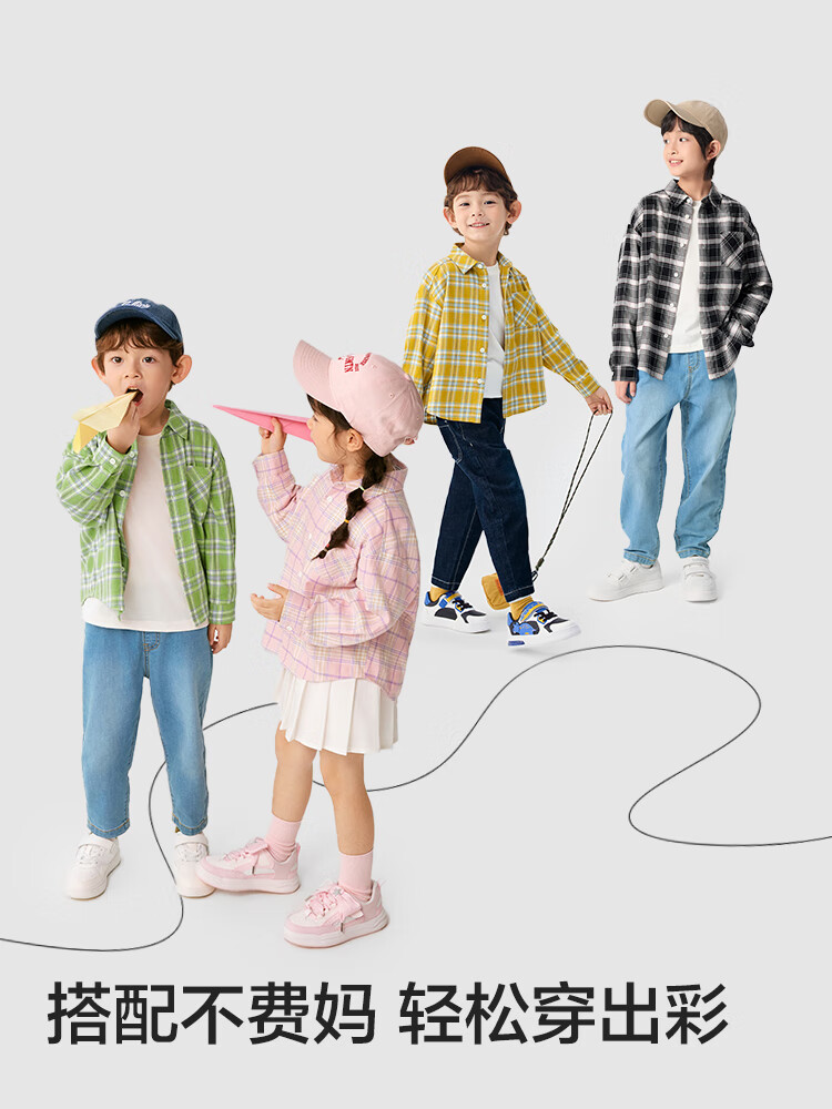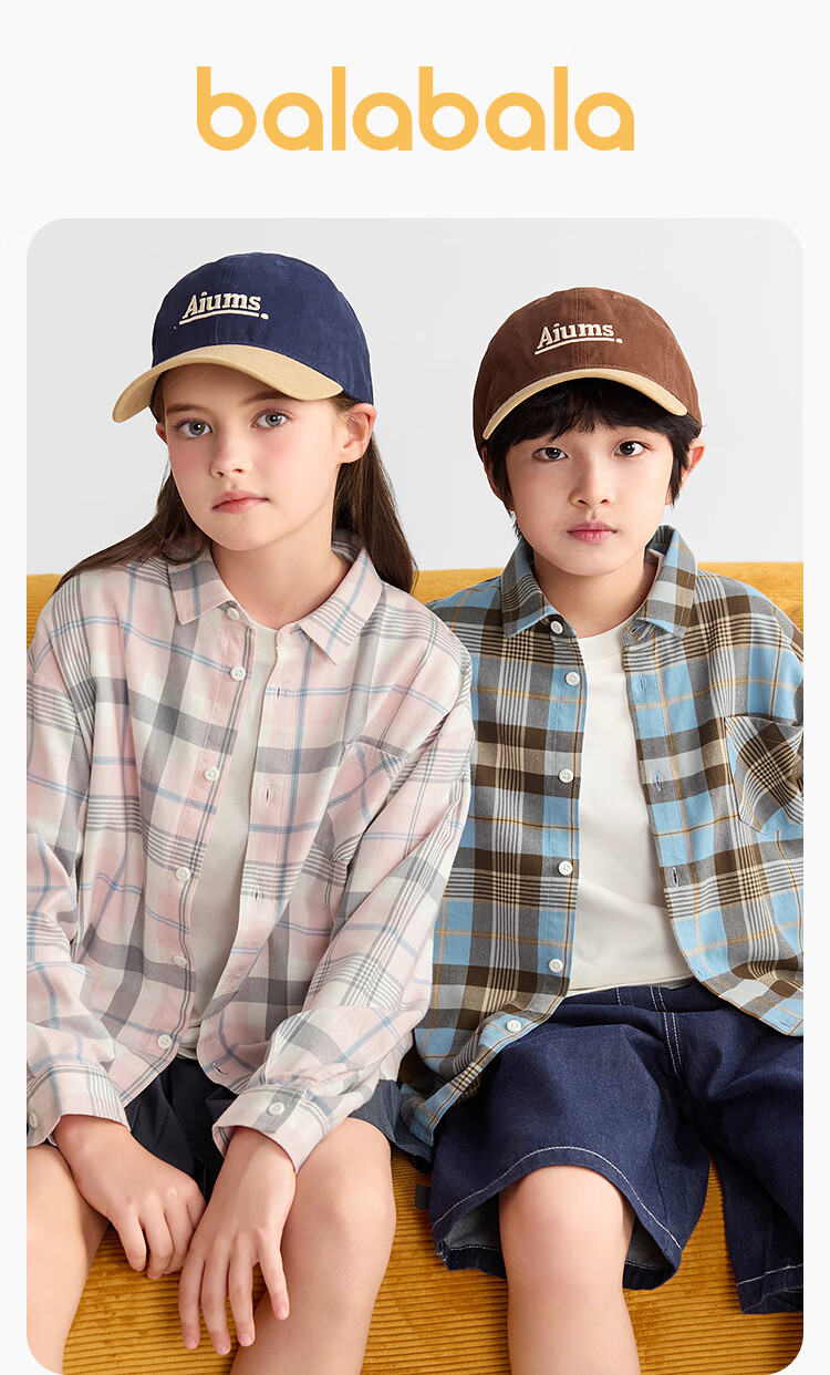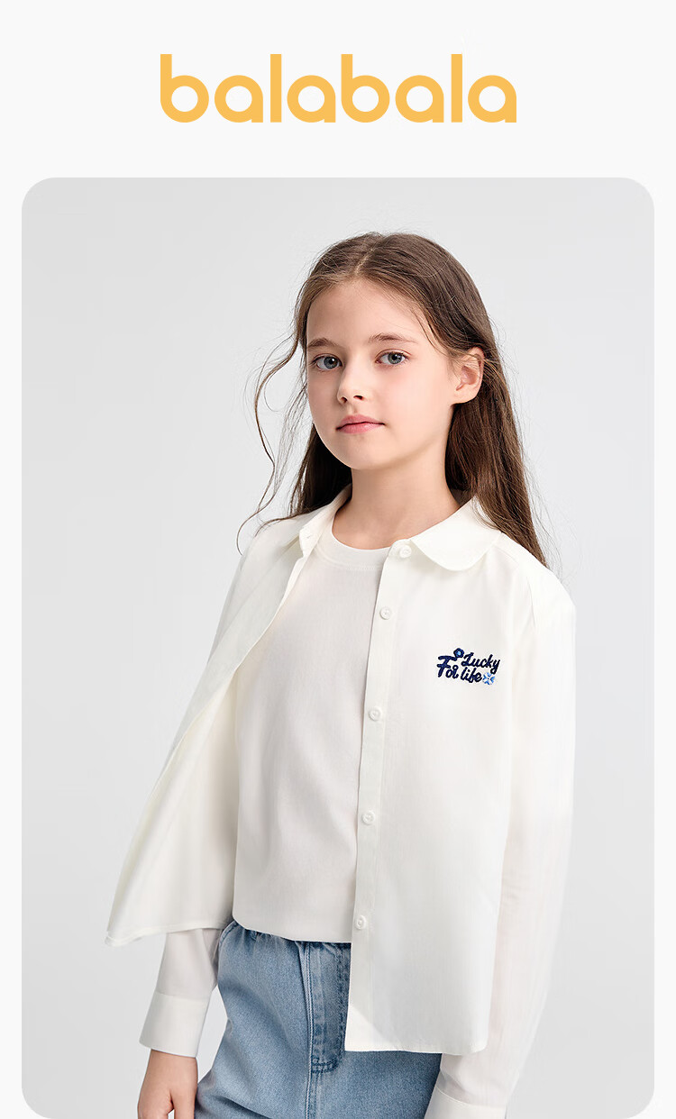 Balabala children's clothing children's shirts for boys and girls 2025 new spring and autumn lapel plaid shirts parent-child college style tops trendy white 10101-208325102202 150
