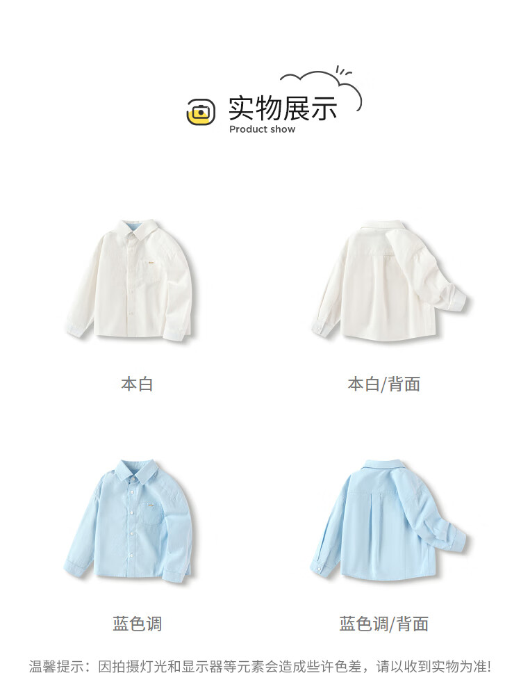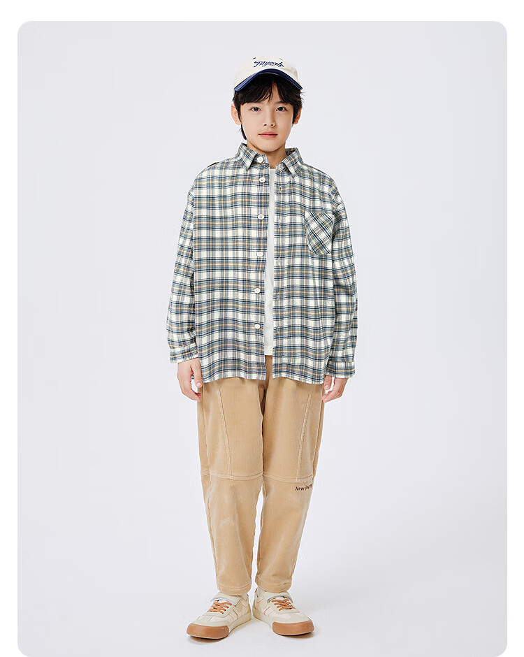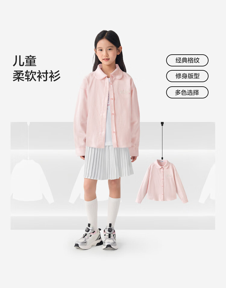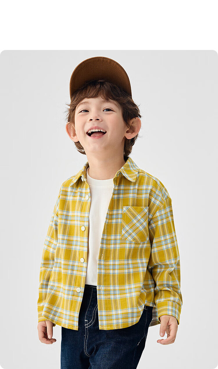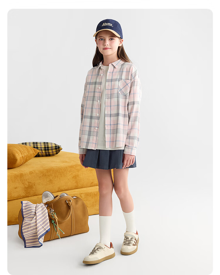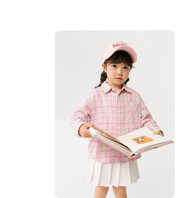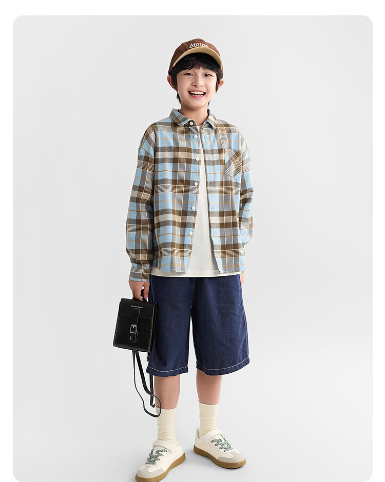 Balabala children's clothing children's shirts for boys and girls 2025 new spring and autumn lapel plaid shirts parent-child college style tops trendy white 10101-208325102202 150