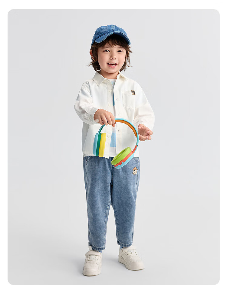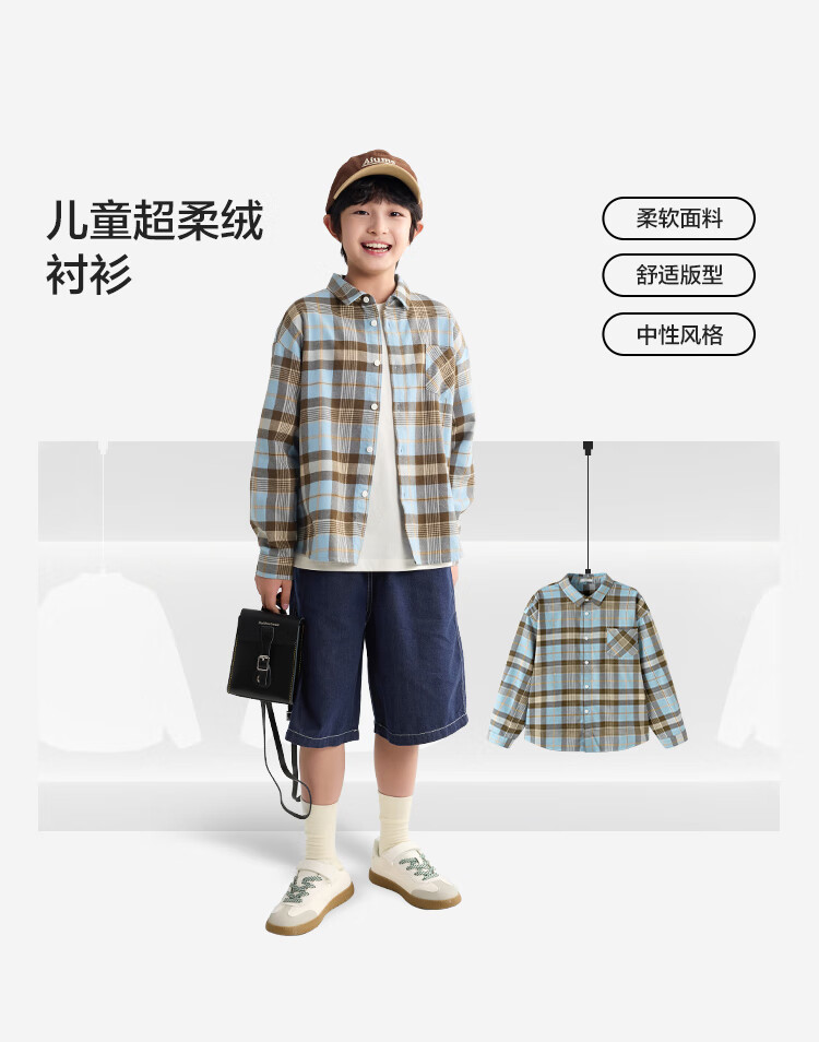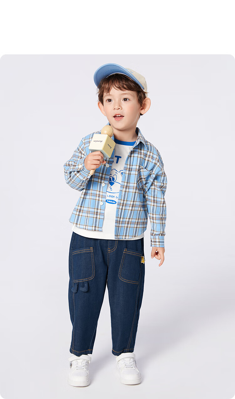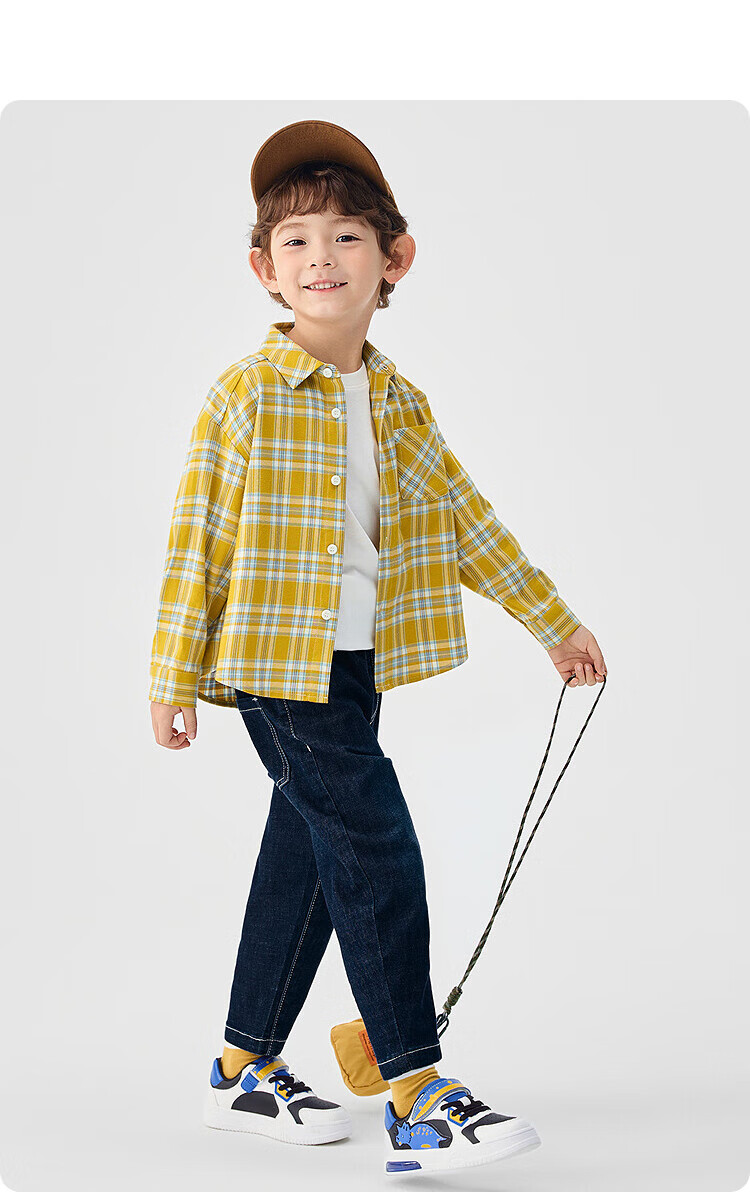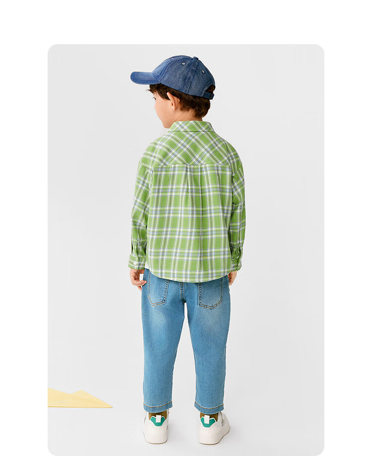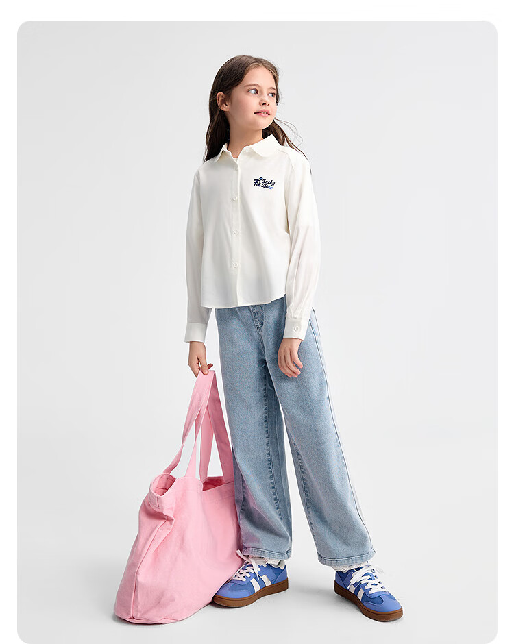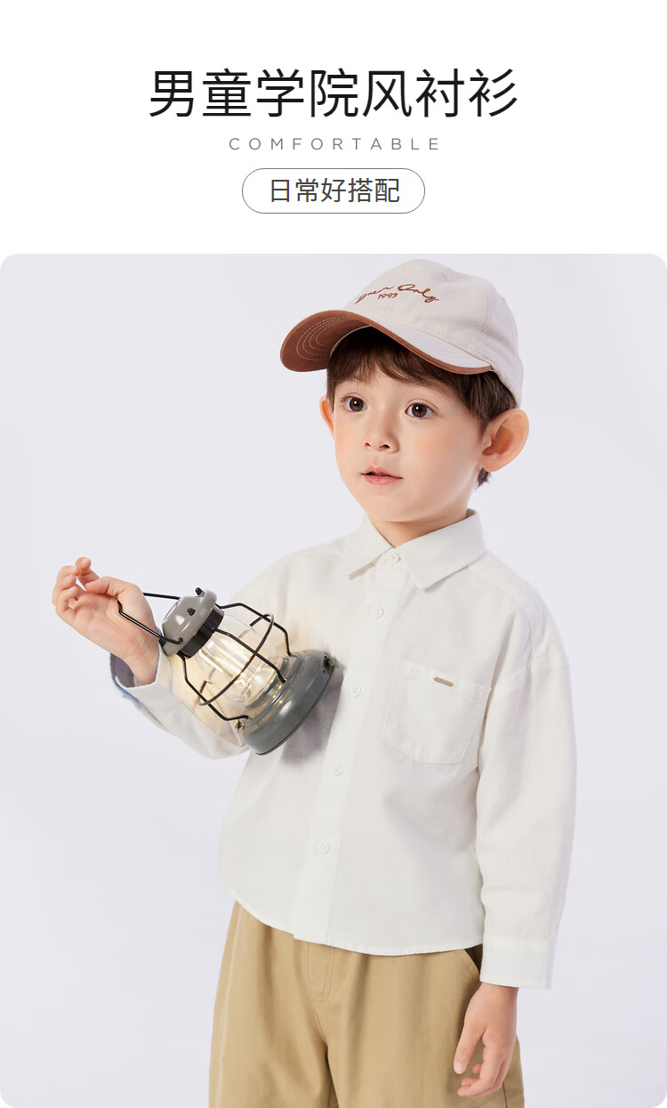 Balabala children's clothing children's shirts for boys and girls 2025 new spring and autumn lapel plaid shirts parent-child college style tops trendy white 10101-208325102202 150