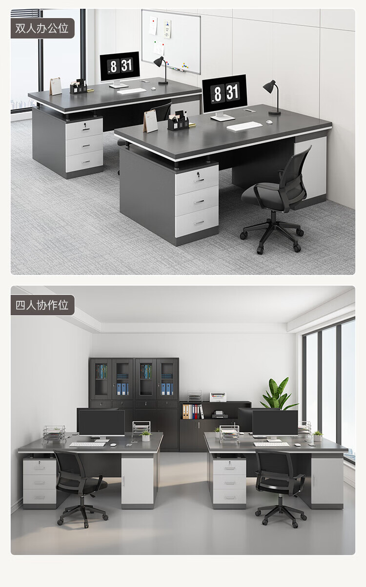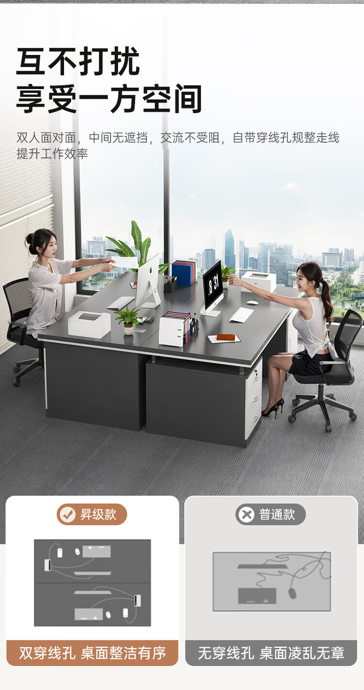 Desk double staff station office financial desk and chair combination simple and modern 2-person face-to-face staff desk thickened 28 desktop high-grade gray 160*70