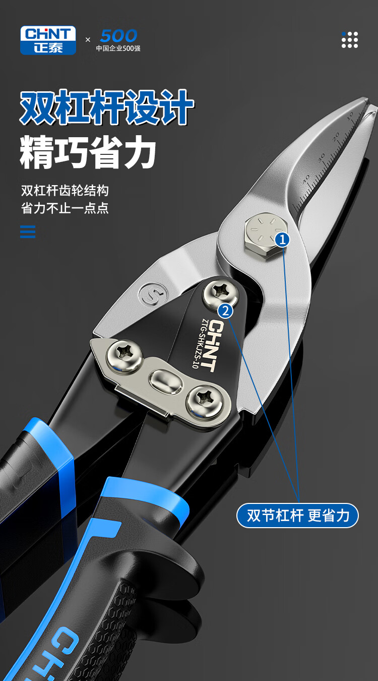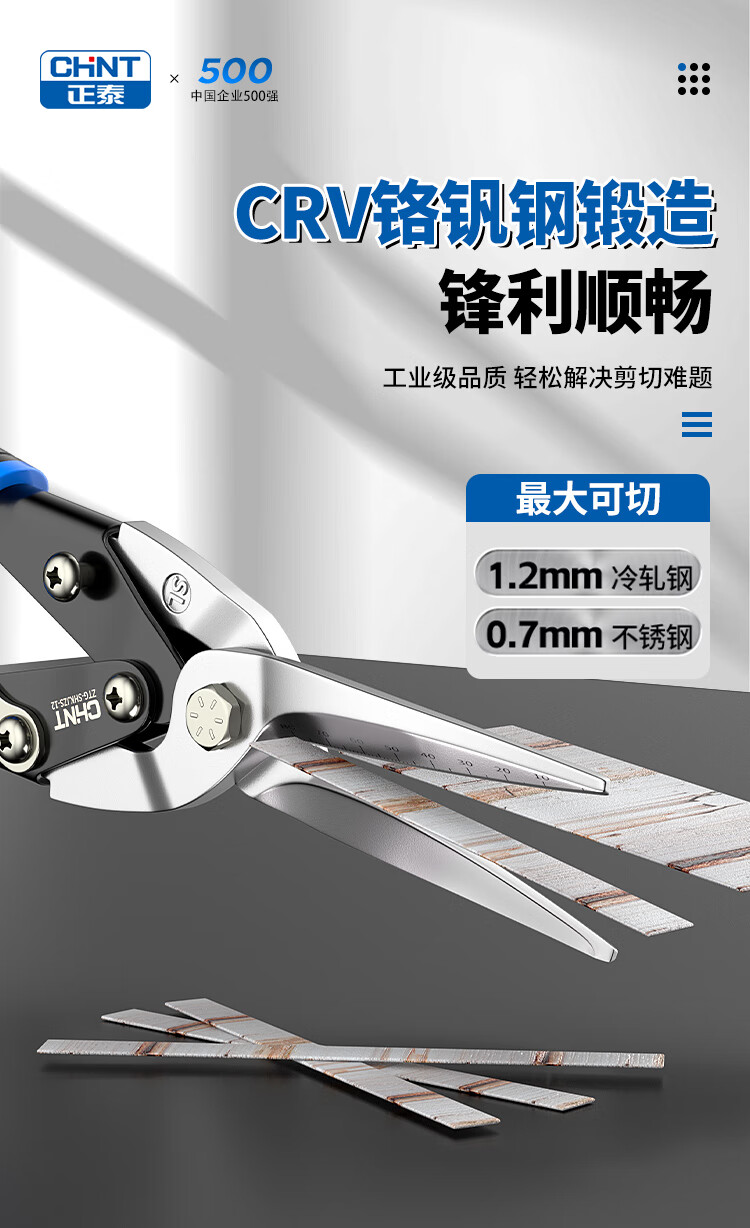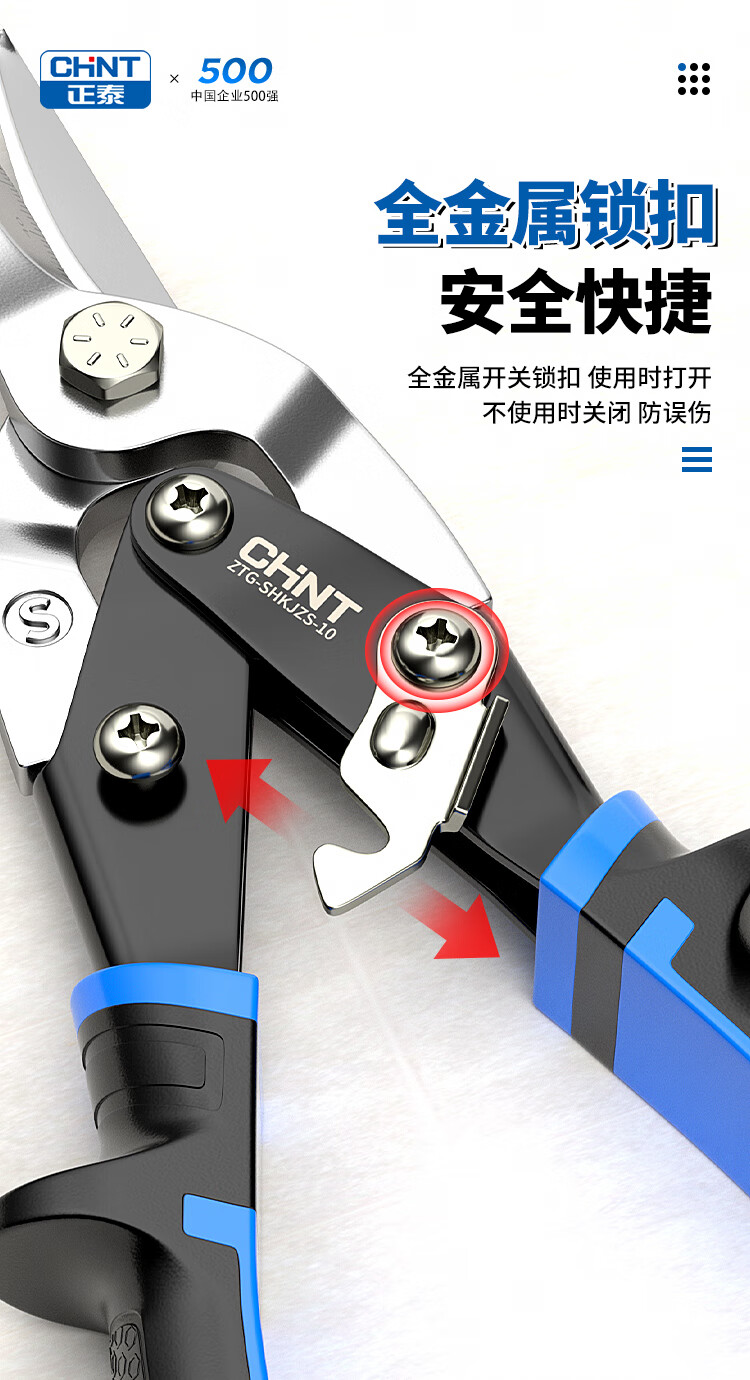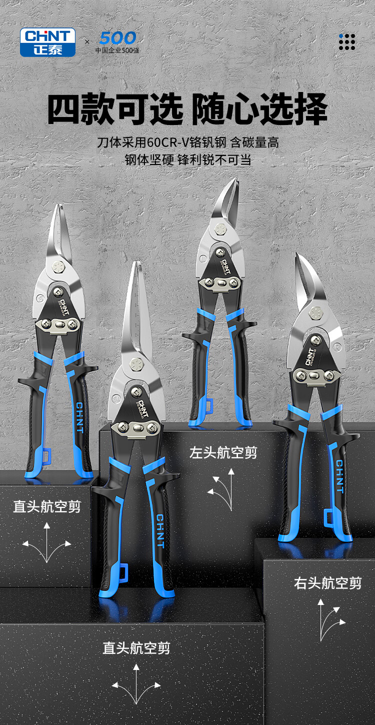 Chint aviation scissors, industrial-grade iron shears, light steel keels, aluminum gusset plates, stainless steel scissors, metal gauze powerful scissors, industrial-grade 10-inch right-head aviation scissors