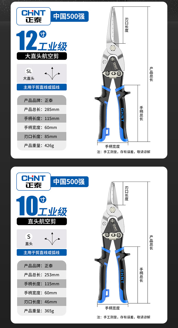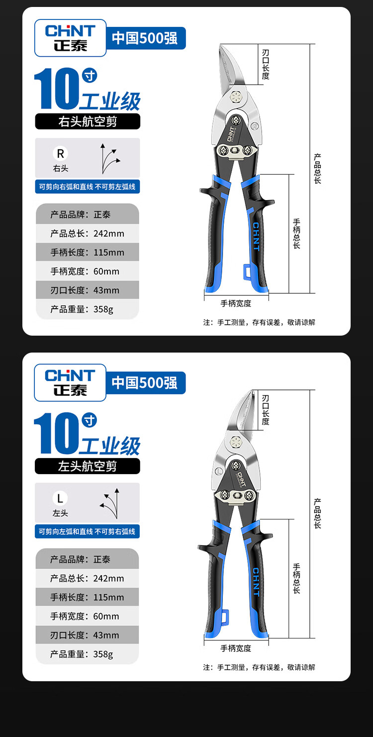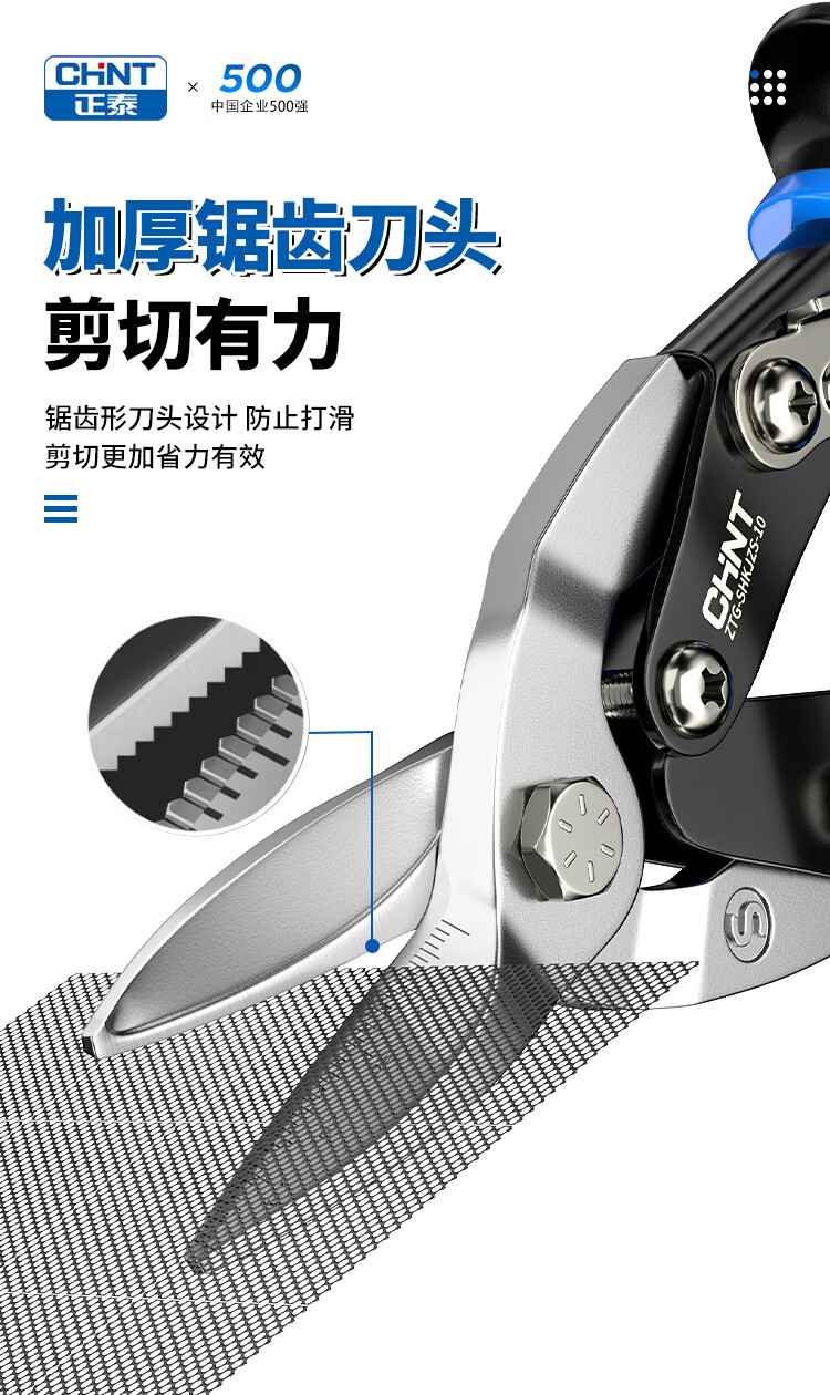 Chint aviation scissors, industrial-grade iron shears, light steel keels, aluminum gusset plates, stainless steel scissors, metal gauze powerful scissors, industrial-grade 10-inch right-head aviation scissors