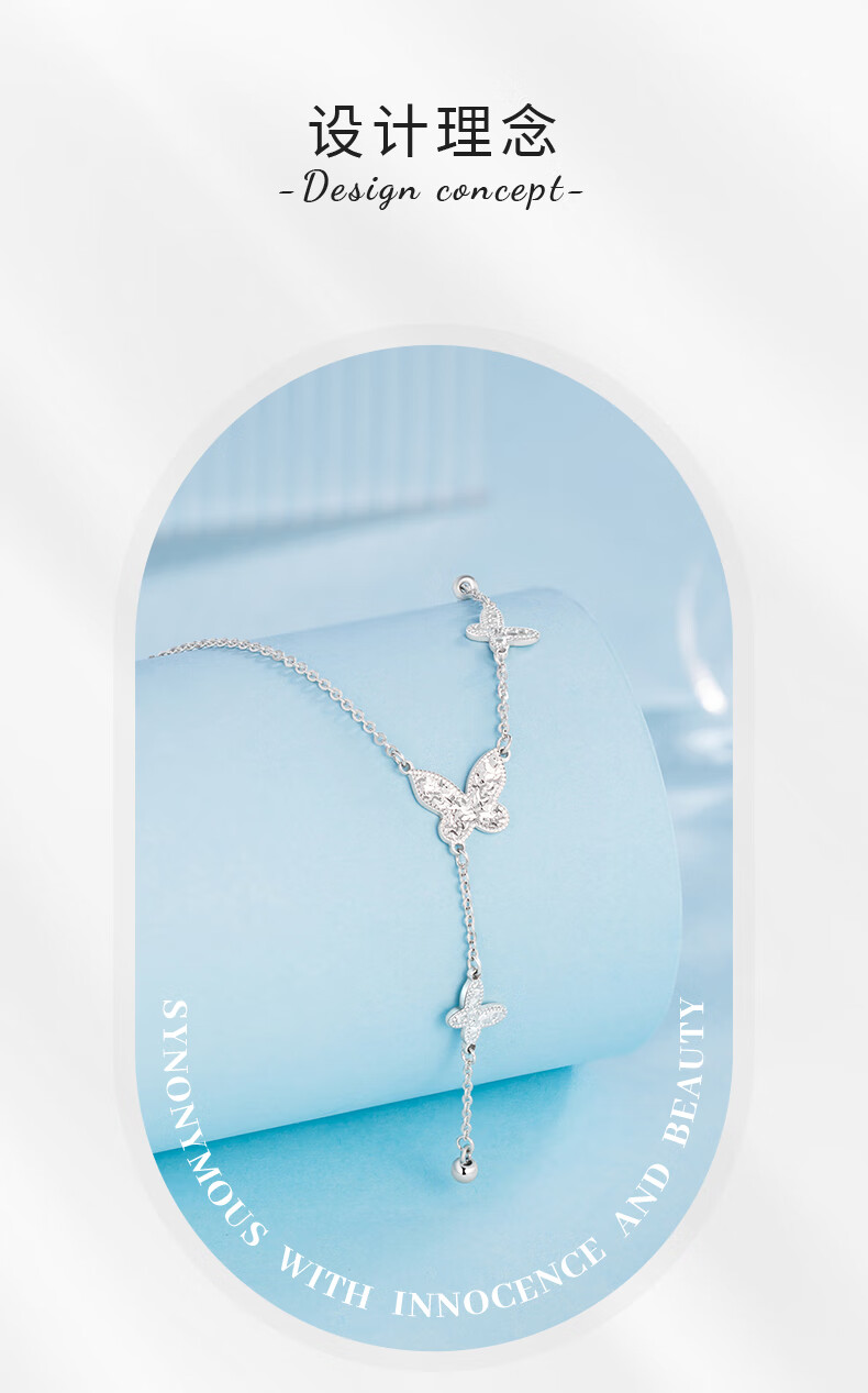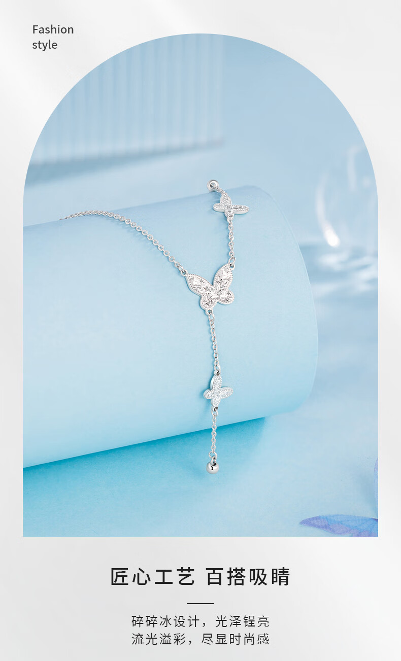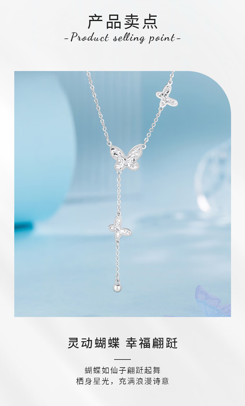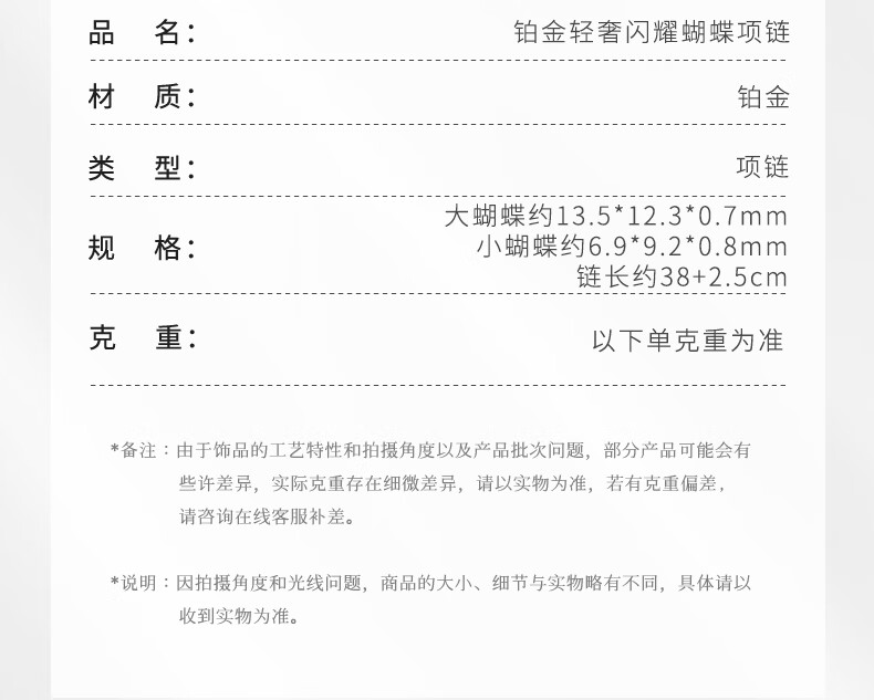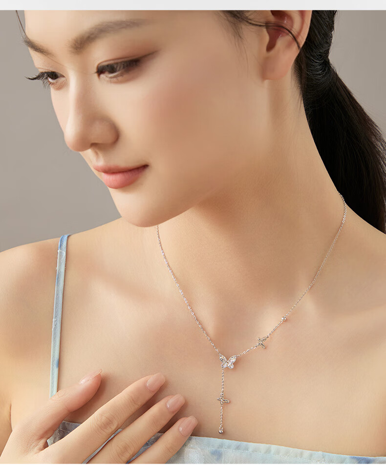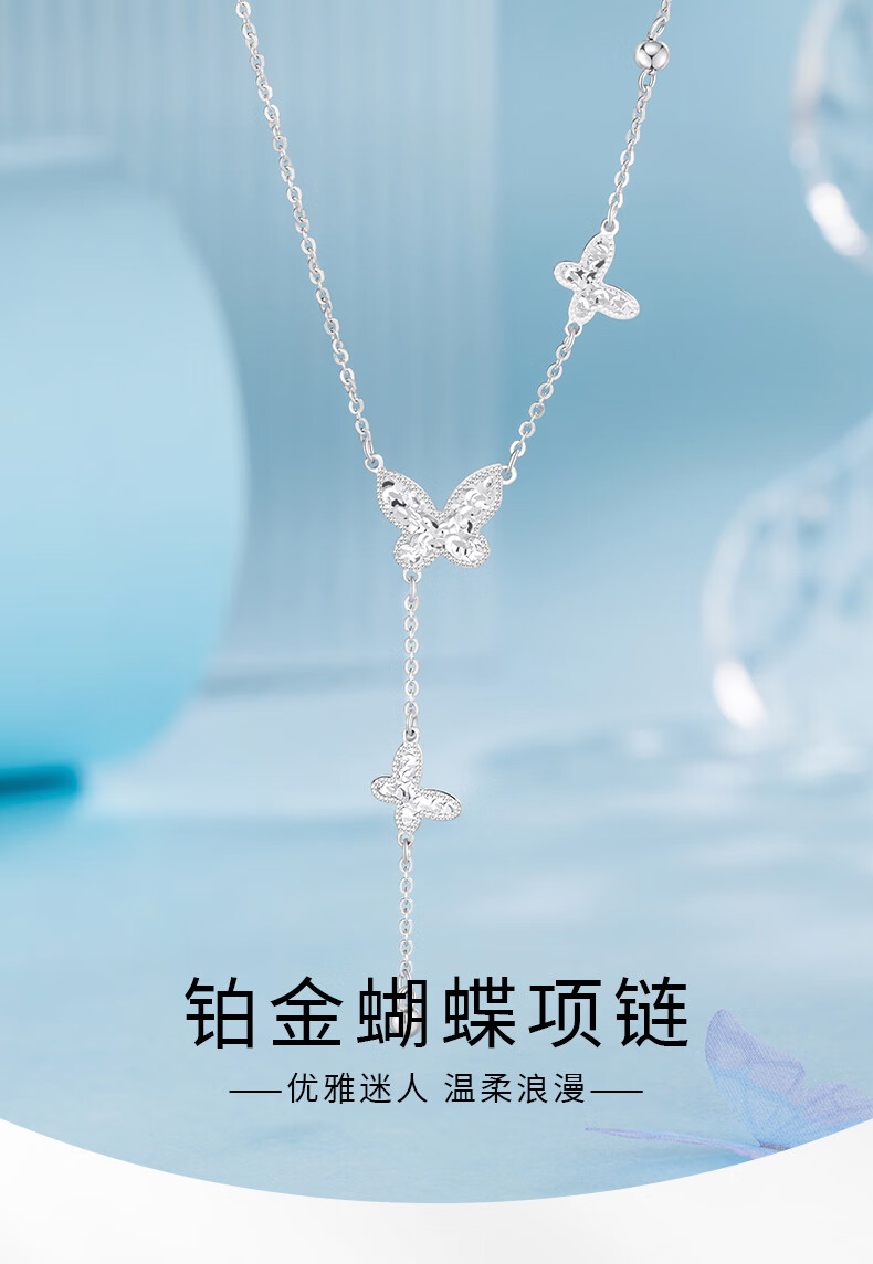 CHINA GOLD pt950 platinum light luxury sparkling butterfly necklace as a birthday gift for family and friends, about 5g