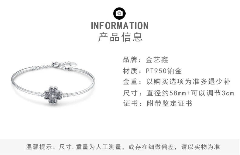 Jin Yixin platinum four-leaf clover bracelet for women PT950 women's platinum bracelet new clover for girlfriend, weighing about 6.68 grams, more refund, less compensation