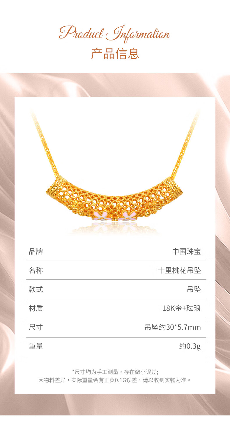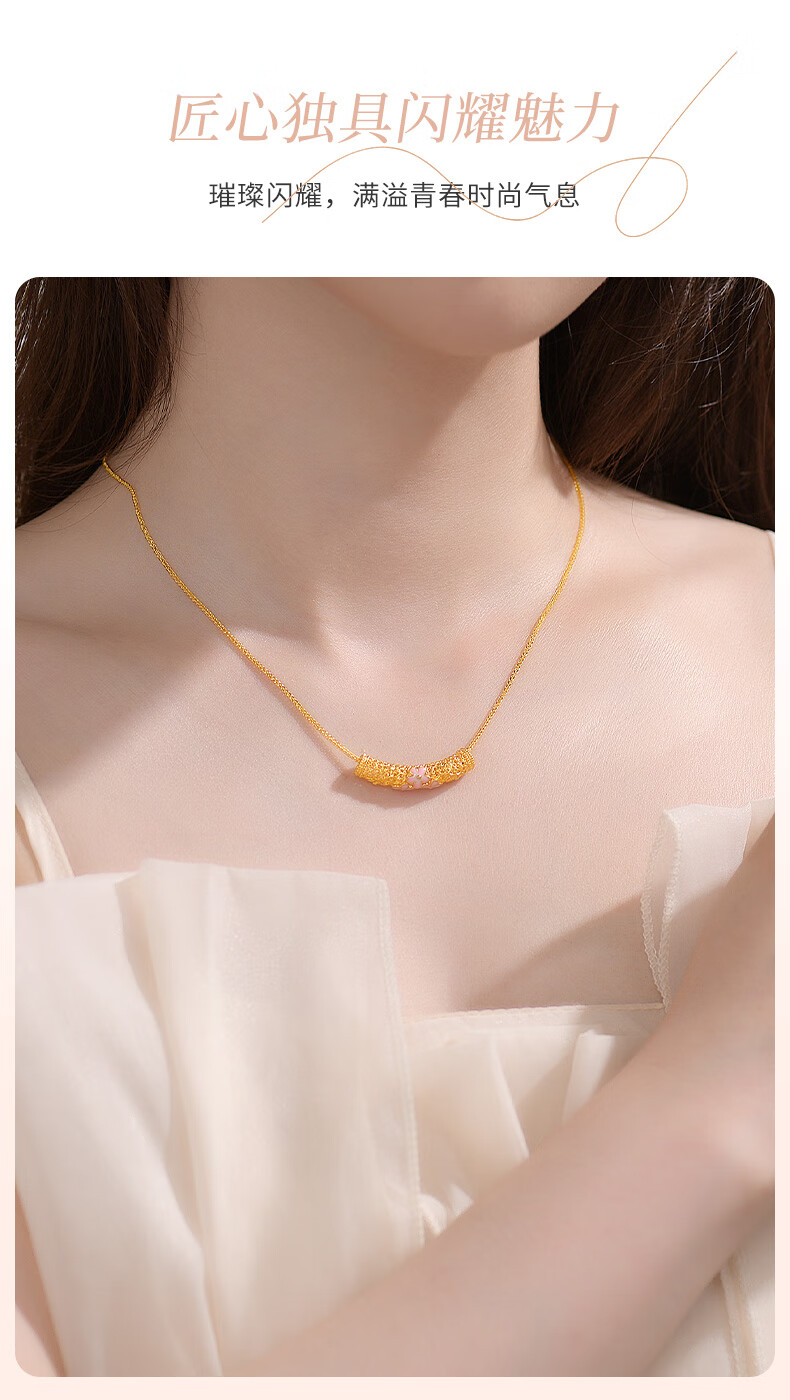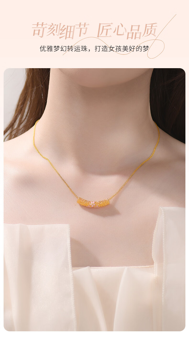 Chinese jewelry 18k gold pendant for women K gold ten-mile peach blossom transfer beads K gold necklace for girlfriend and wife Valentine's Day birthday gift Net gold weight 0.3 grams