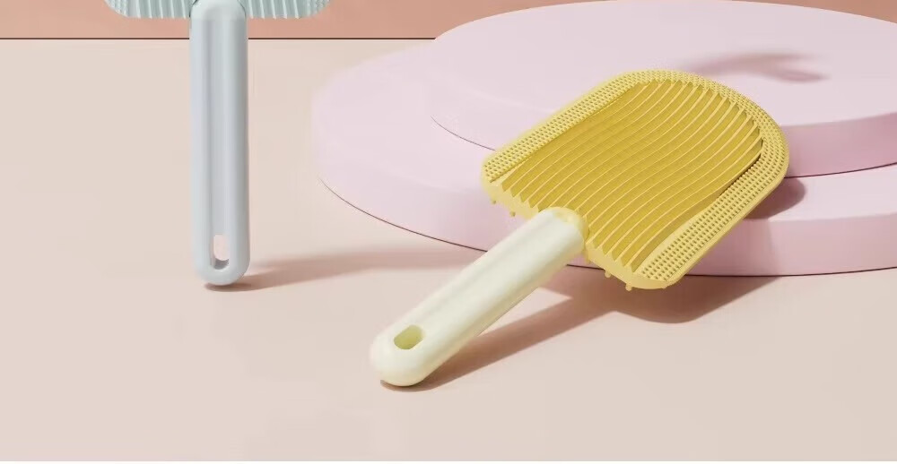 Bellega cat comb to remove floating hair, double-sided ice cream massage comb, strong brushing for pet dogs, silicone bathing and shaving tool, ice cream massage comb, green + yellow