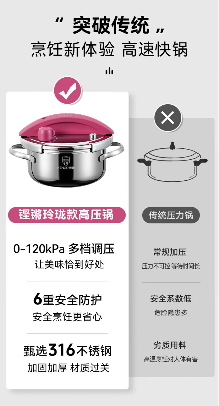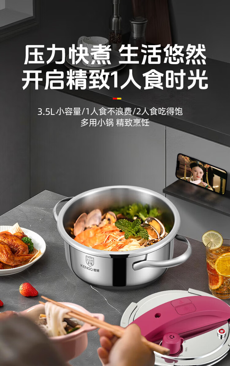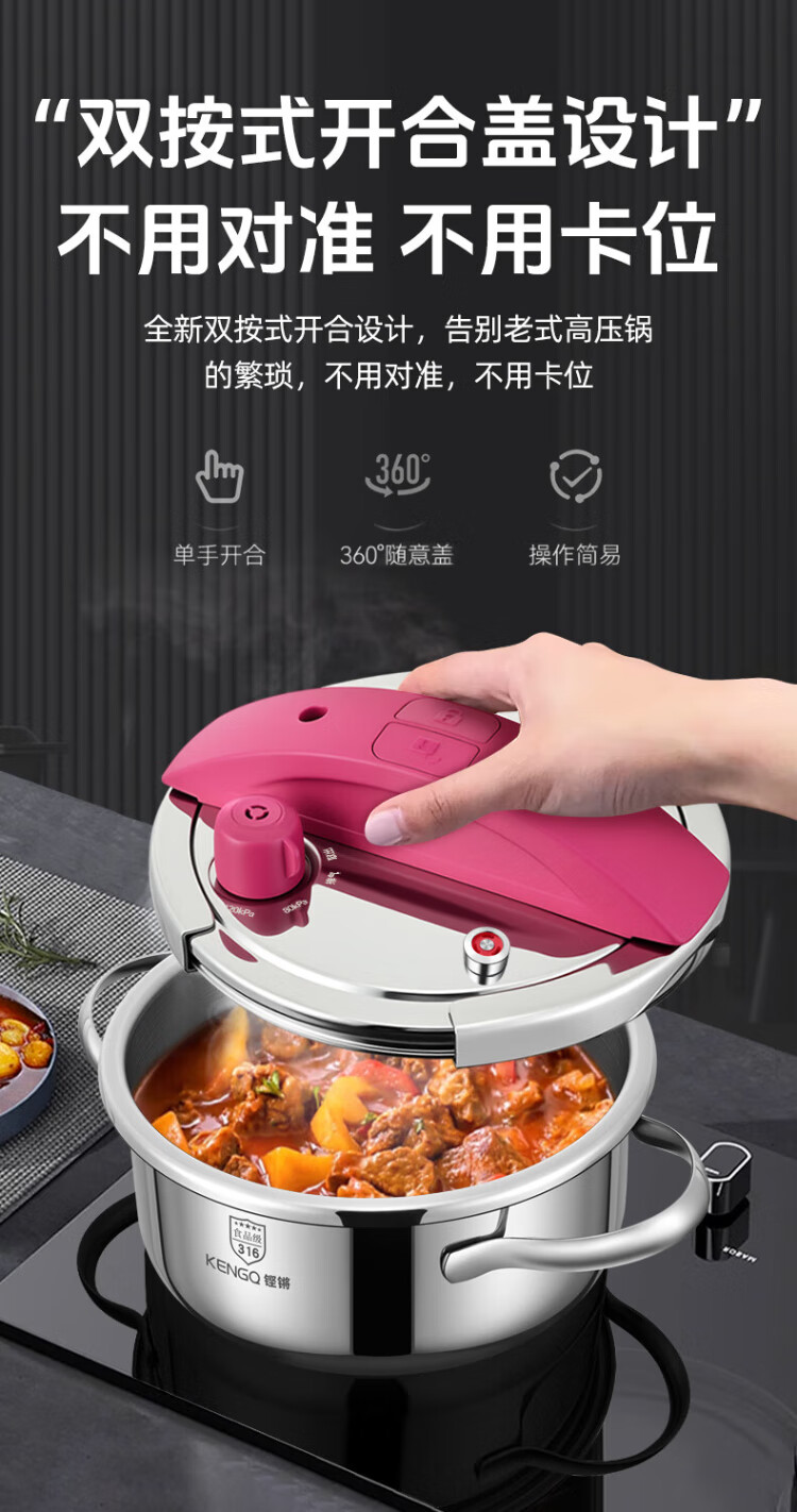 Sonor 316 pressure cooker household pressure cooker explosion-proof small multi-functional mini pressure cooker gas induction cooker universal one-click lid Yves Saint Laurent Red 316 pressure cooker + gift bag 22cm