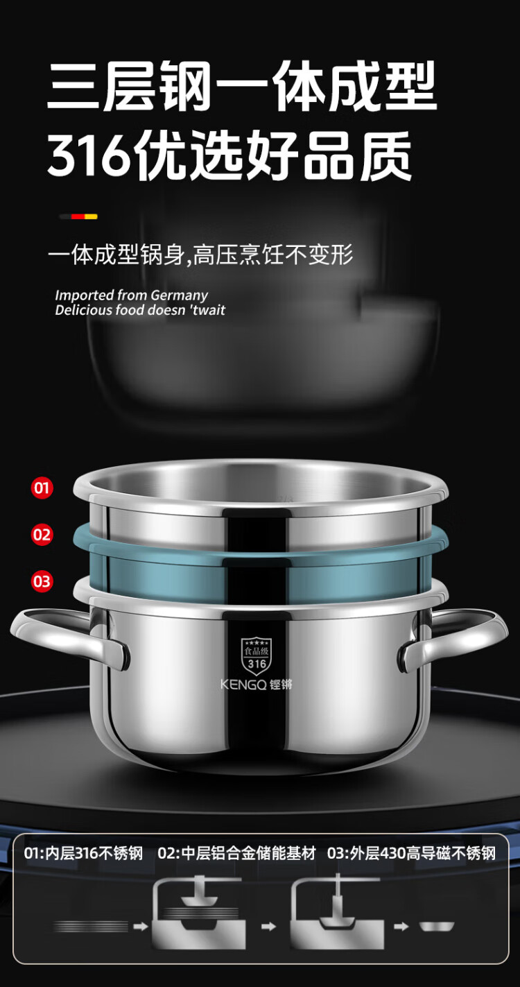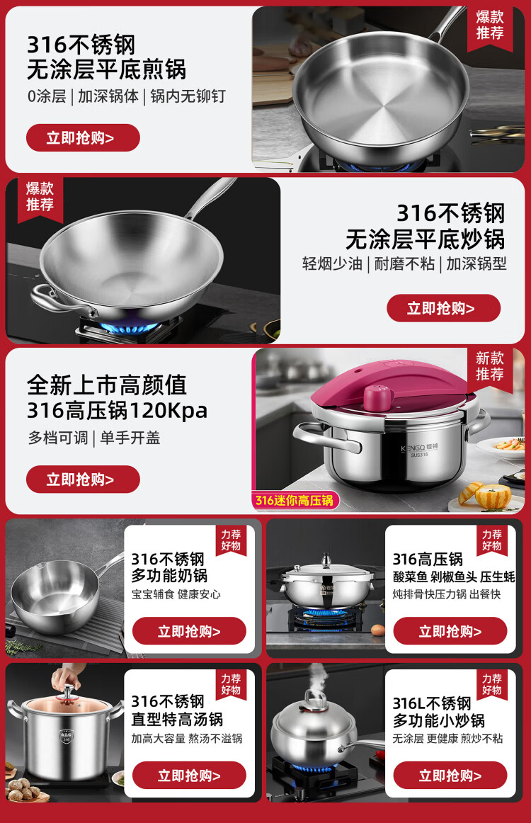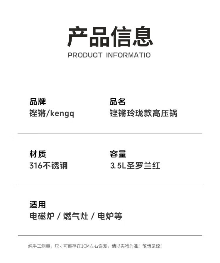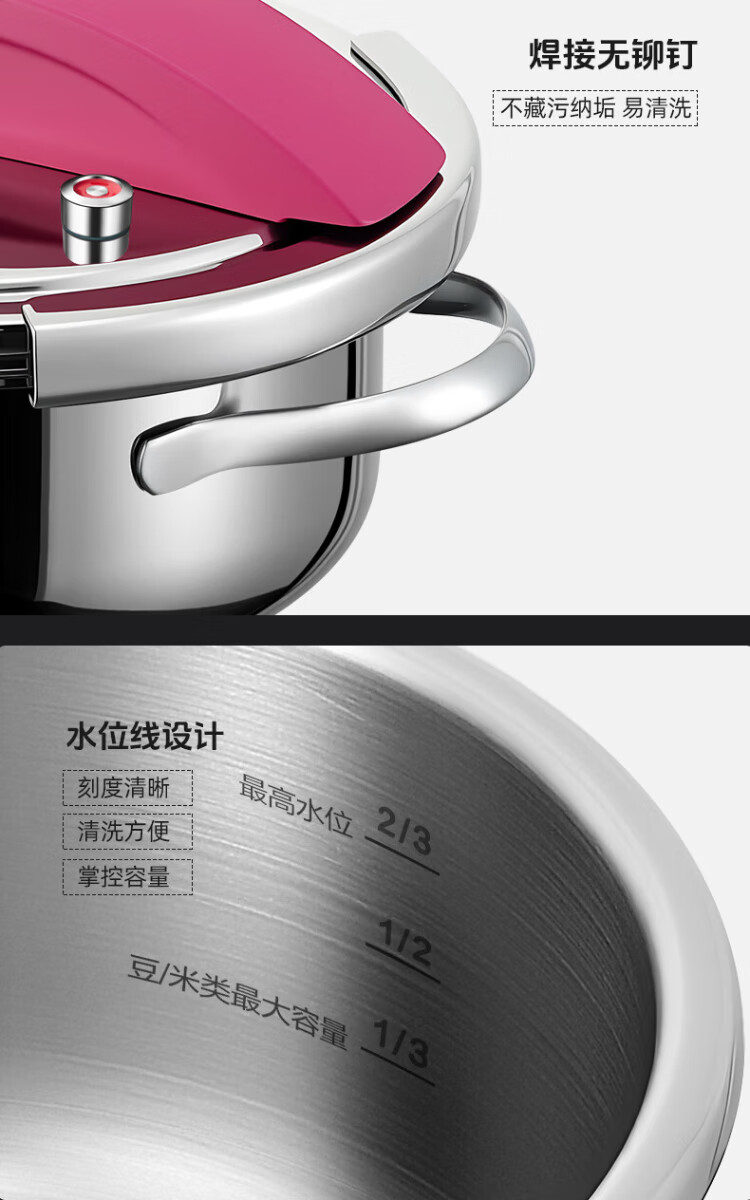 Sonor 316 pressure cooker household pressure cooker explosion-proof small multi-functional mini pressure cooker gas induction cooker universal one-click lid Yves Saint Laurent Red 316 pressure cooker + gift bag 22cm