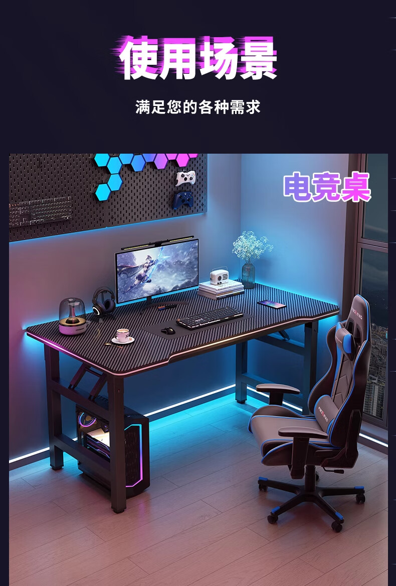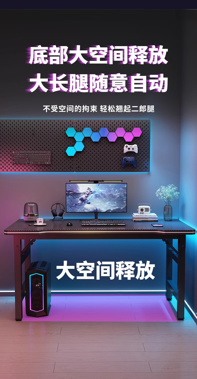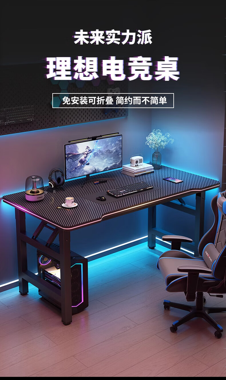 Computer desk desktop home folding table e-sports game table office desk simple study desk spring table black 80*40*75cm (no installation required)