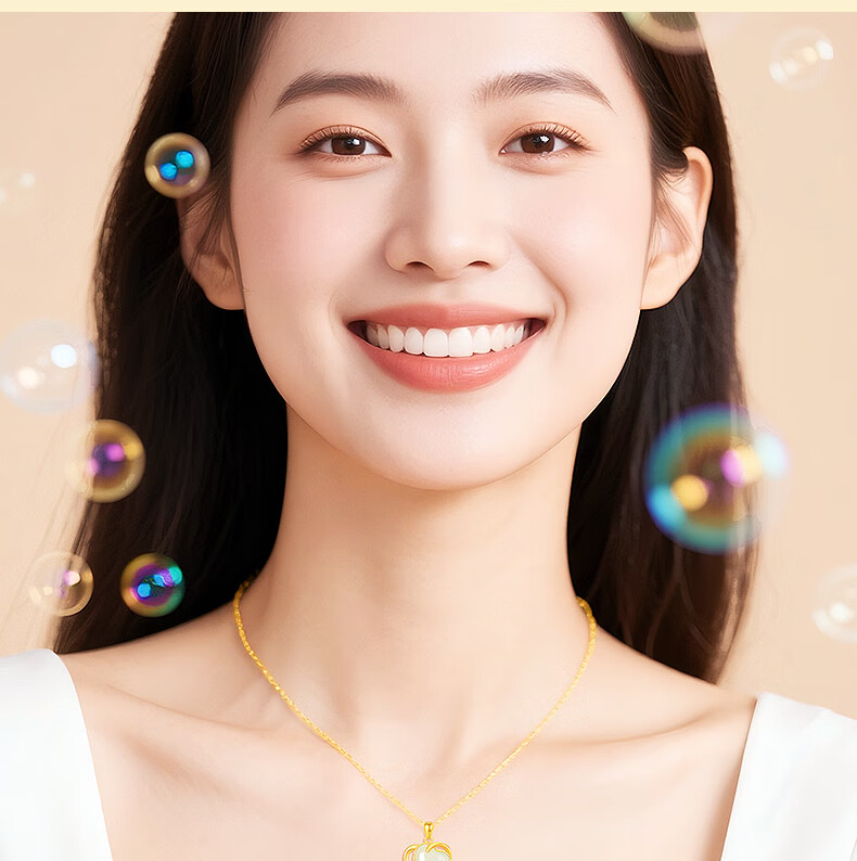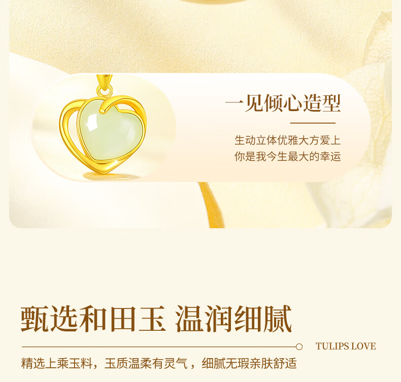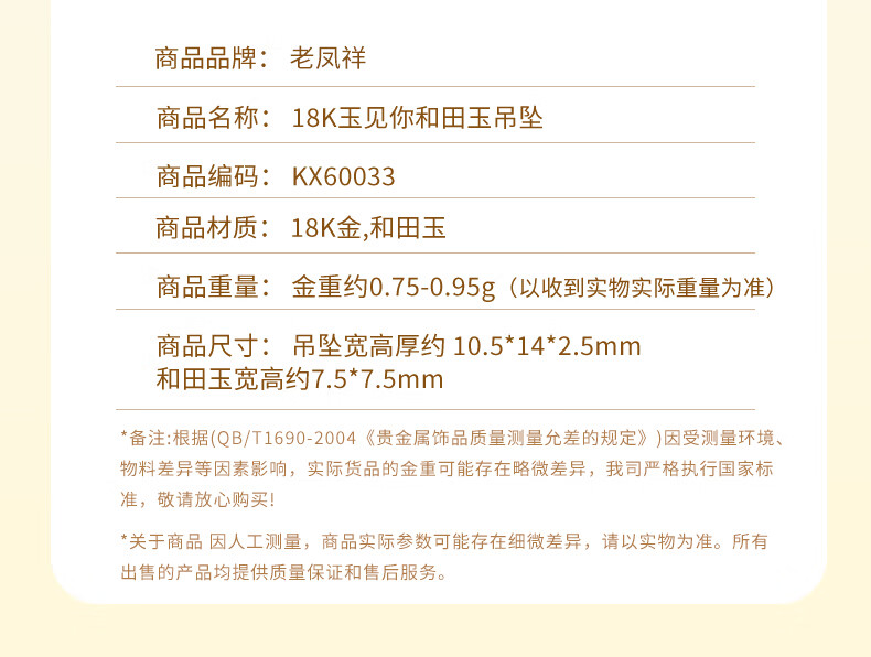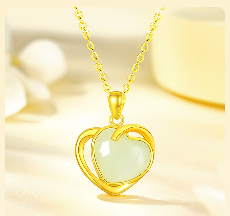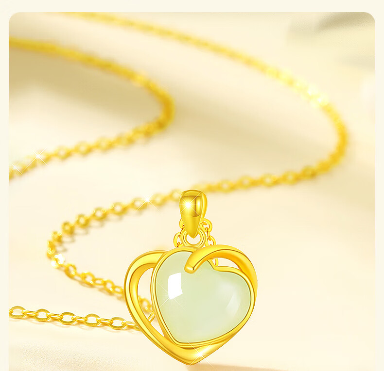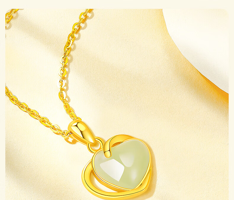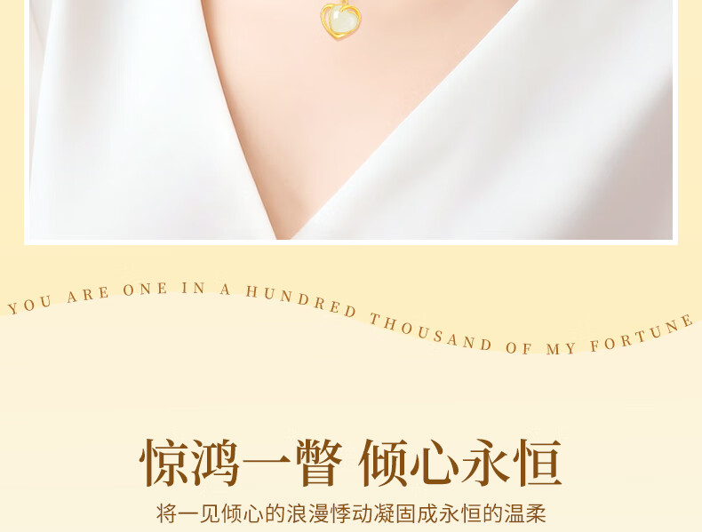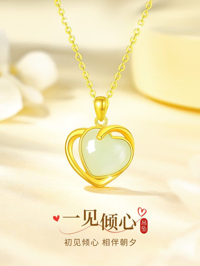 Lao Feng Xiang Jade See You Gold Necklace for Women 18K Gold Light Luxury Hetian Jade Pendant Wedding Anniversary Gift for Girlfriend and Wife 18k Jade See You Hetian Jade Pendant + 18K Gold Chain