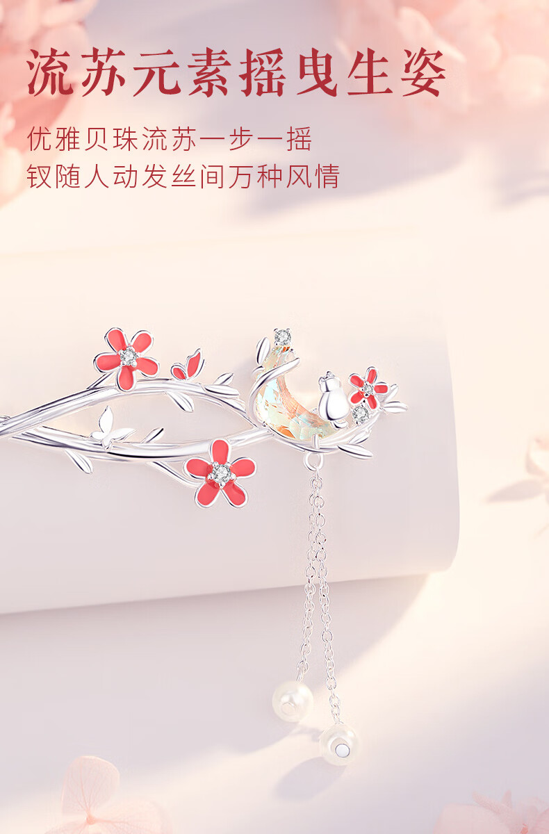 Ginqianhui hairpin for women, ancient style, tassel hairpin, new Chinese style hairpin, Valentine's Day birthday gift for girlfriend, wishing meow hairpin + seven warehouse delivery/next day delivery, 1 piece set