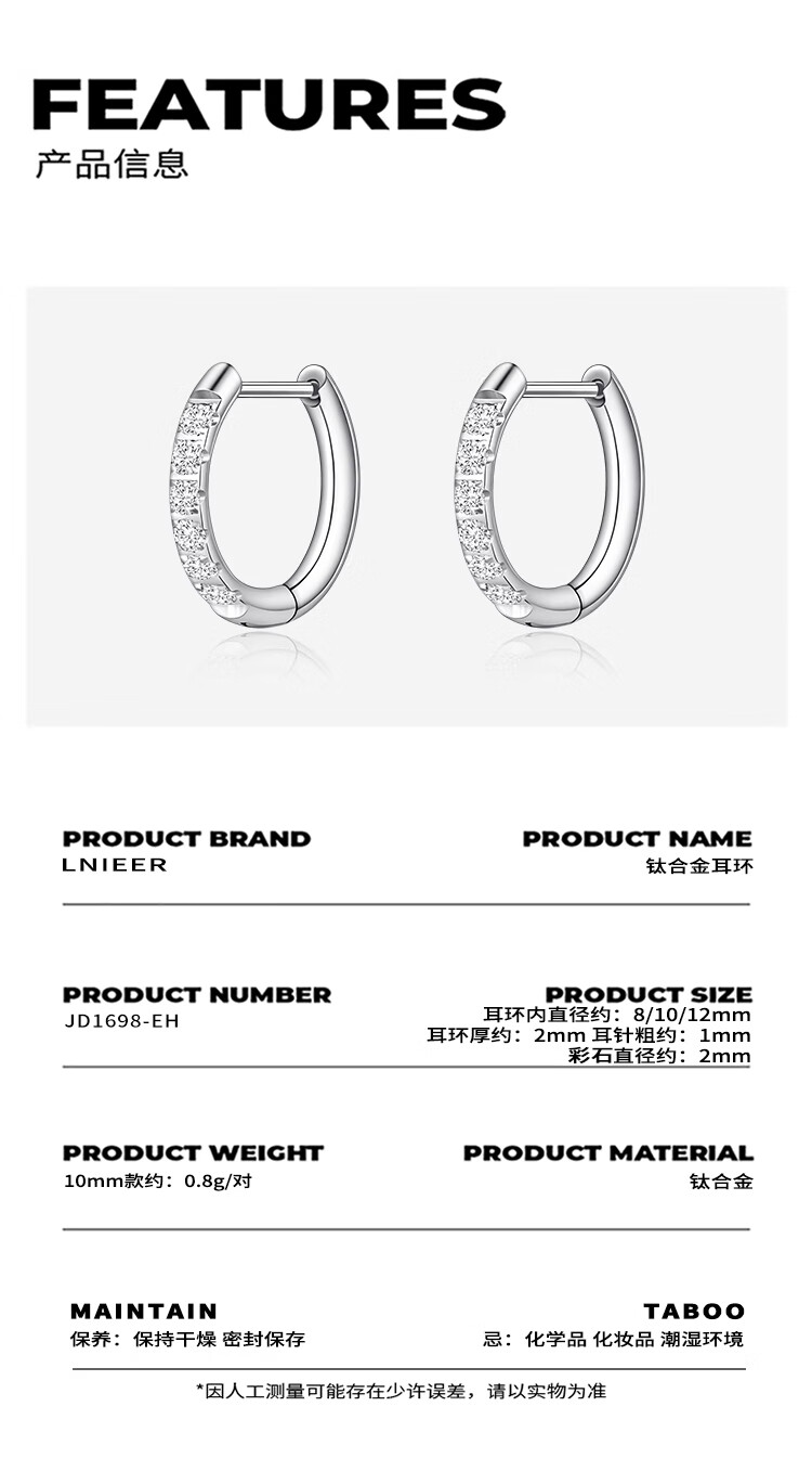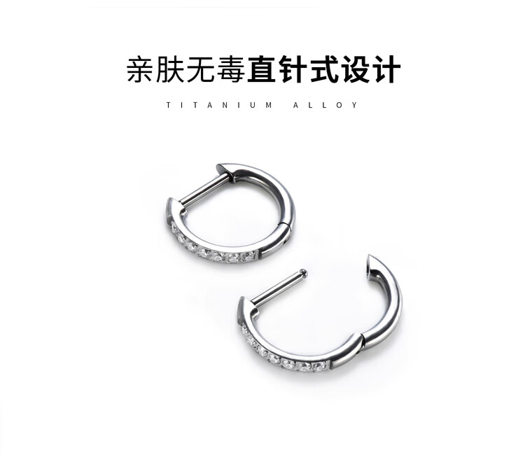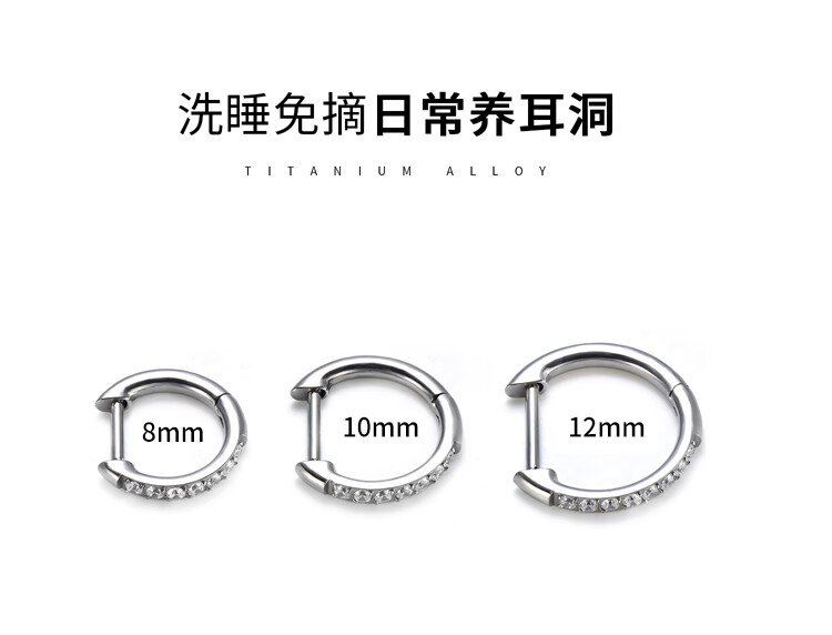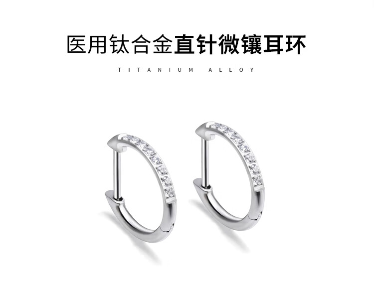 LnieerF136 titanium alloy earrings for women, medical implant-grade D-shaped straight needle plain ring earrings, ear piercing earrings, ear bone nails, a pair of 8mm titanium alloy earrings