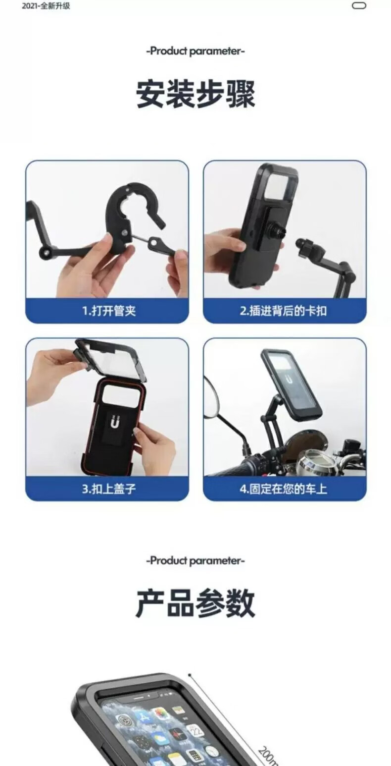 Bicycle and motorcycle mobile phone holder takeaway navigation bicycle car shockproof and waterproof machine bracket fixed and rainproof 1 pack