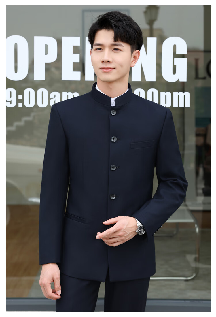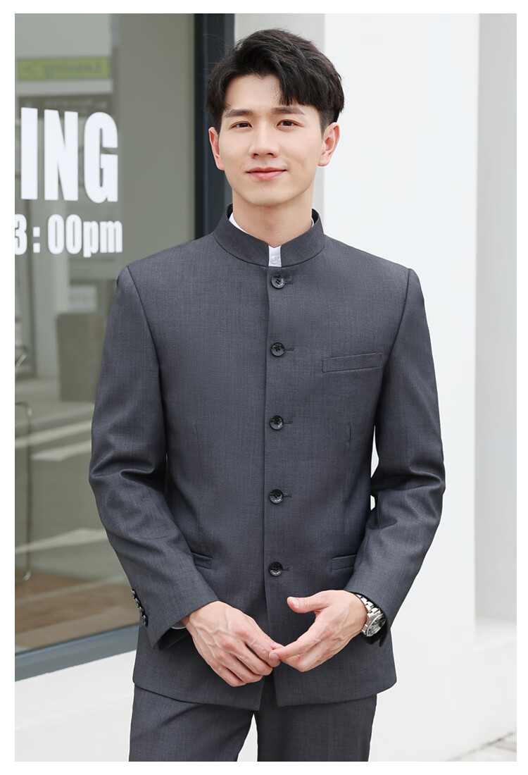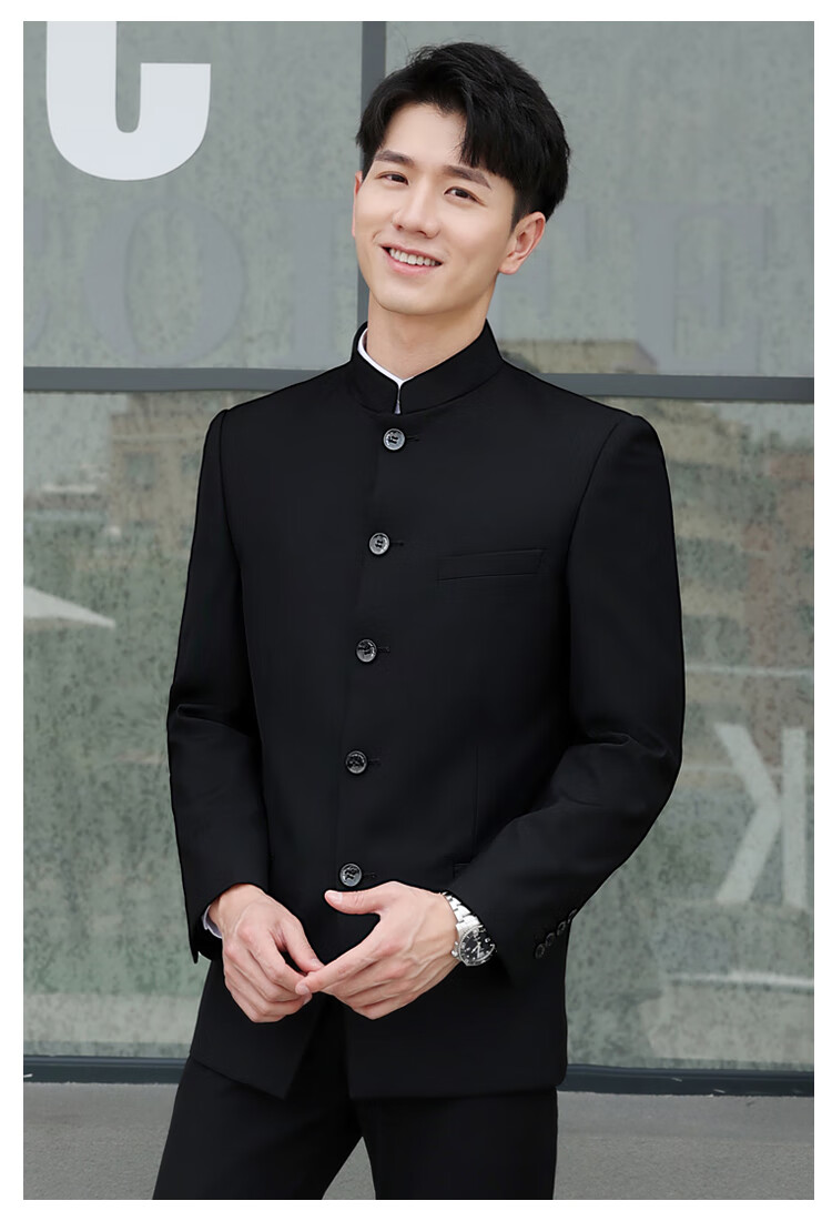 Hengyuanxiang Chinese tunic suit men's youth slim Chinese stand collar suit suit Chinese wedding dress Chinese style Tang suit Chinese stand collar black single top L 175 weight 125-135 Jin Jin equals 0.5 kg