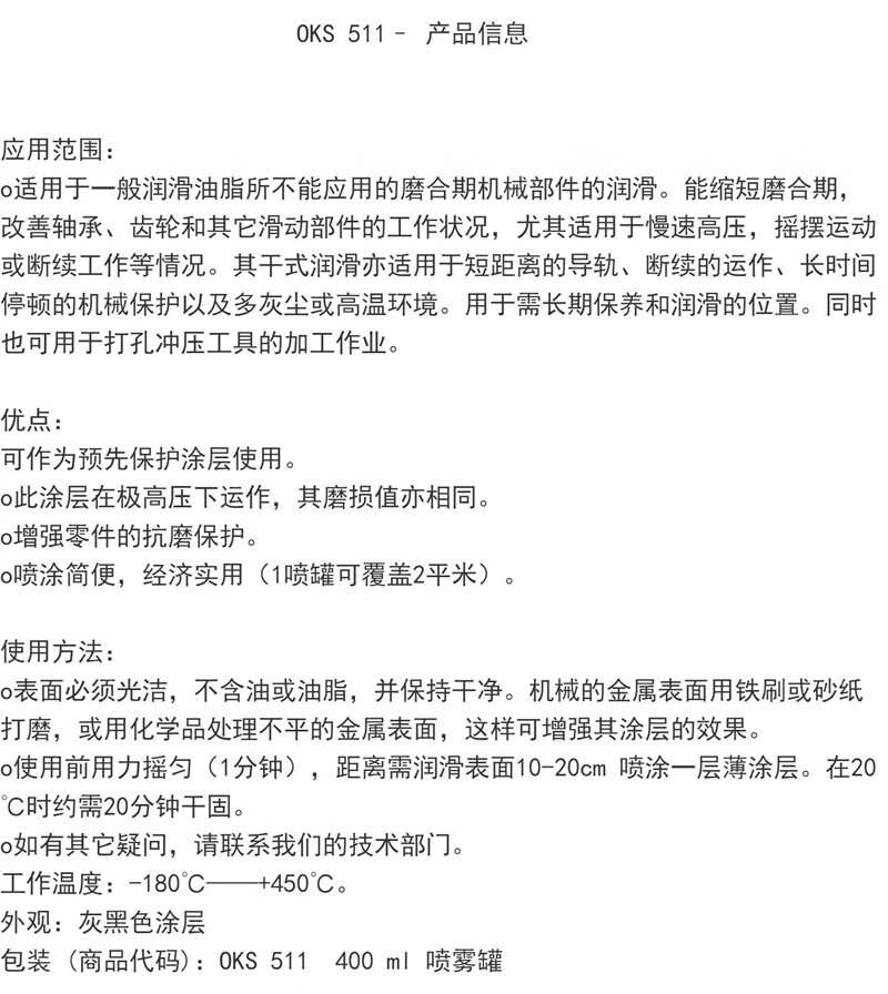 OKS511 imported from Germany OKS511 molybdenum disulfide spray lubrication and maintenance to reduce friction coating dry film friction reduction 1 bottle