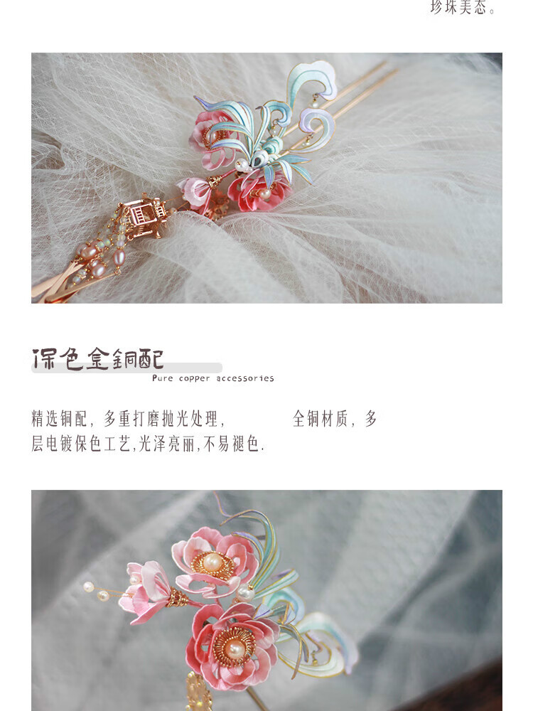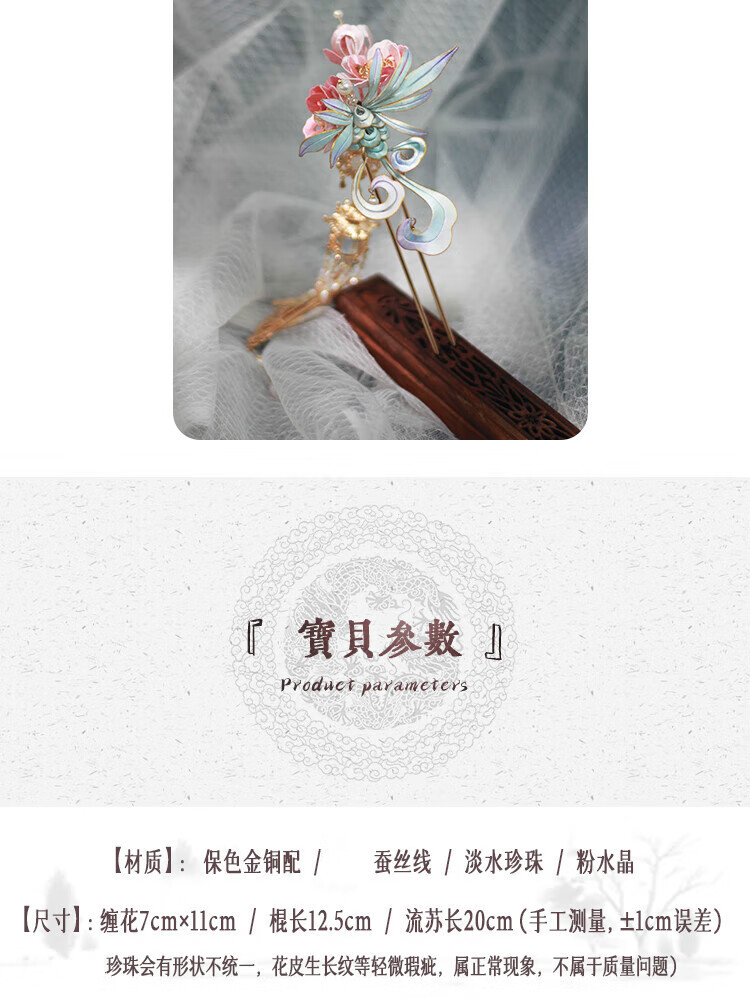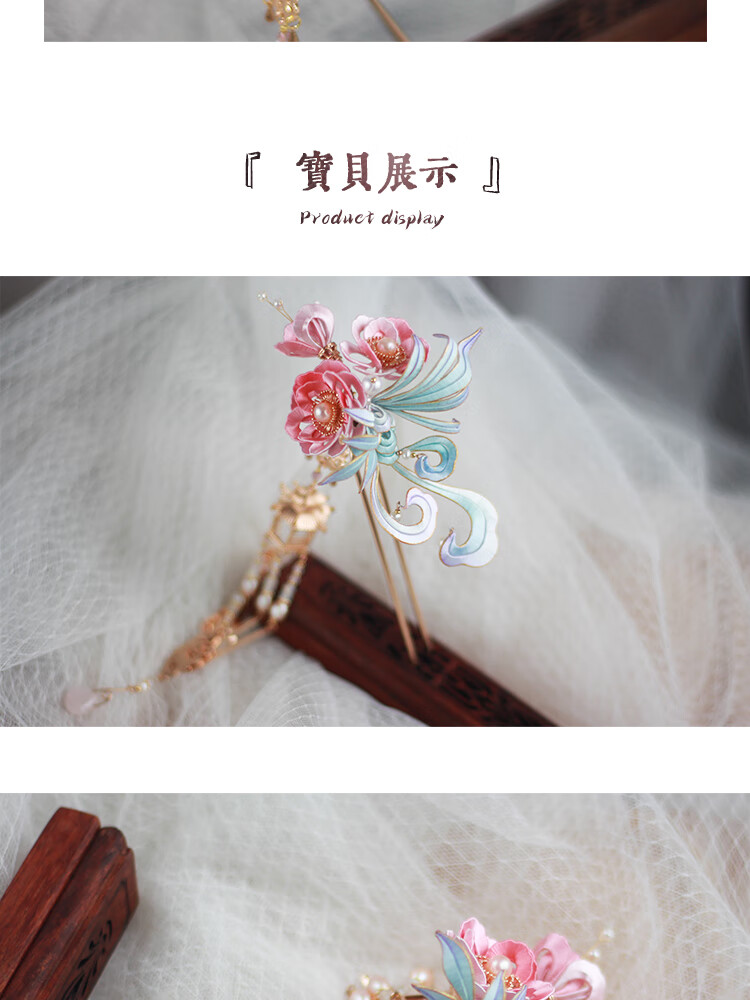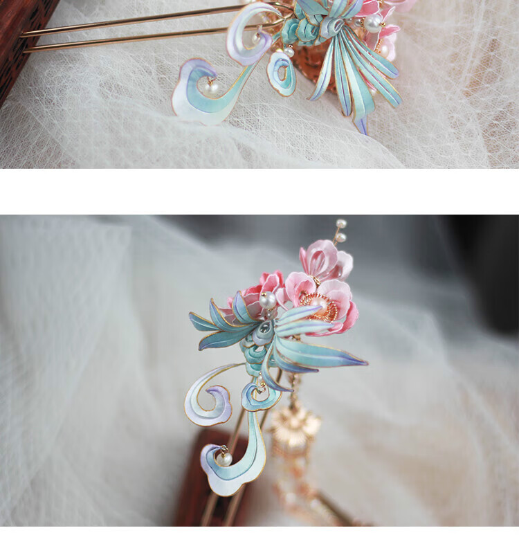 VAN OCEAN ANNORA Qing Ling Intangible Cultural Heritage Tangled Flower Hair Accessories High-end Ancient Style New Chinese Hanfu Tassel Hairpin Qing Ling Double Stick Qing Ling Double Stick Long Hairpin