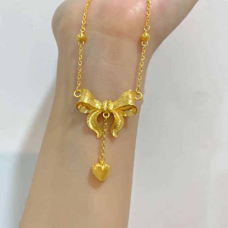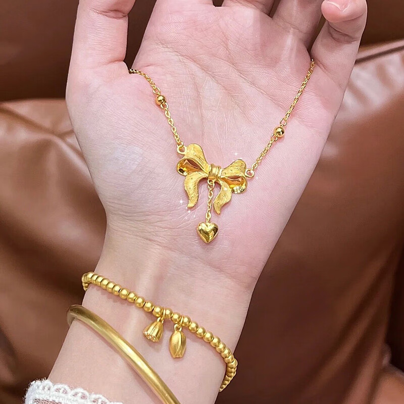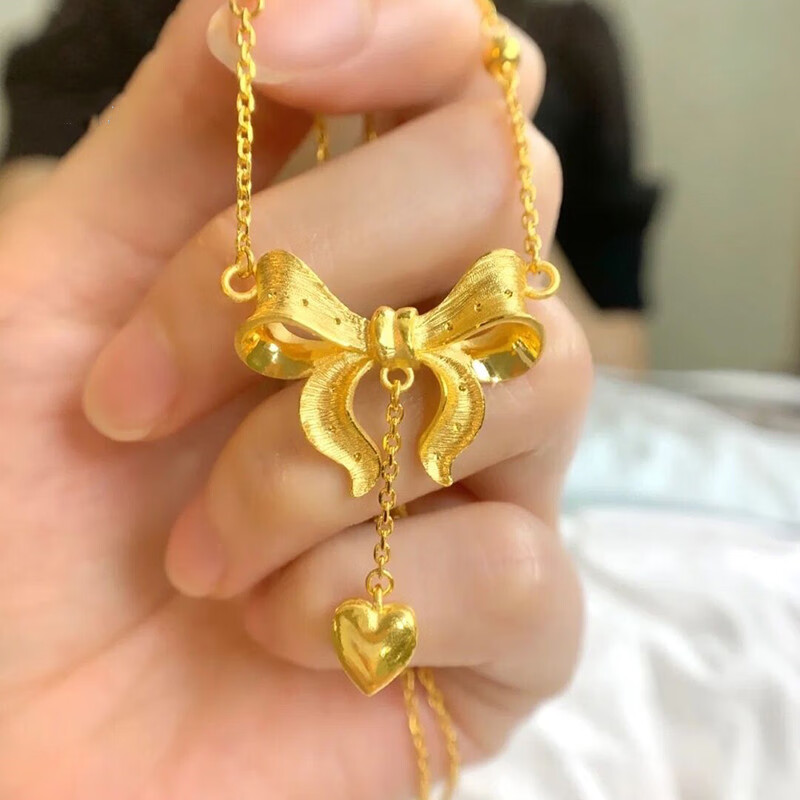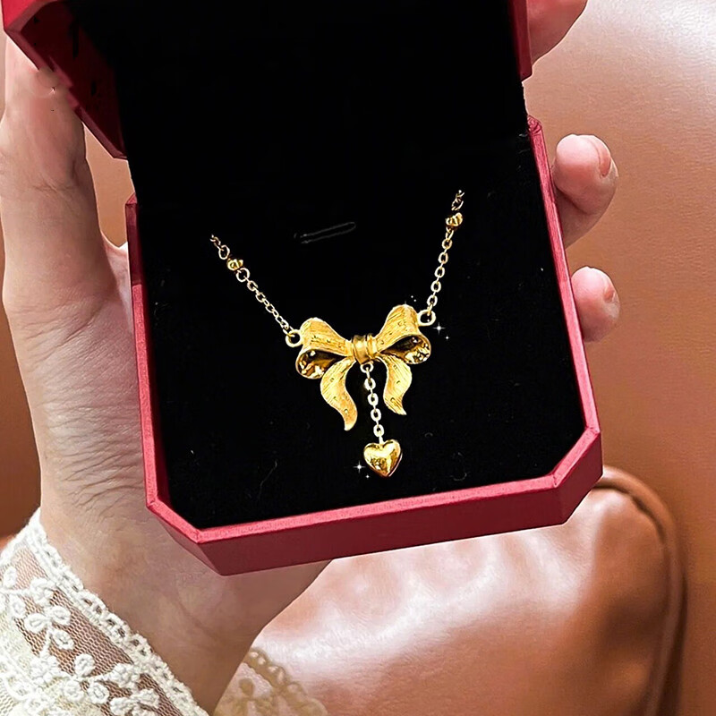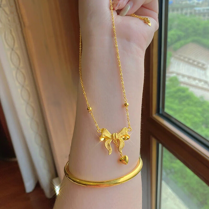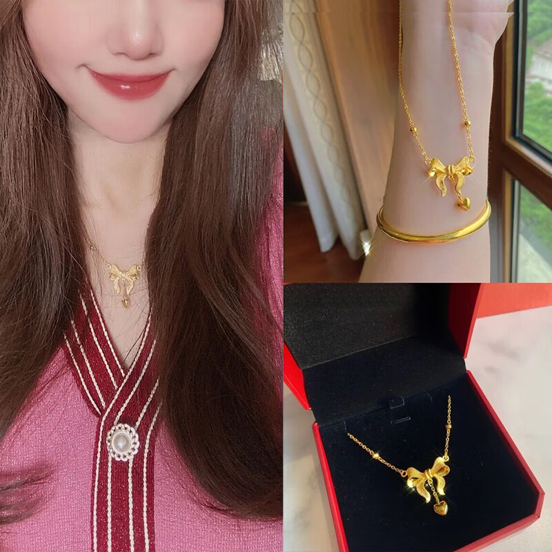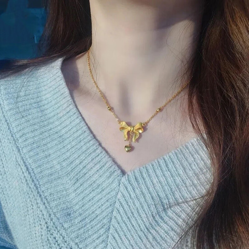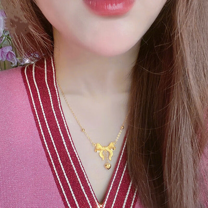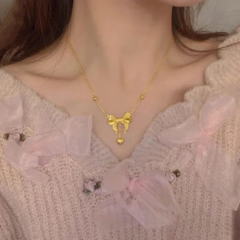 Feng Feili 18K gold-filled bow love necklace fashionable fugitive princess clavicle chain for women love bow necklace