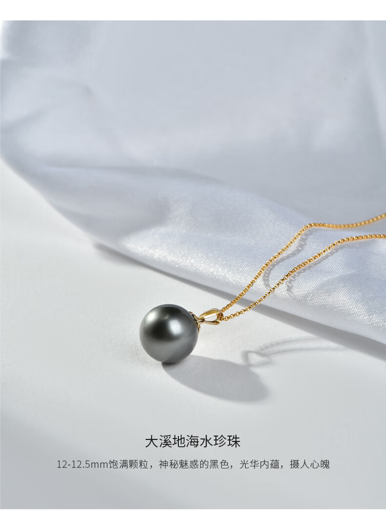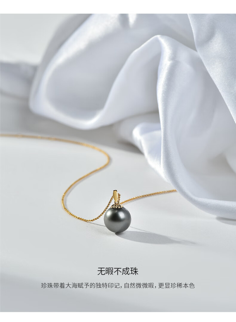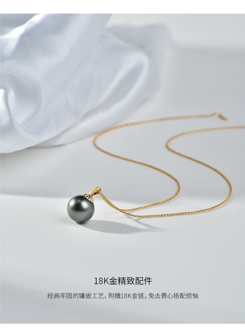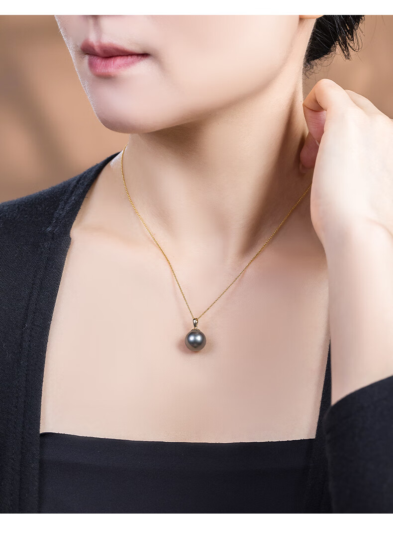 Jingrun Pearl Pendant Yinghui 18K Gold Tahitian Black Pearl Pendant Round Seawater Pearl Necklace Birthday Gift 12-12.5mm Free 925 Silver Chain