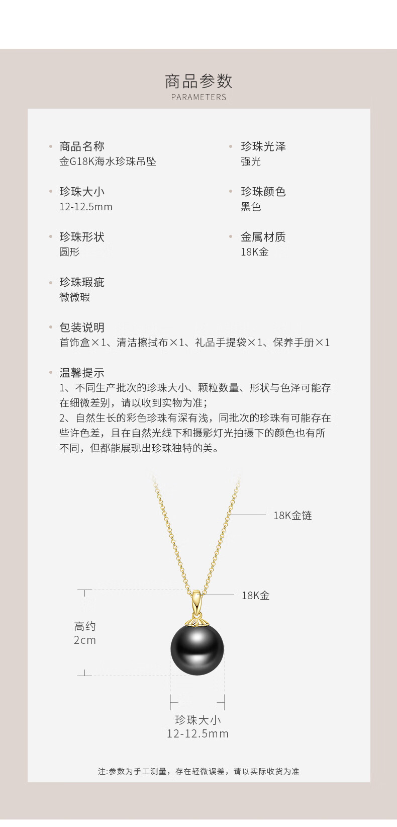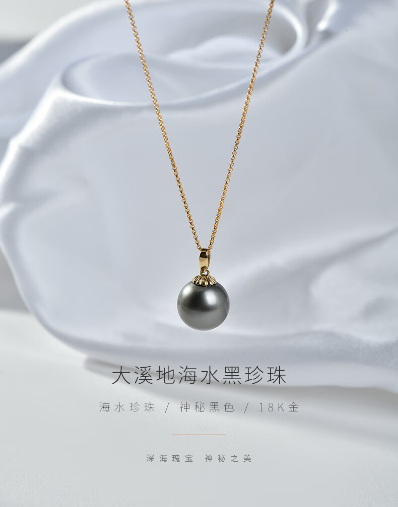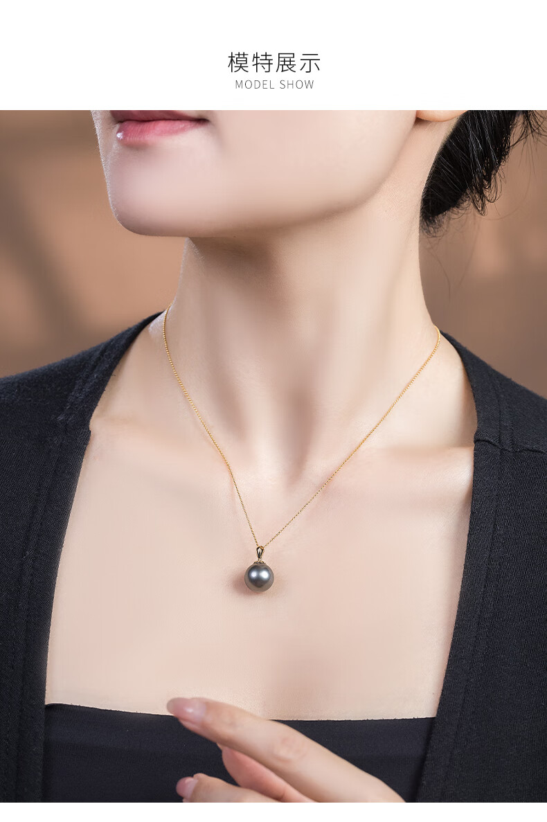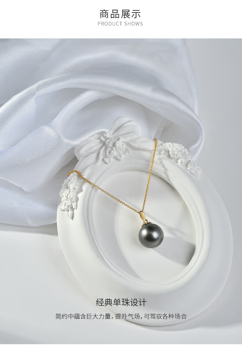 Jingrun Pearl Pendant Yinghui 18K Gold Tahitian Black Pearl Pendant Round Seawater Pearl Necklace Birthday Gift 12-12.5mm Free 925 Silver Chain