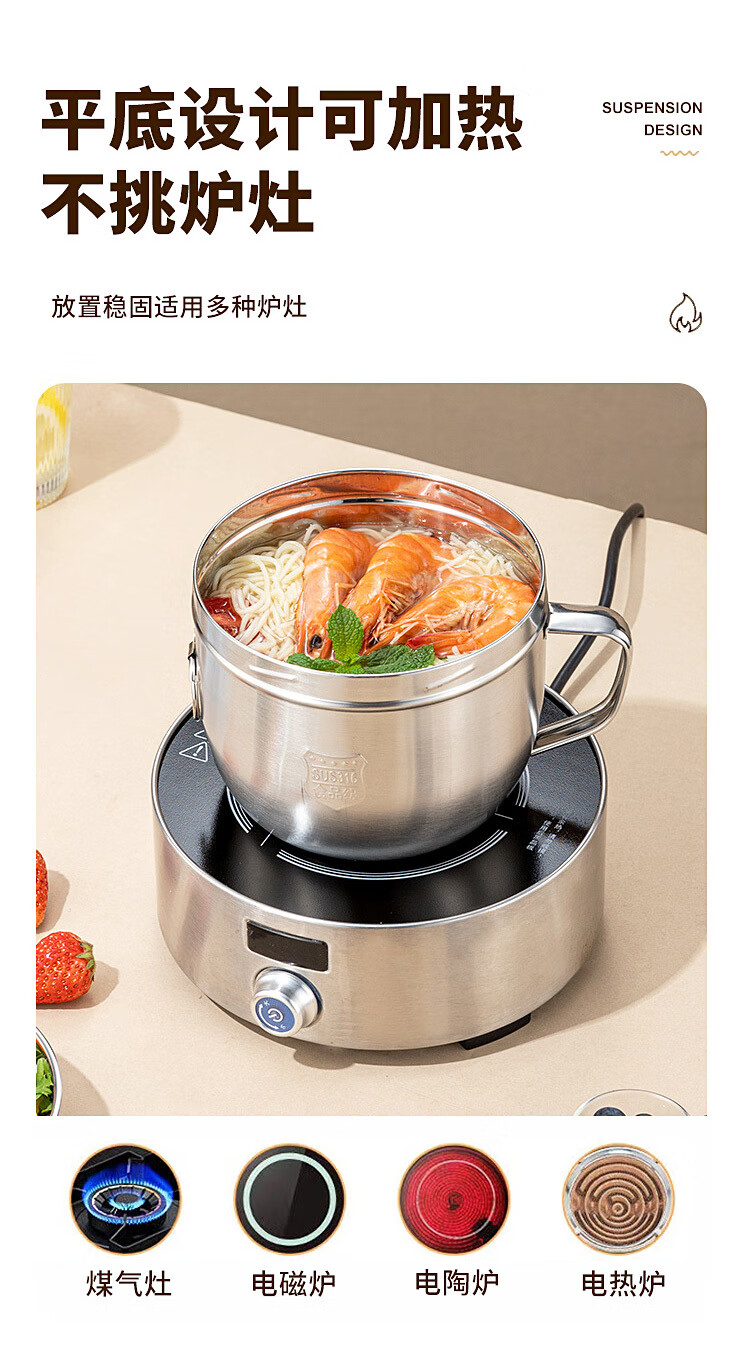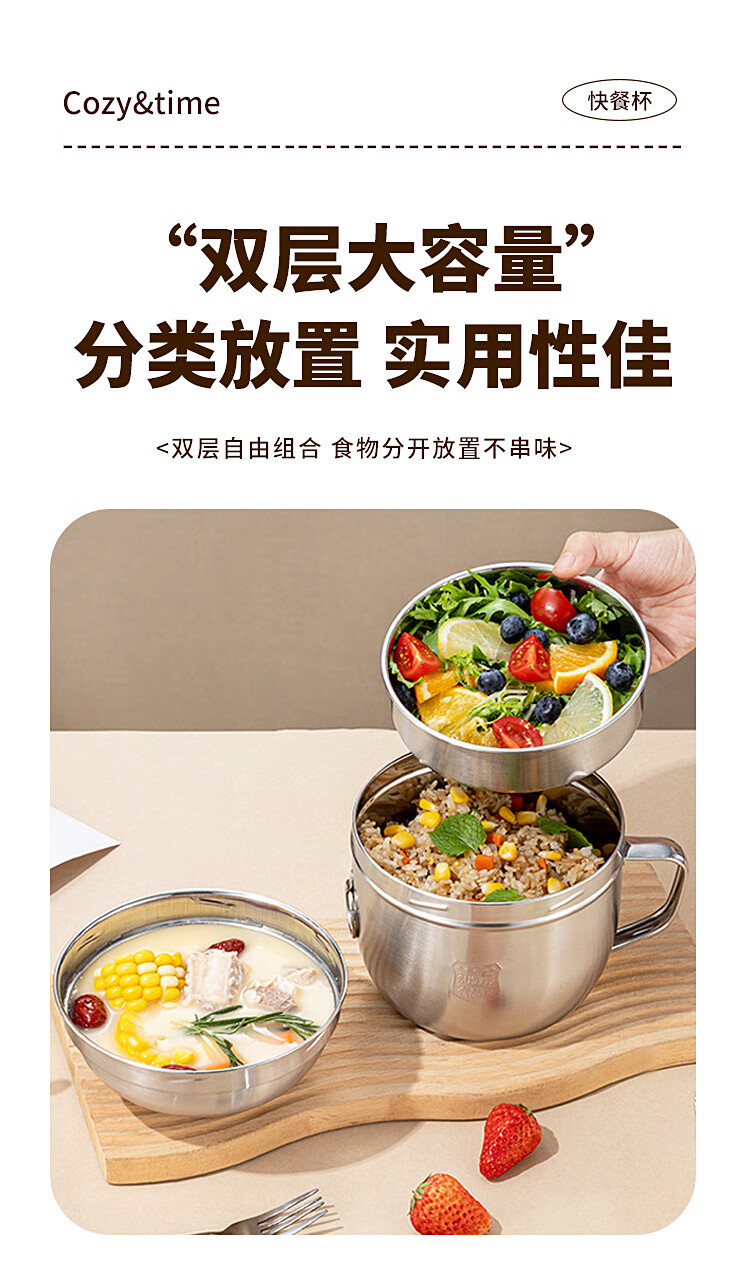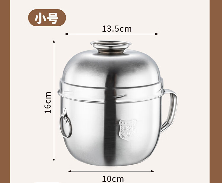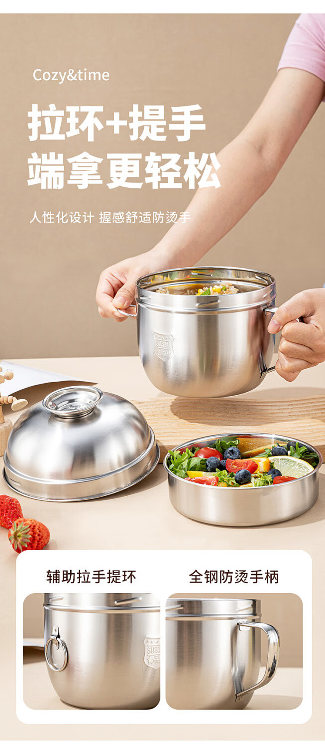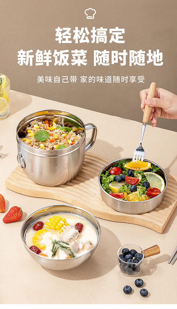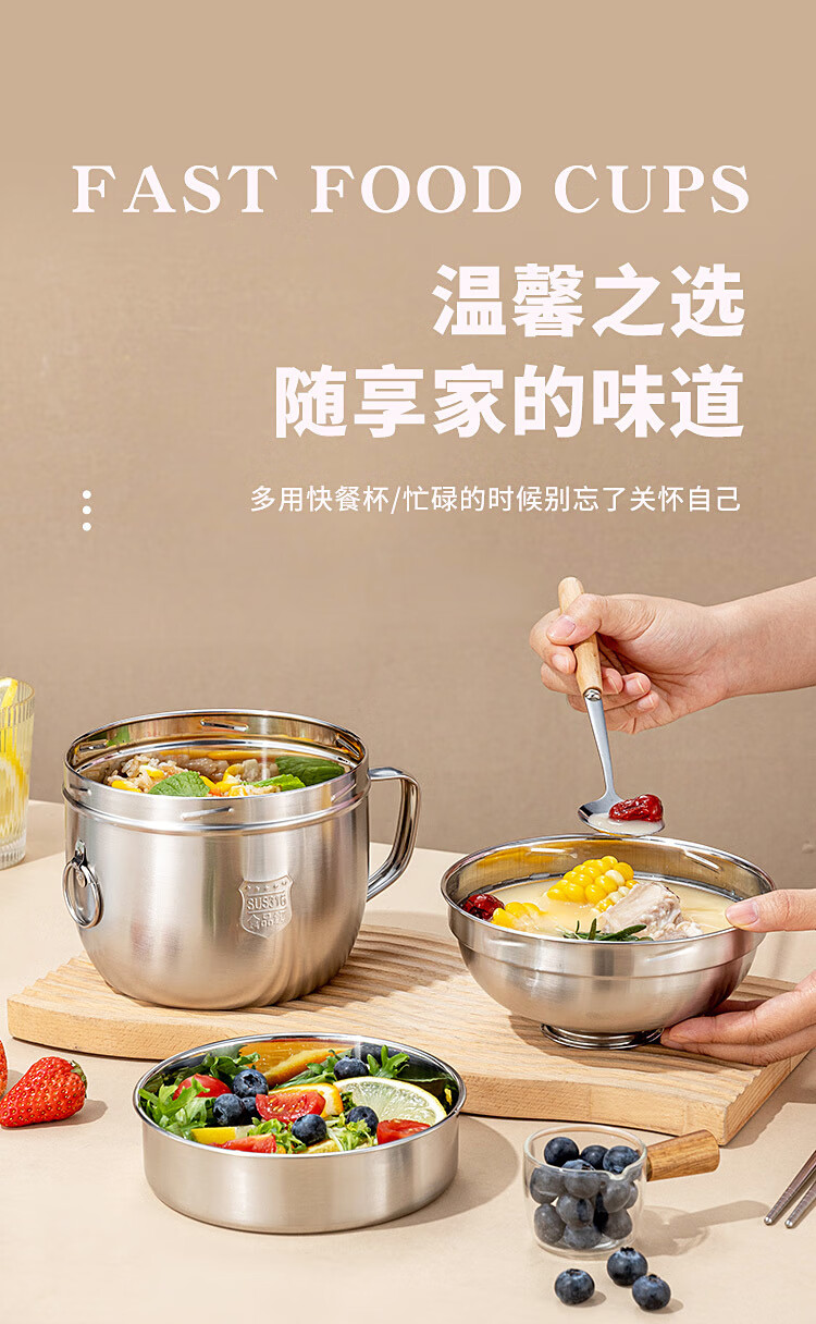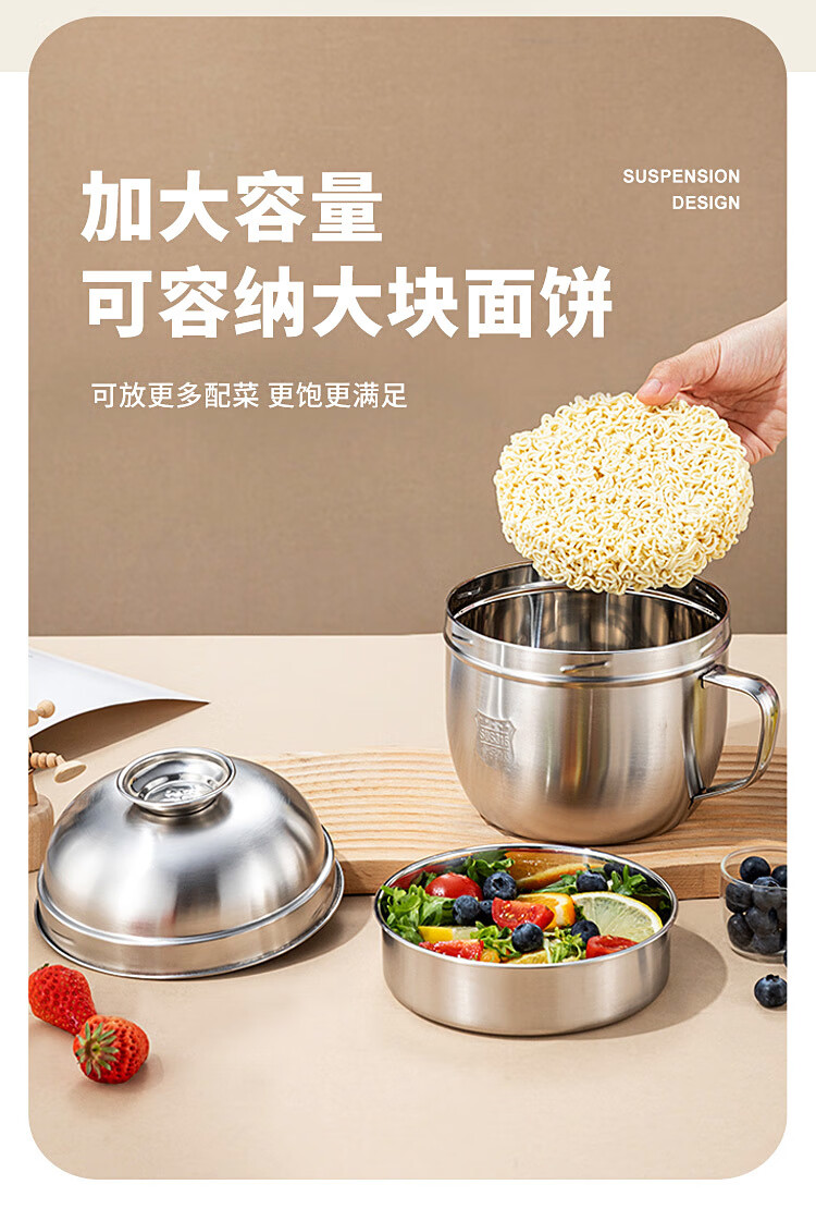 Meikejie 316 stainless steel thickened fast food cup 304 rice bowl office worker lunch box student canteen instant noodle bowl 316 steel rice bowl 14cm instant noodle cup