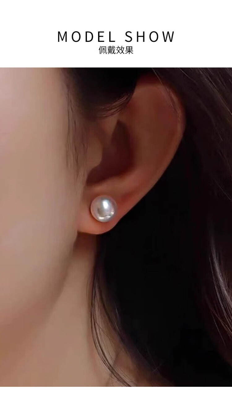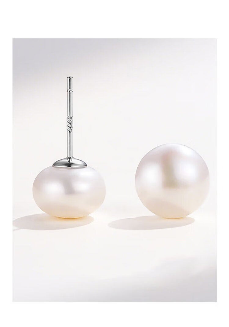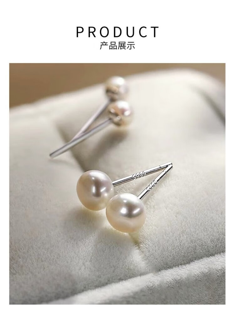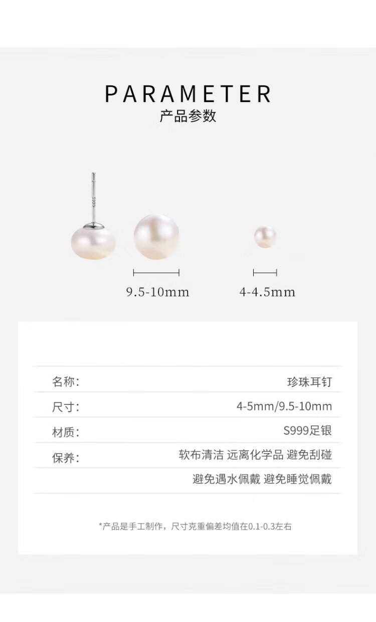 Yushangzhenpin S999 sterling silver freshwater pearl earrings for women, ear piercing earrings, light luxury, high-end, simple earrings gift, 9.5-10mm pearl earrings with silicone ear plugs