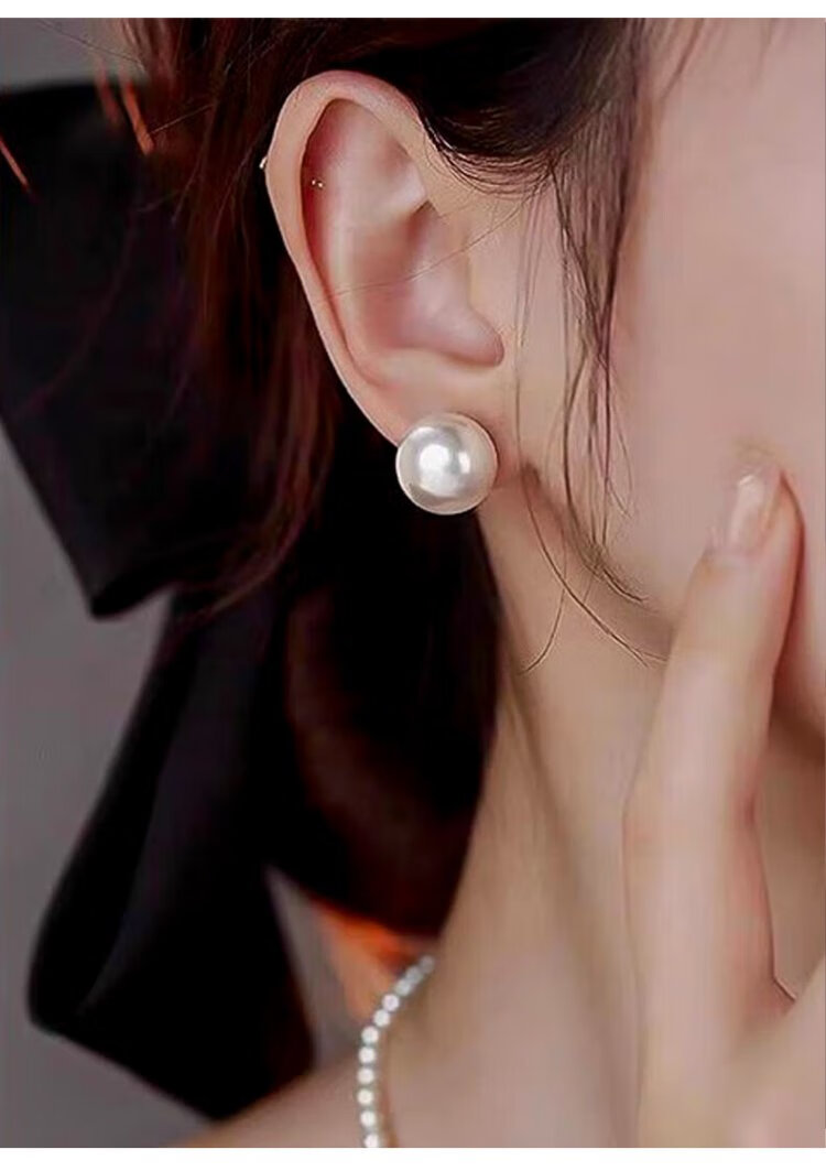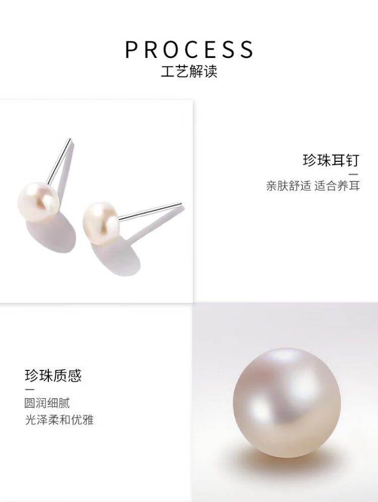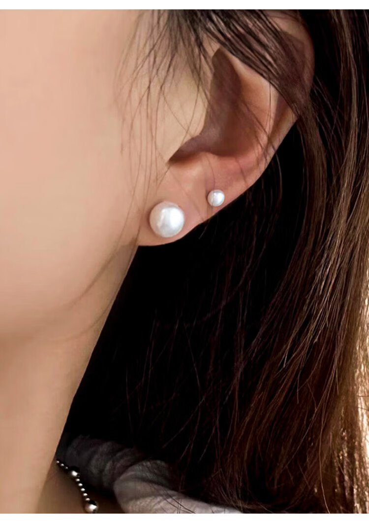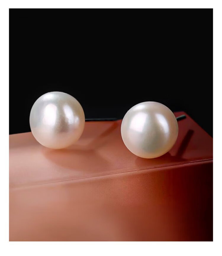 Yushangzhenpin S999 sterling silver freshwater pearl earrings for women, ear piercing earrings, light luxury, high-end, simple earrings gift, 9.5-10mm pearl earrings with silicone ear plugs