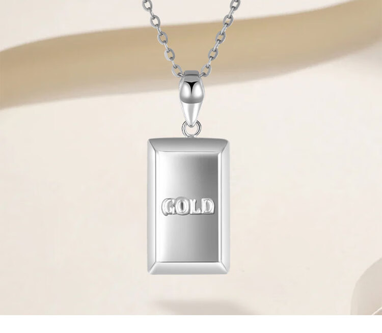 Yuanyang Jinlou PT950 fashionable small gold brick platinum pendant gold bar necklace holiday birthday gift for girlfriend and wife about 2.6g