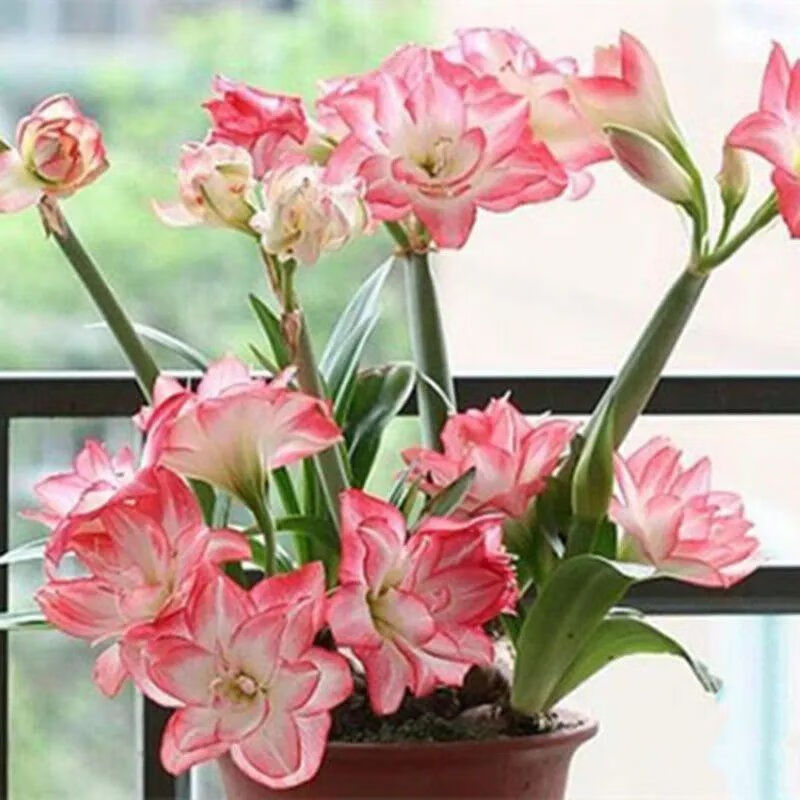 Imported amaryllis seed bulbs, large ball potted flower seedlings, double amaryllis seeds with buds for all seasons, green plants and flowers 23. Shuanglong seed bulb circumference 15-18cm