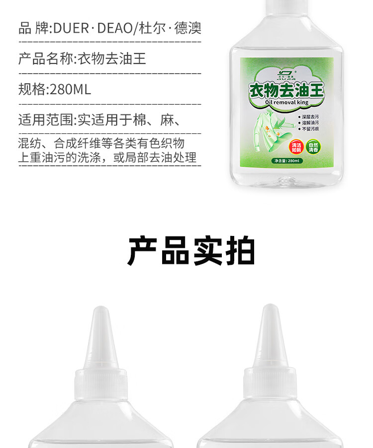 Dürr. De-Oil King Clothes Oil Remover, a powerful oil stain removal cleaner for stubborn oil stains and stains on clothes, 1 bottle of 280ml, early adopter pack, effective oil removal