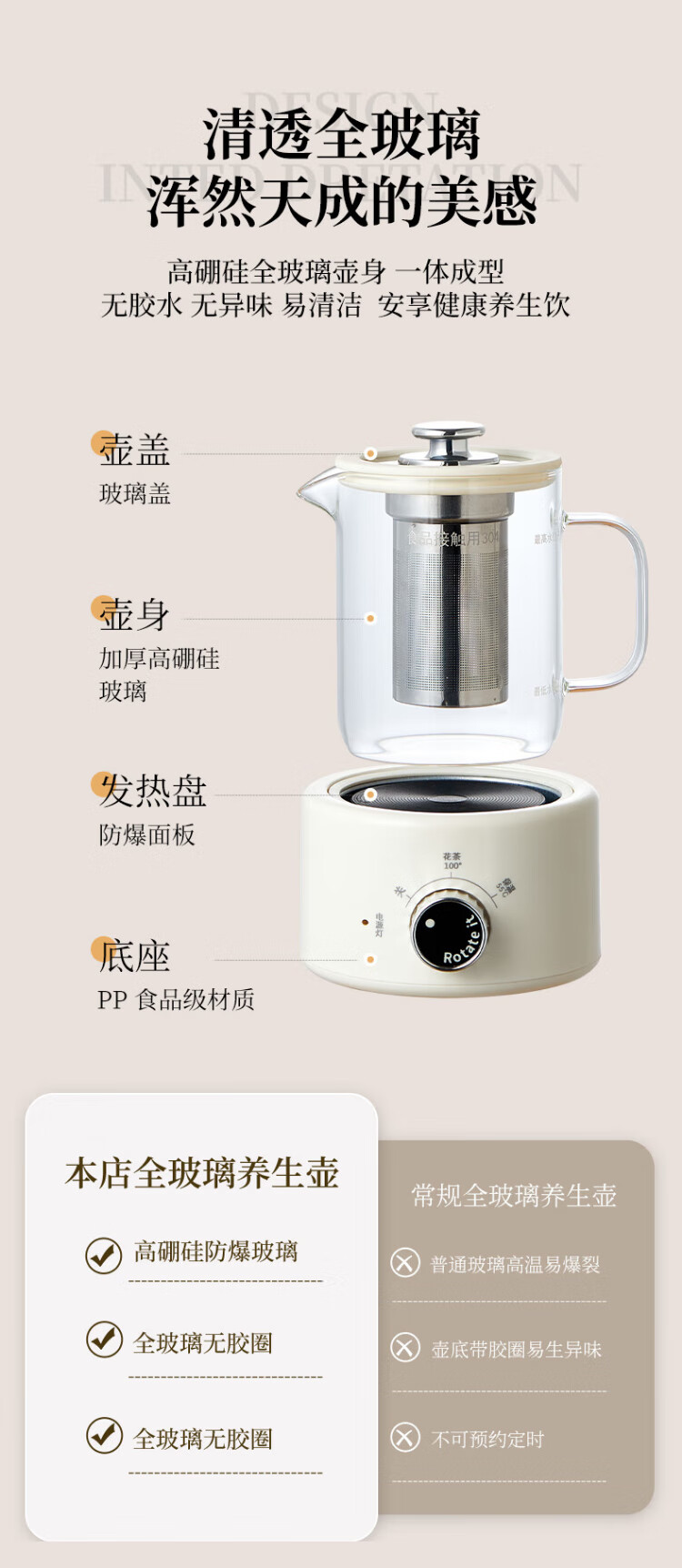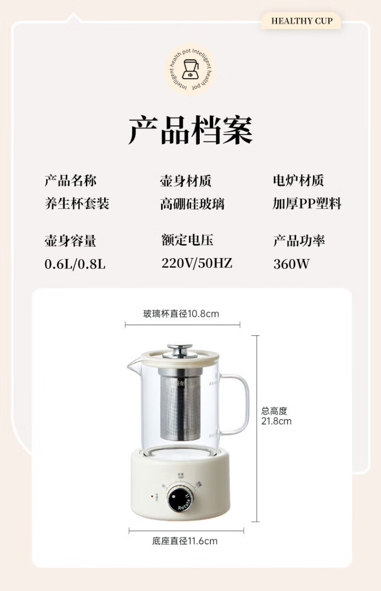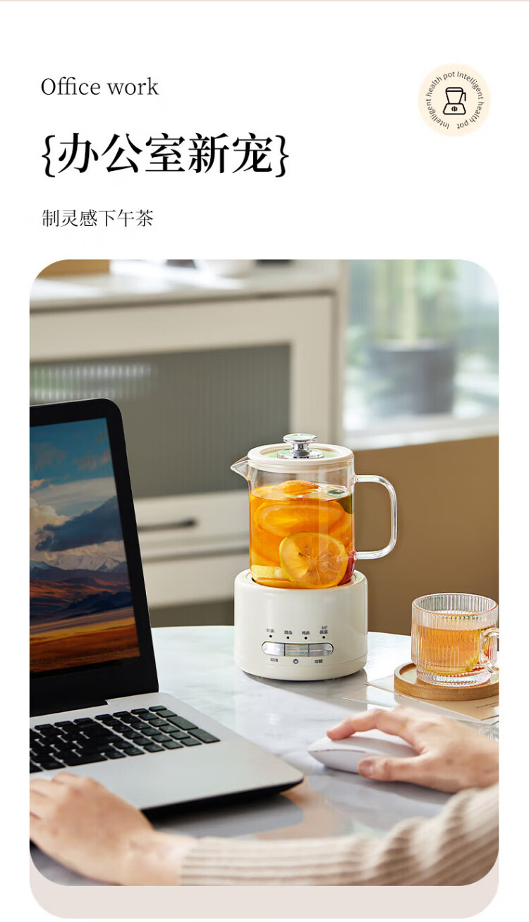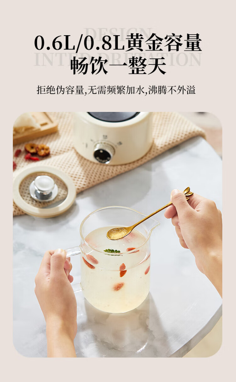 Le Stew mini health pot tea boiler stew all-in-one tea kettle kettle full glass office scented tea health pot small one-person health cup electric stew cup 0.6L mechanical model all glass