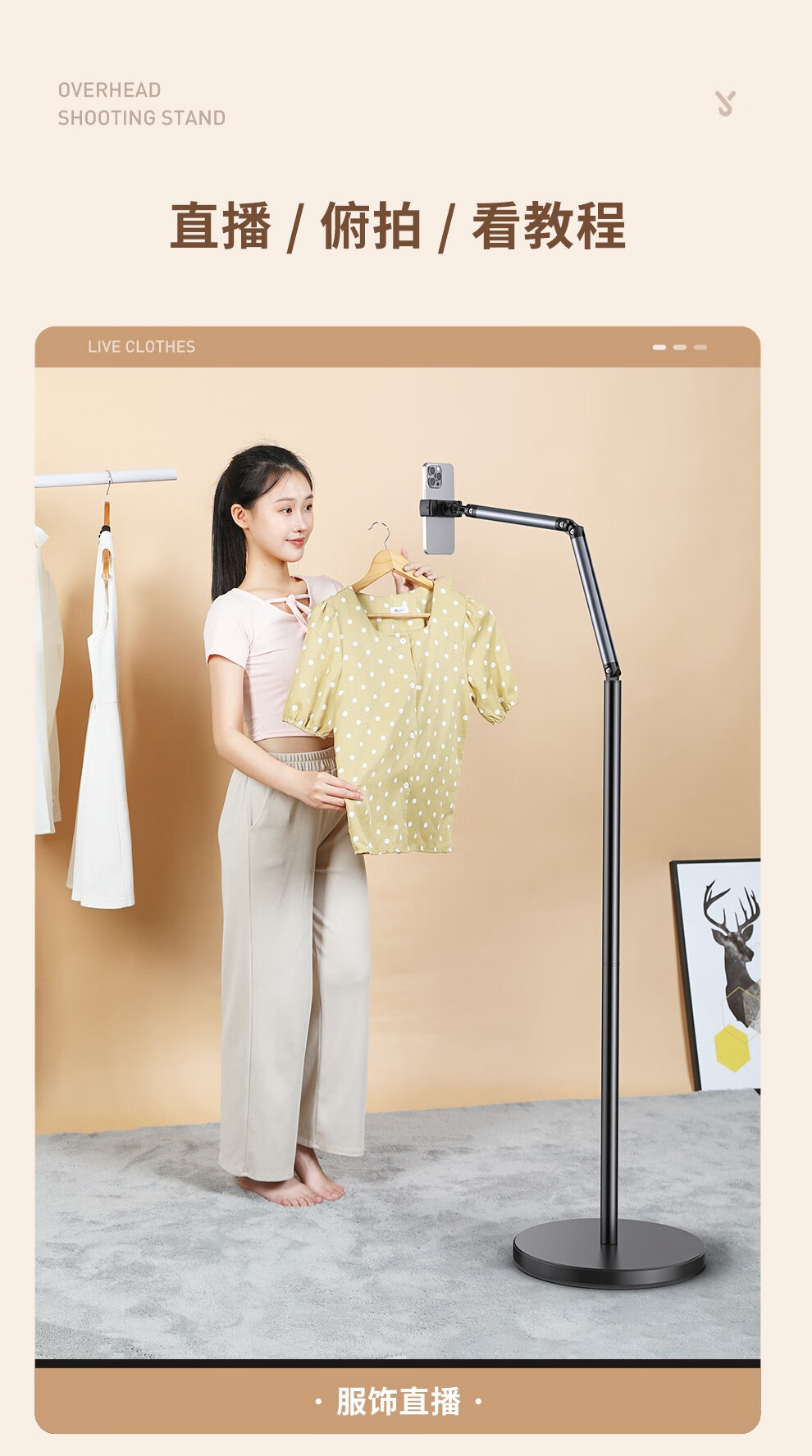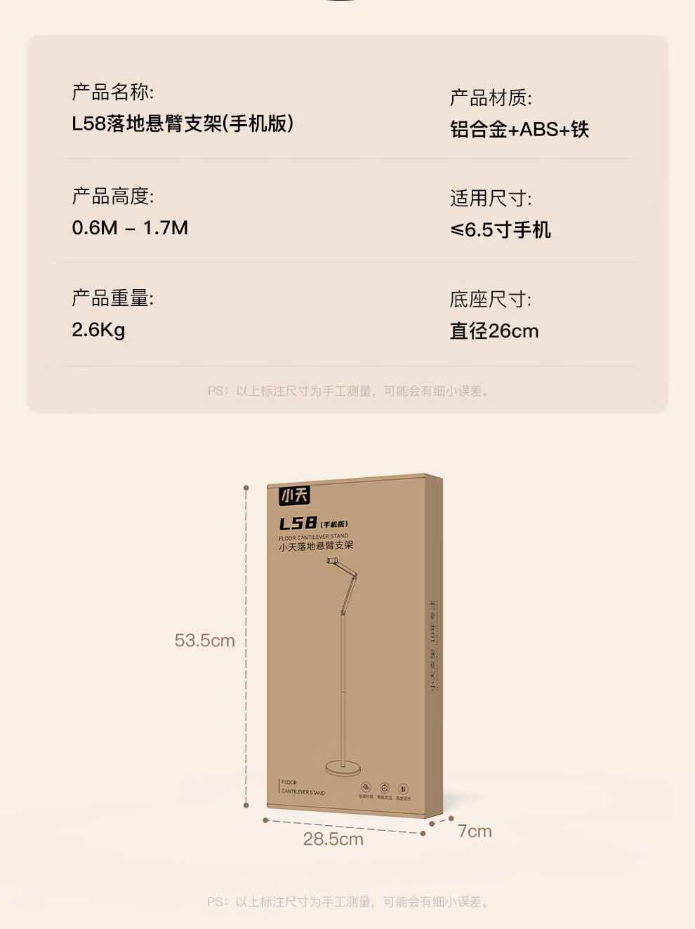 Xiaotian mobile phone holder with radiator, special cooling artifact for anchors, semiconductor refrigeration cooling back clip fan, ultra-quiet small desktop floor-standing liftable telescopic shelf support 1.5-meter single-arm mobile phone model
