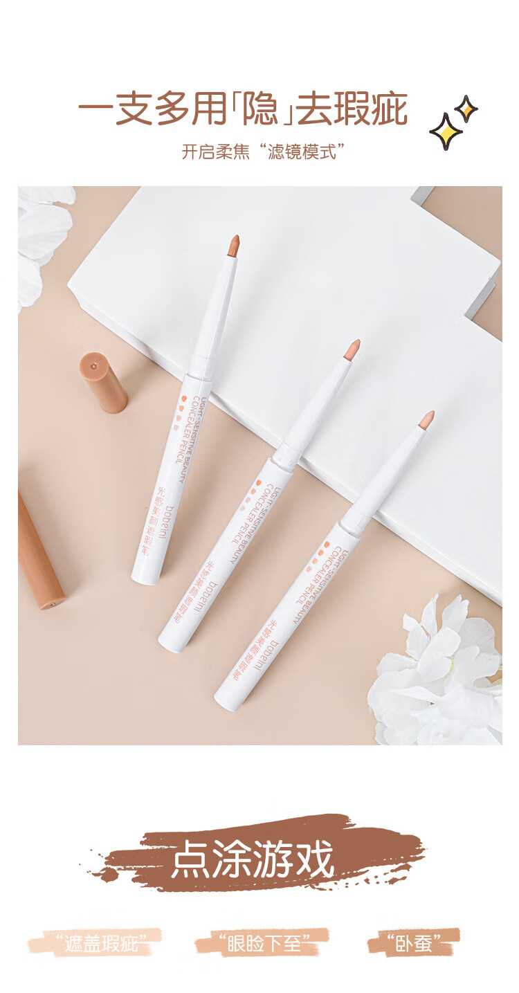 New beauty light concealer pen for eyelids and eyebrows, silkworm pen for tear trough, dark circles, acne marks, men and women skin color concealer stick 2# natural color