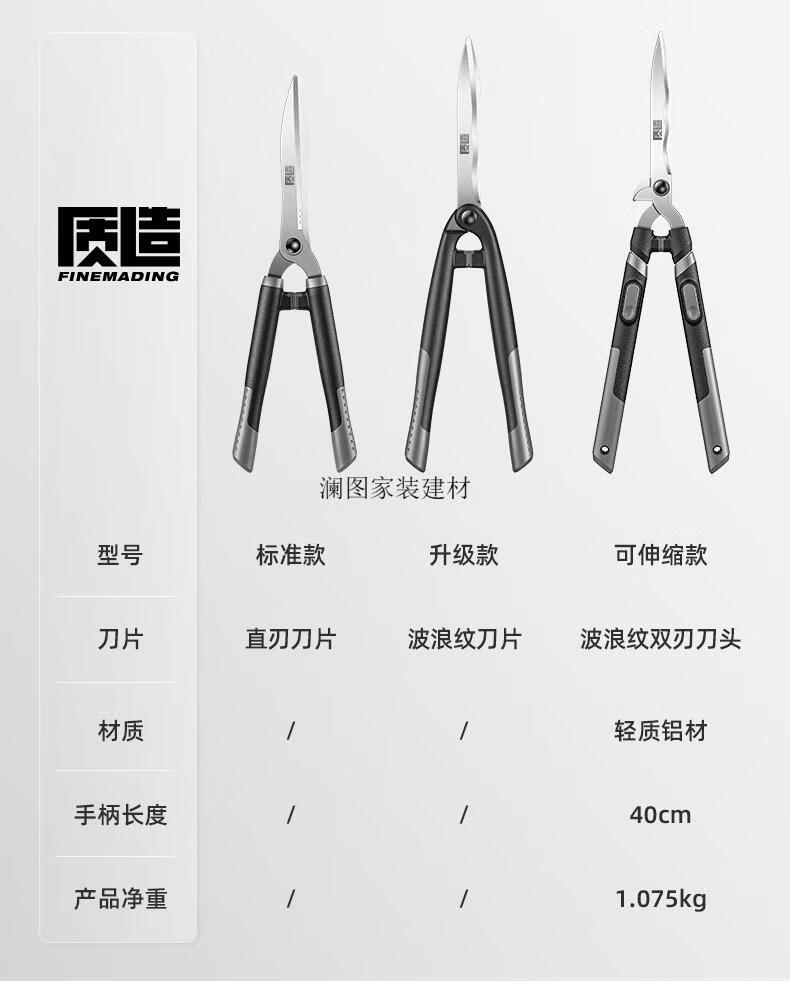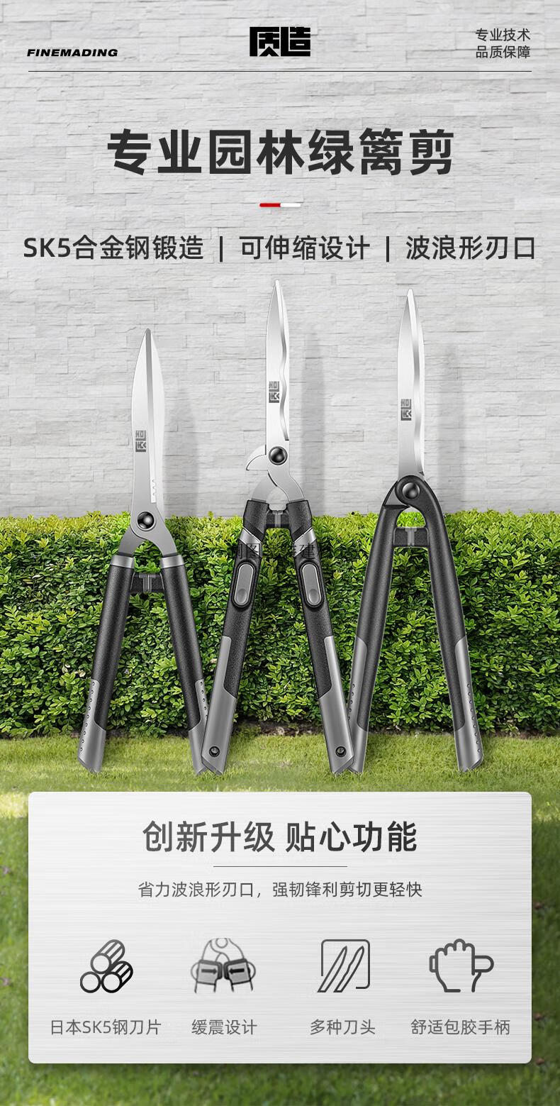 CLCEY gardening scissors, garden special tool for pruning thick branches, pruning flowers and greening tools, hedge shears, large scissors, extreme series - large blade straight blade hedge shears (rust-proof)