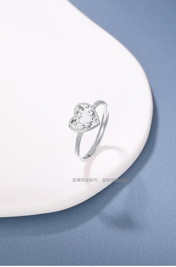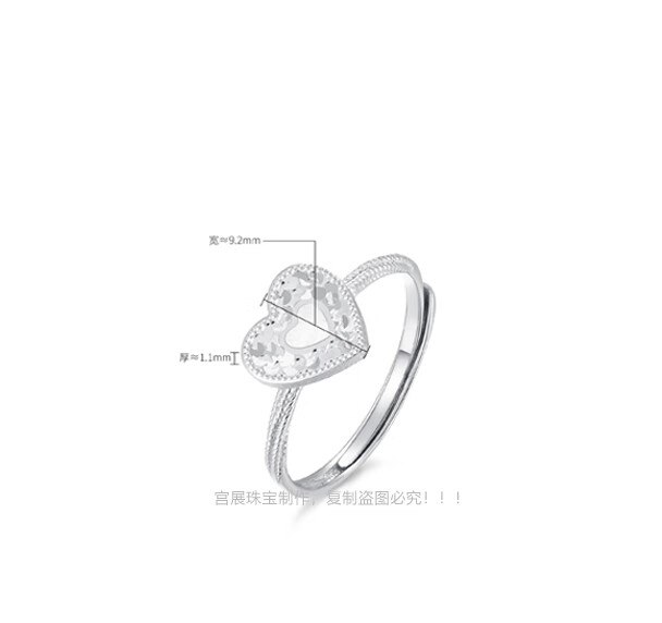 Gongzhan bursting love heart broken ice platinum ring women's counter genuine pt950 platinum heart-shaped ring as a gift for girlfriend broken ice platinum love ring about 3.2-3.4 grams