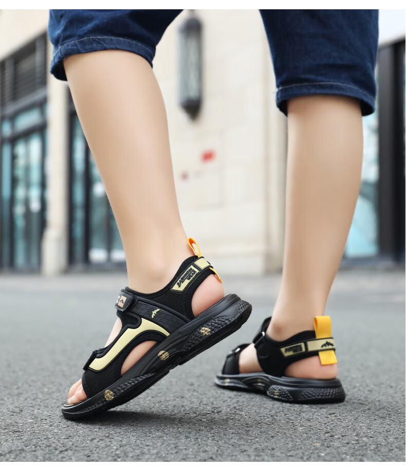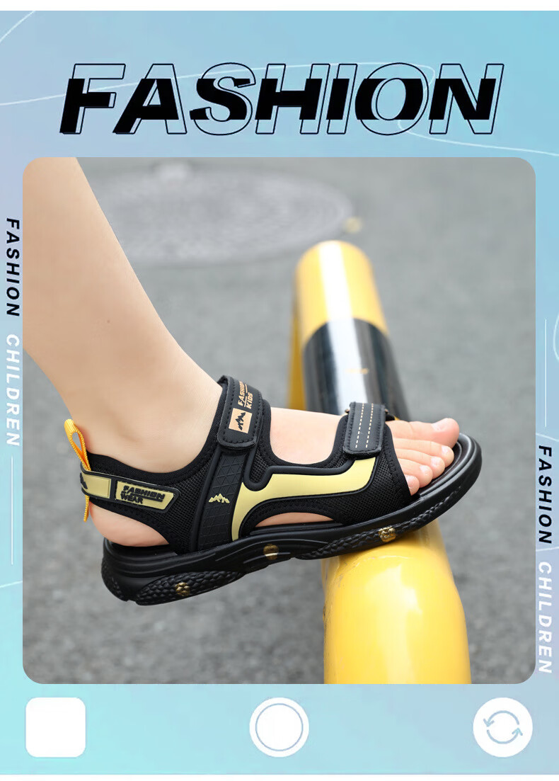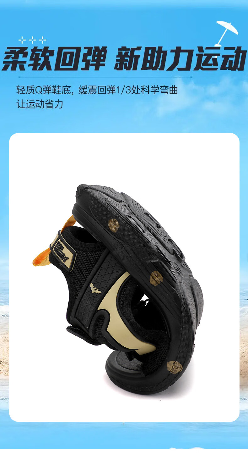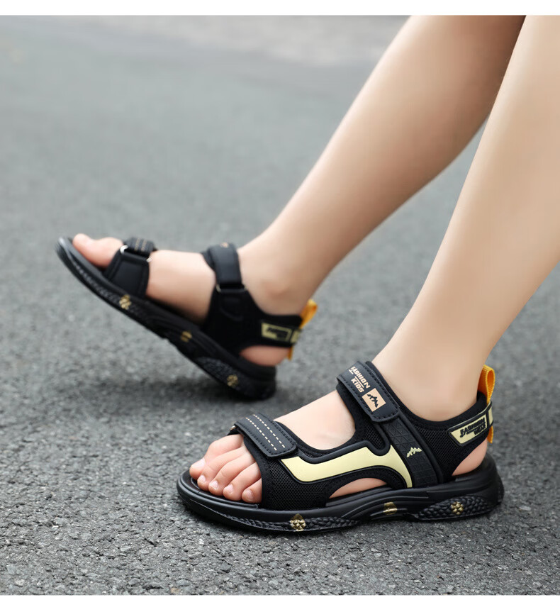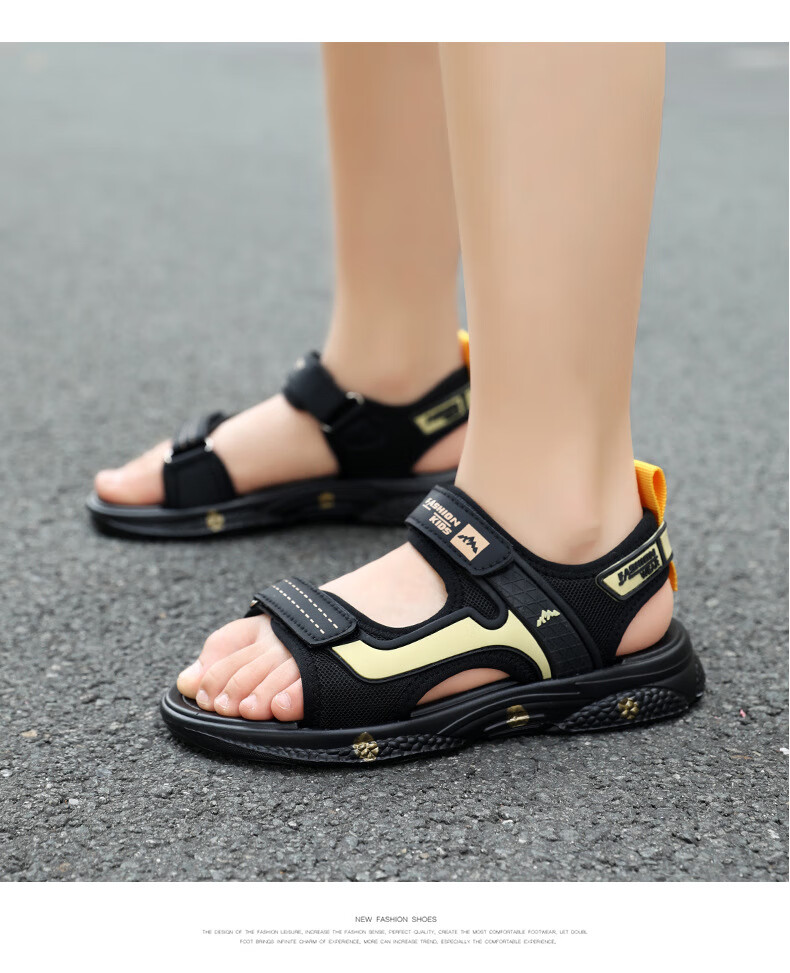 G.duck little yellow duck boys' sandals 2025 summer new children's beach shoes soft sole non-slip medium and large children's light casual shoes black gold-open toe 39 inner length 23.5cm