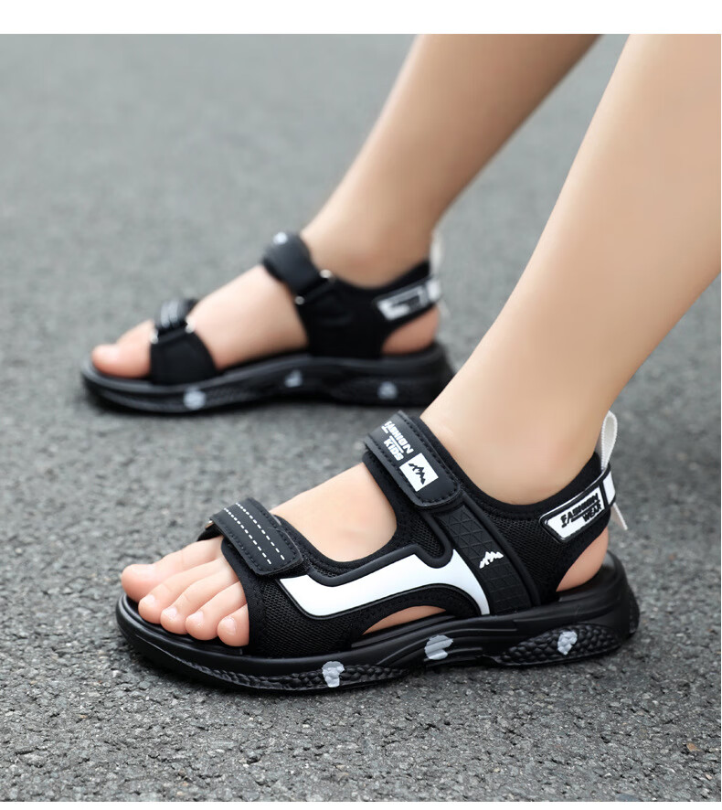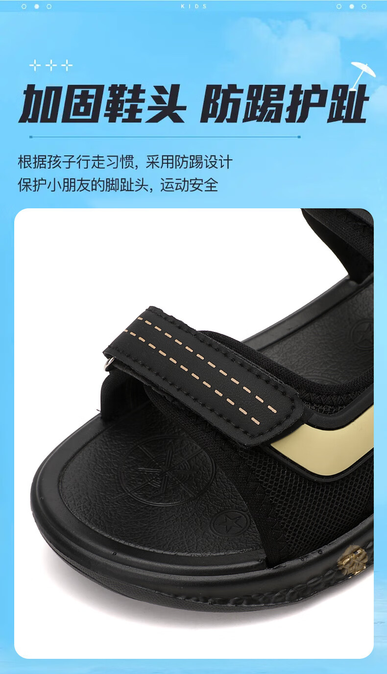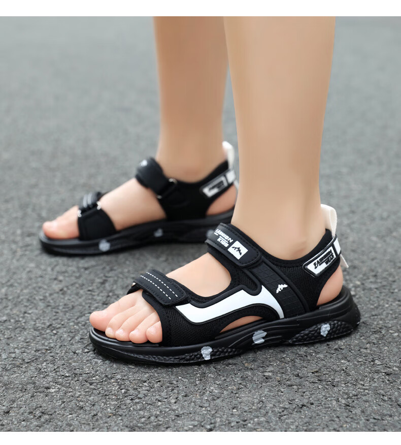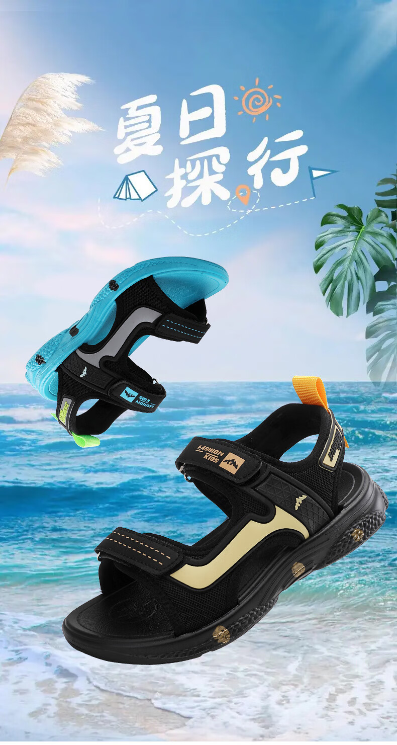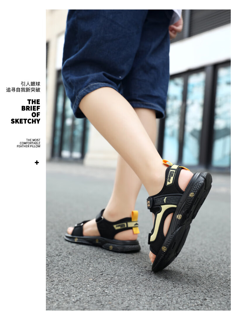 G.duck little yellow duck boys' sandals 2025 summer new children's beach shoes soft sole non-slip medium and large children's light casual shoes black gold-open toe 39 inner length 23.5cm