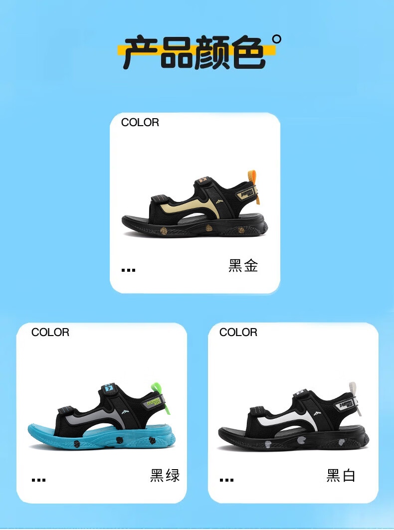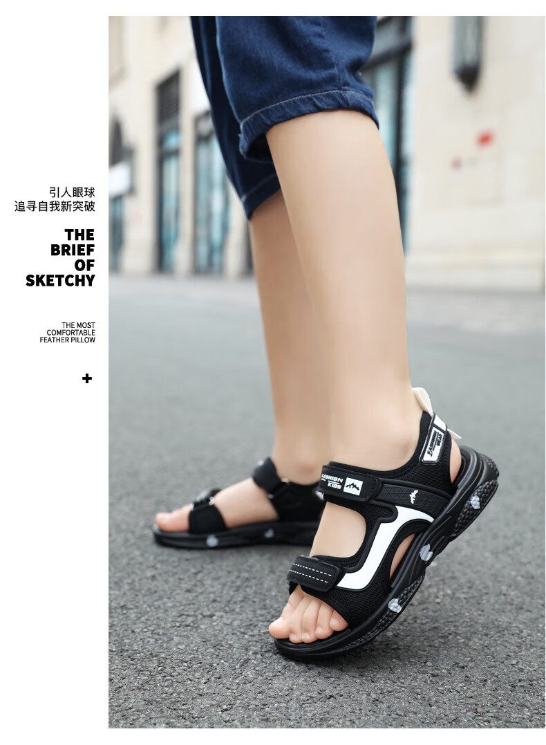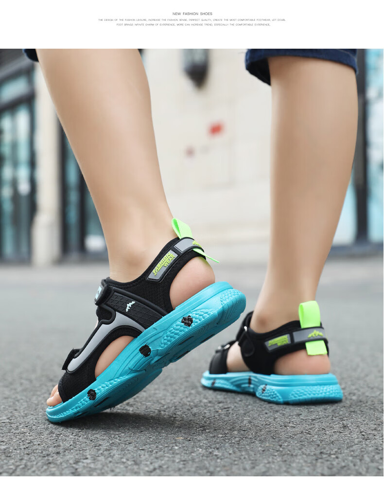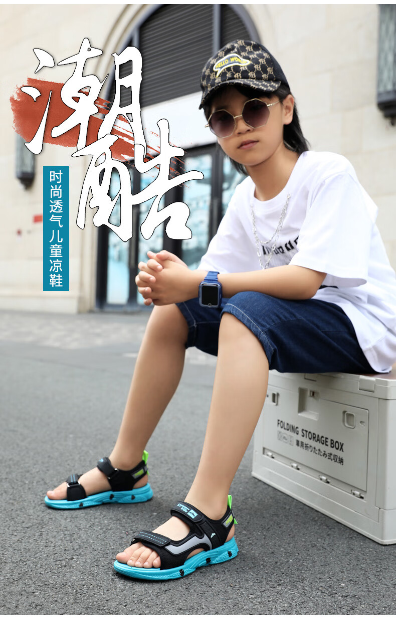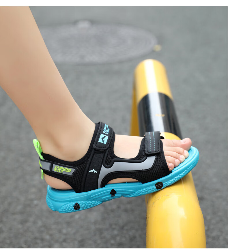 G.duck little yellow duck boys' sandals 2025 summer new children's beach shoes soft sole non-slip medium and large children's light casual shoes black gold-open toe 39 inner length 23.5cm