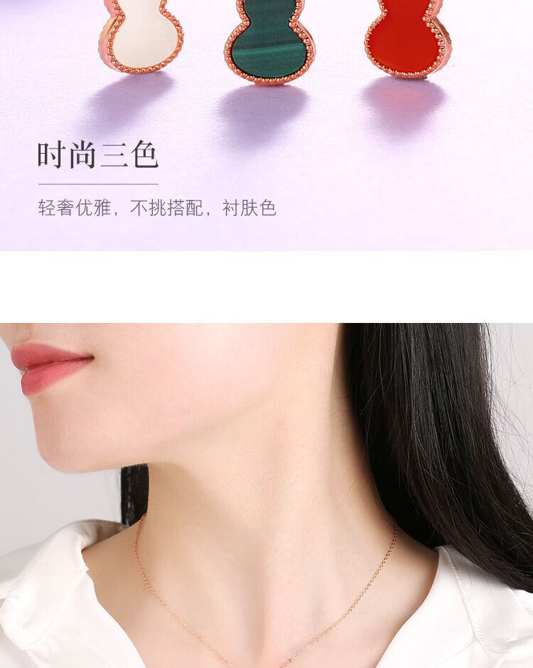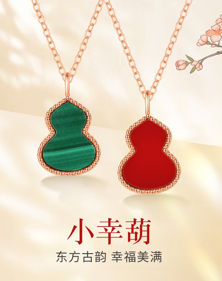 Man Fuxiang 18K gold gourd pendant au750 rose gold gold necklace red agate clavicle chain set chain birthday gift for girl 18K gold gold color (single pendant) malachite green